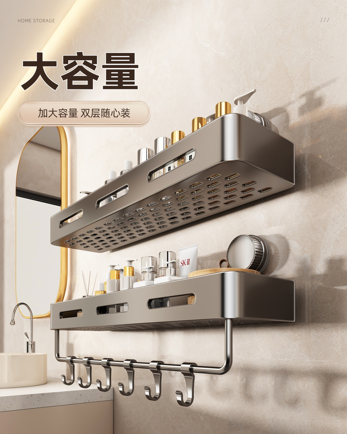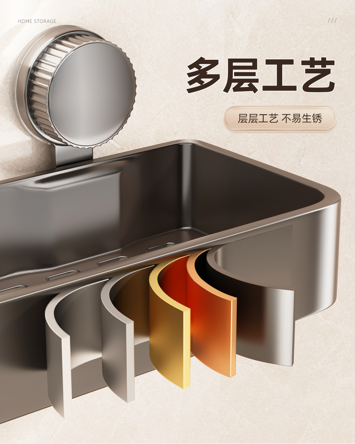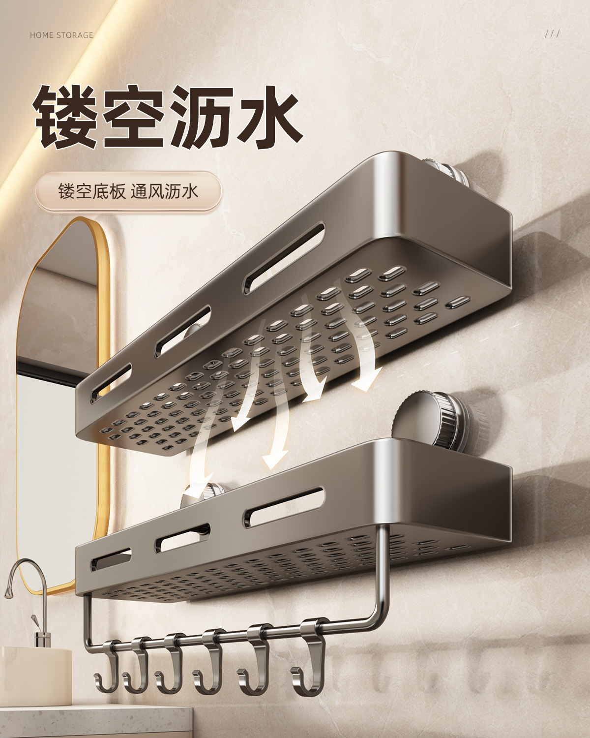 • 막대가 있는 흡입 컵 직사각형 바구니 40CM-건 그레이
