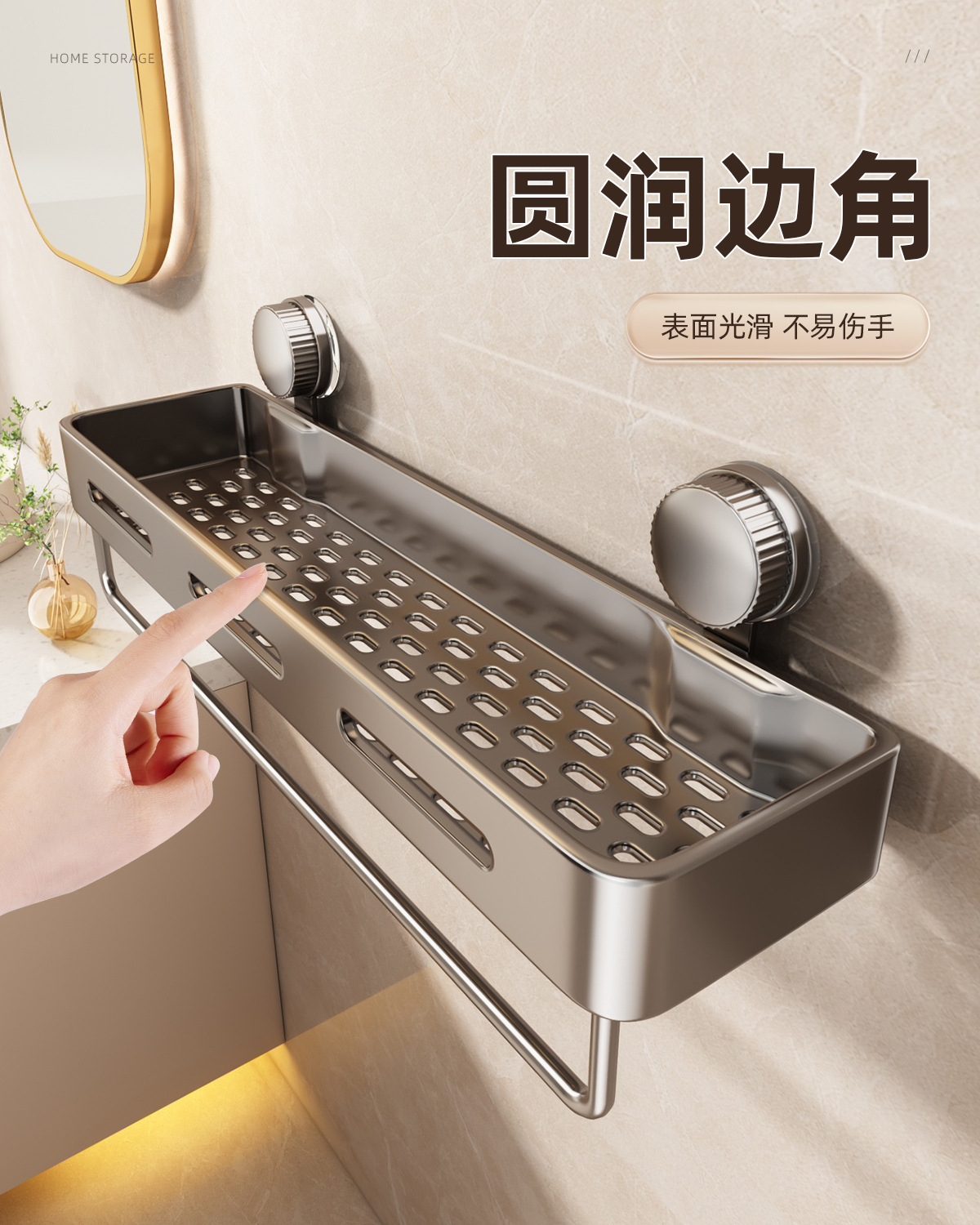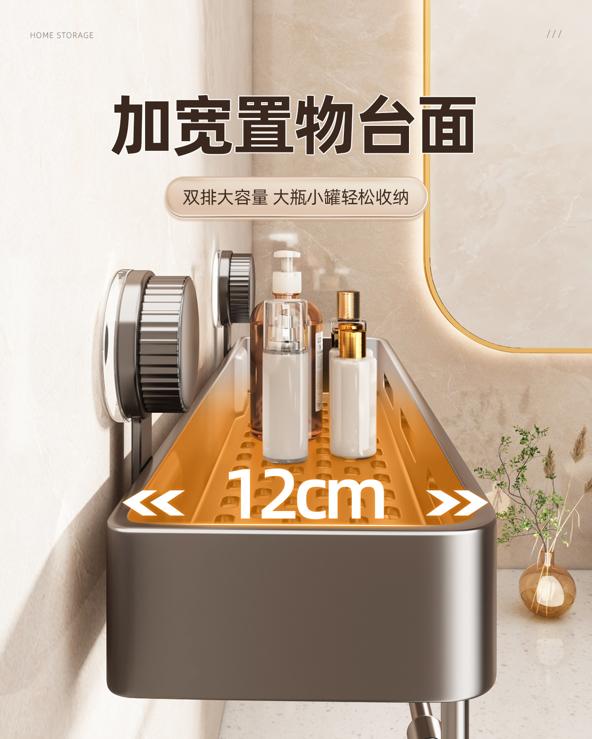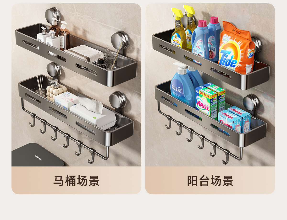 욕실 변기용 흡입 컵 선반, 구멍이 없는 벽걸이형 변기 세면대 벽면 이동식 수납 선반