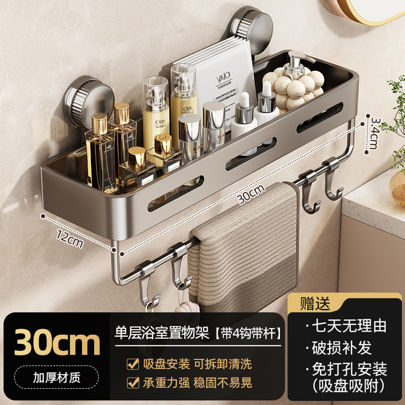 • 막대가 있는 흡입 컵 직사각형 바구니 30cm-건 그레이