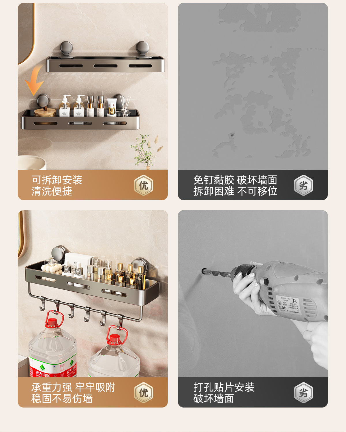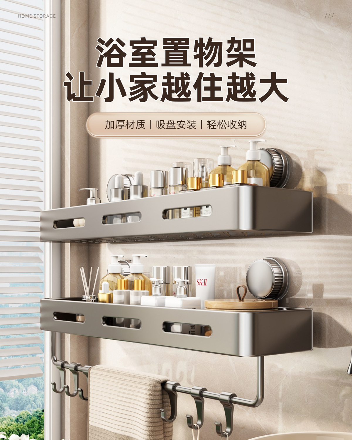 • 흡착컵 직사각형 바구니 + 막대가 있는 직사각형 바구니 [30cm]