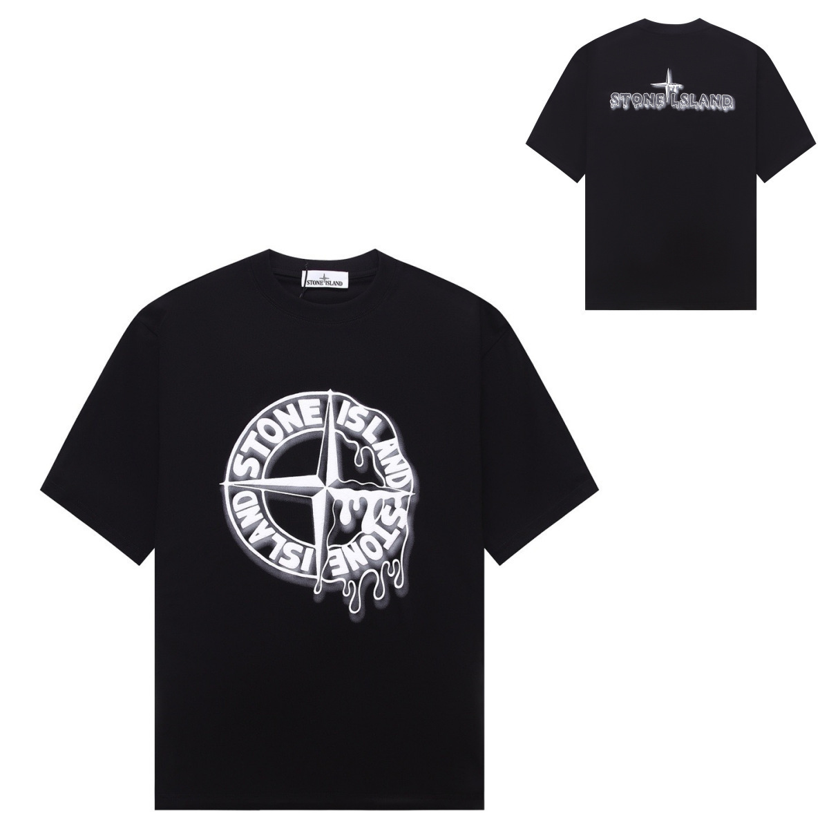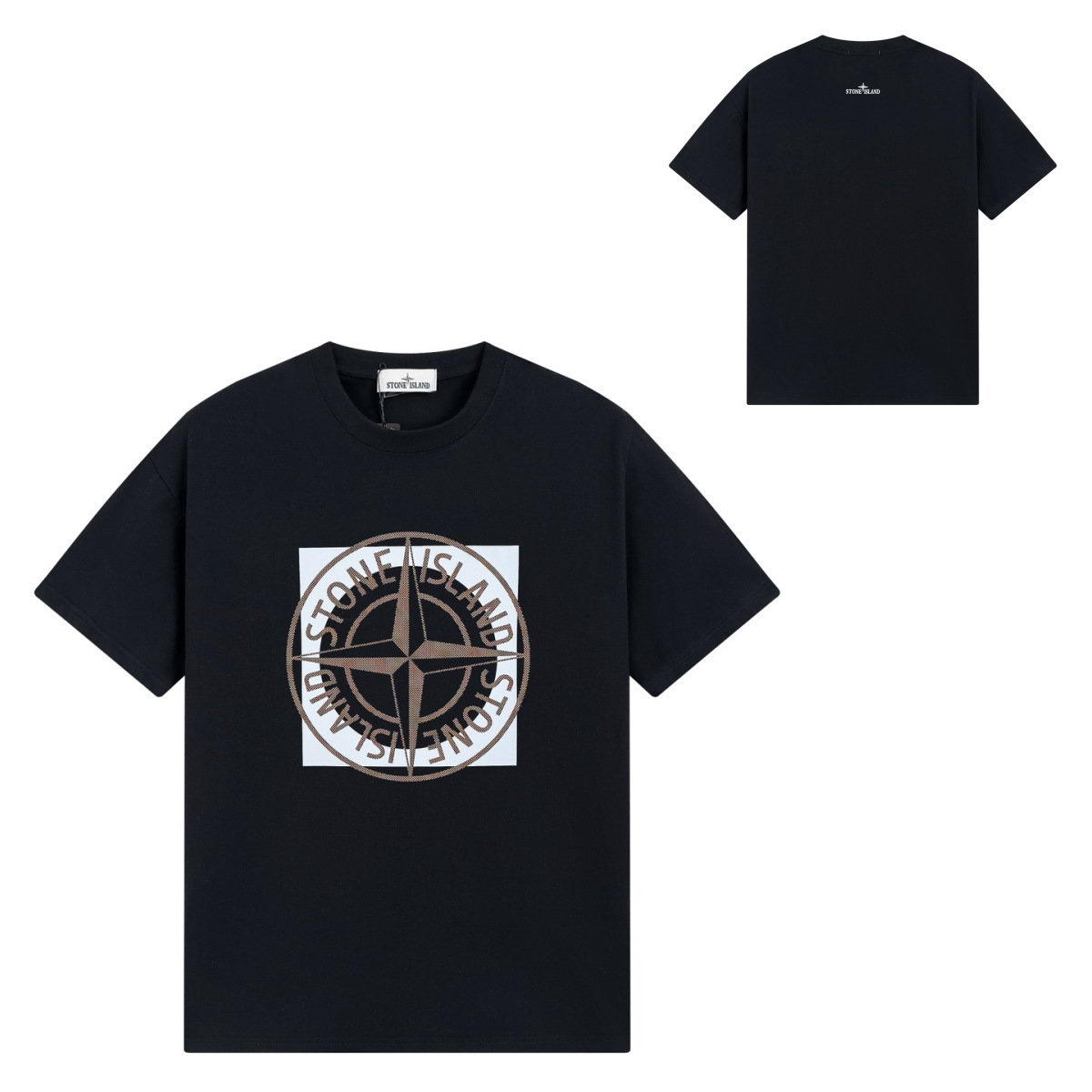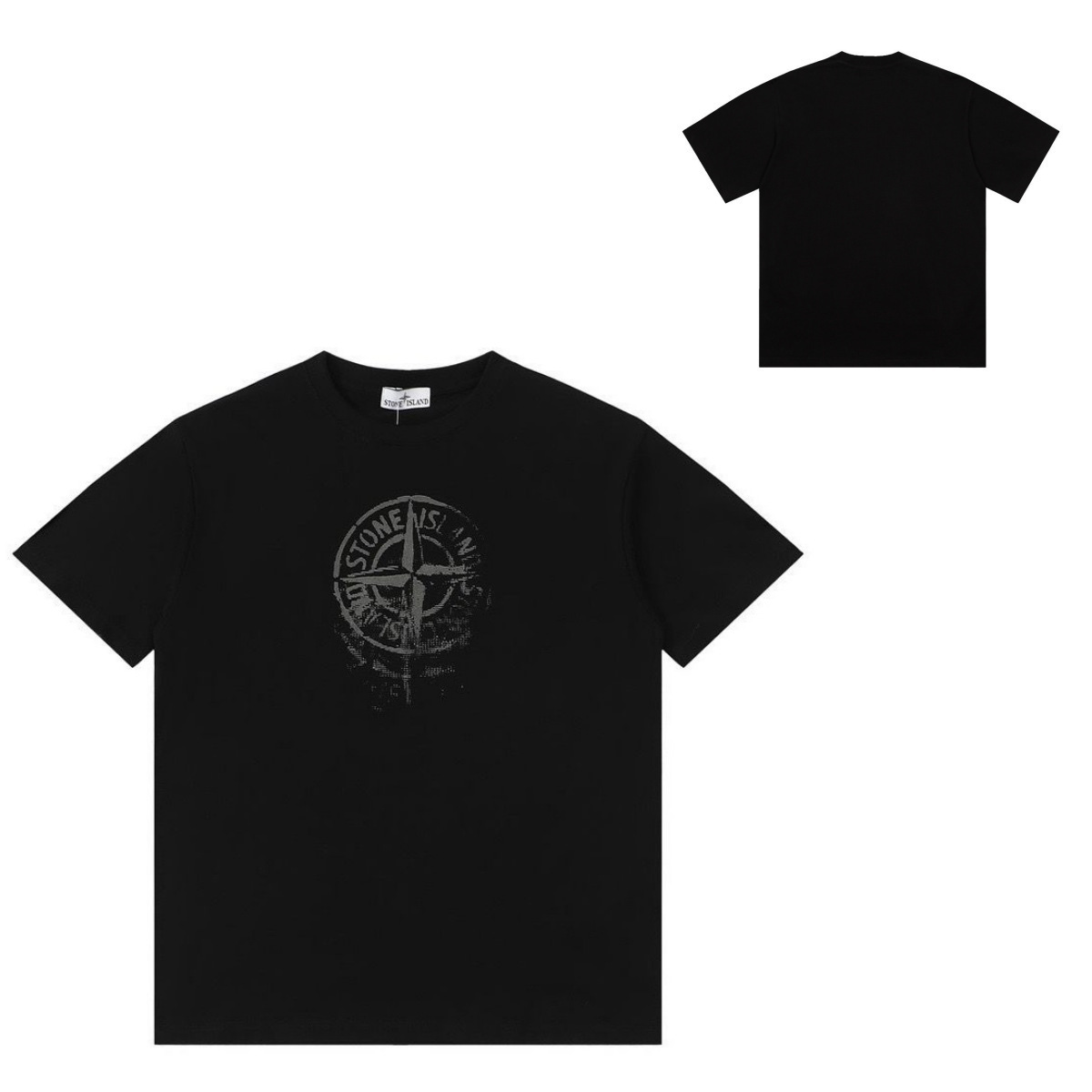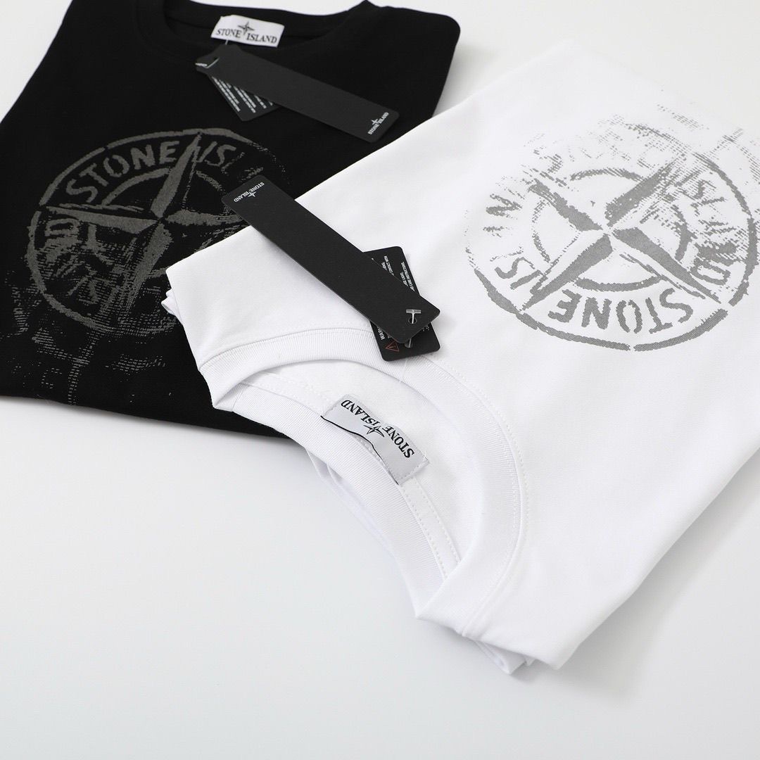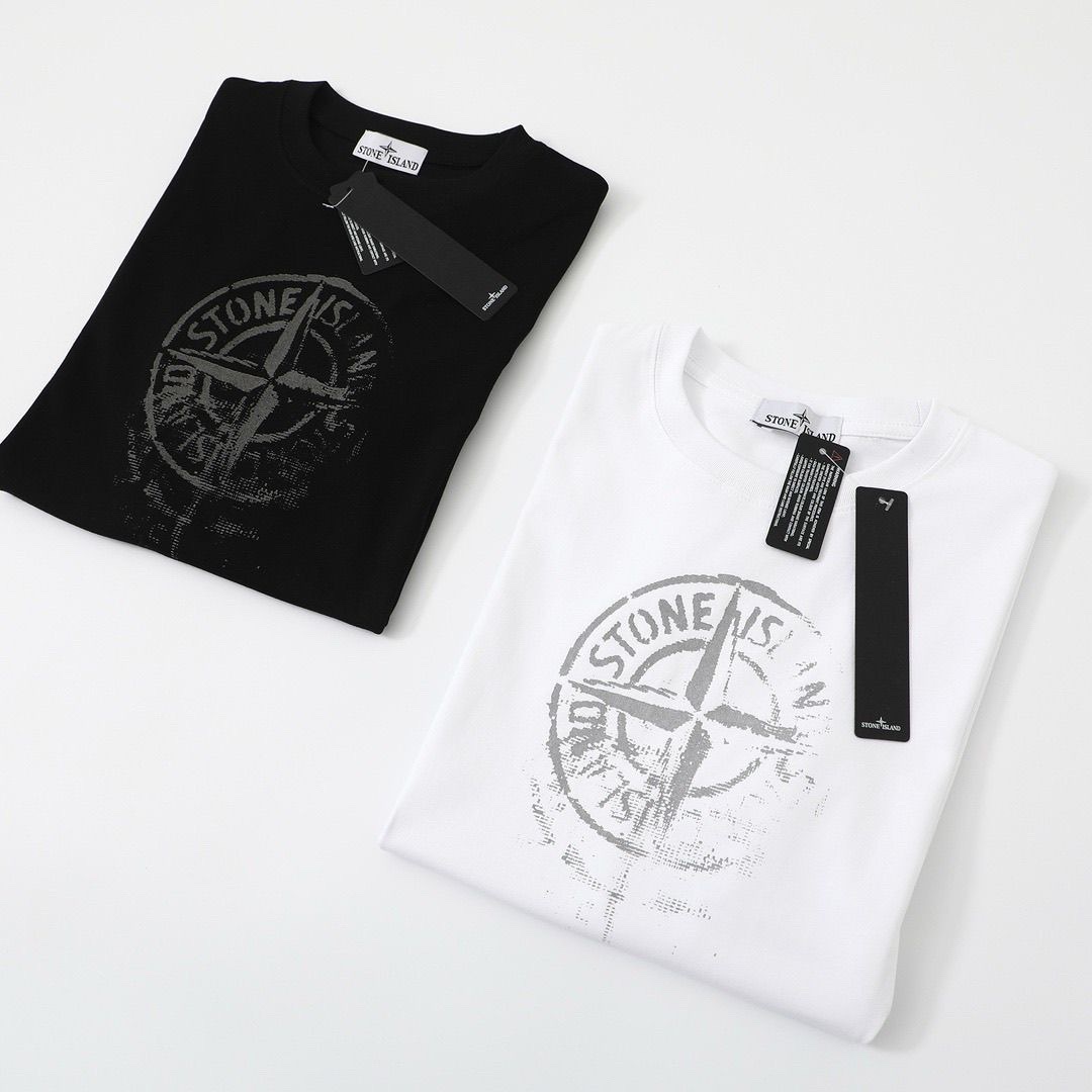 여름 스톤 퓨어 코튼 반팔 티셔츠 콜라보 로고 프린트 캐주얼 루즈 커플 남성과 여성의 크로스보더 올바른 버전스토어 가기