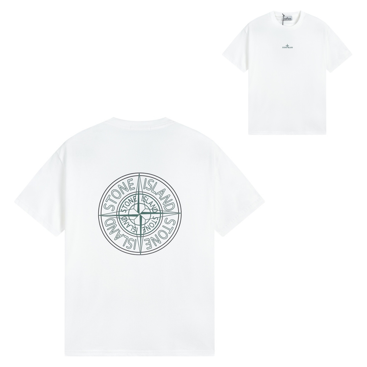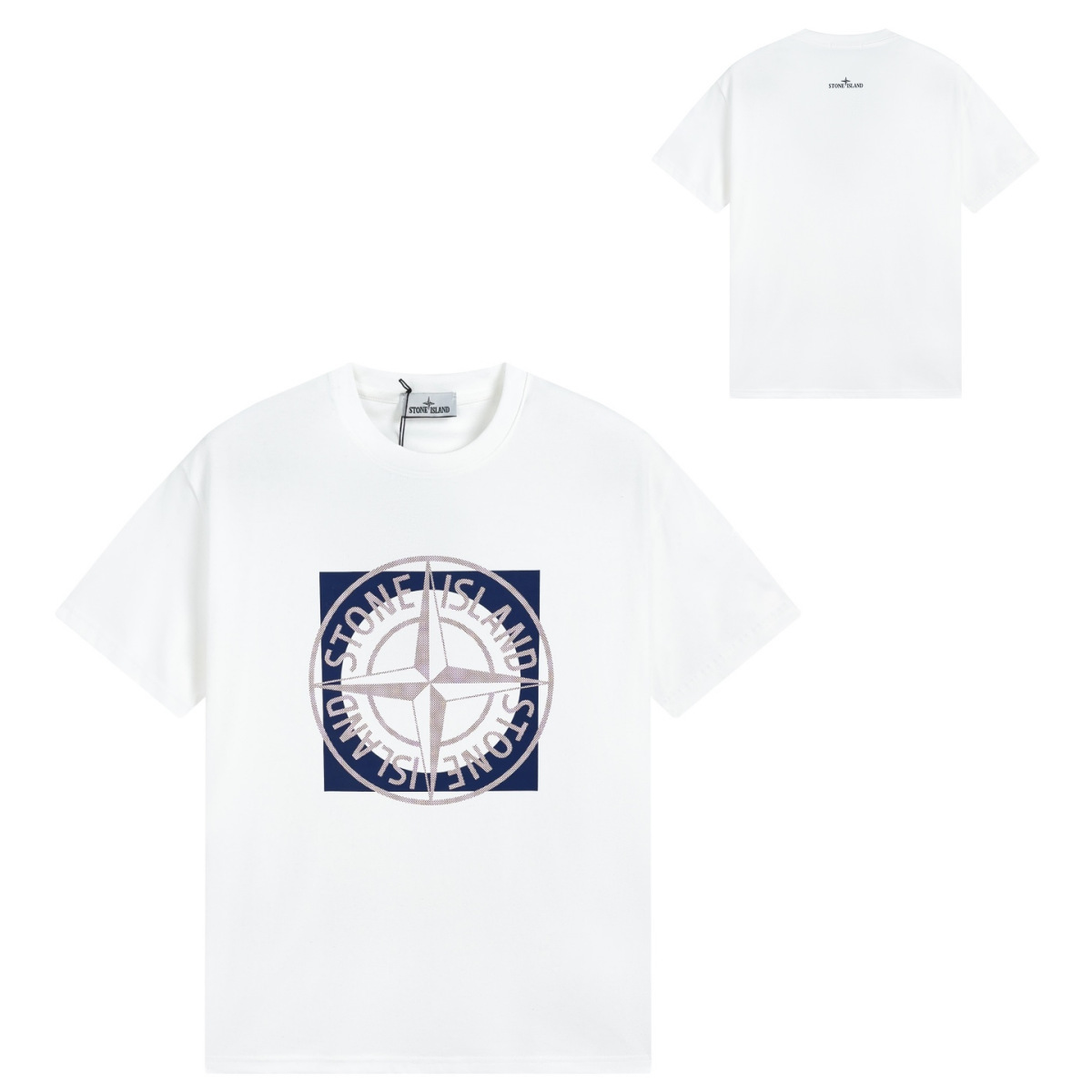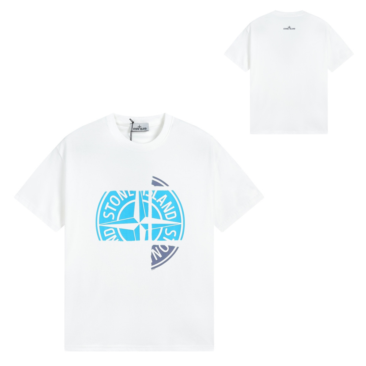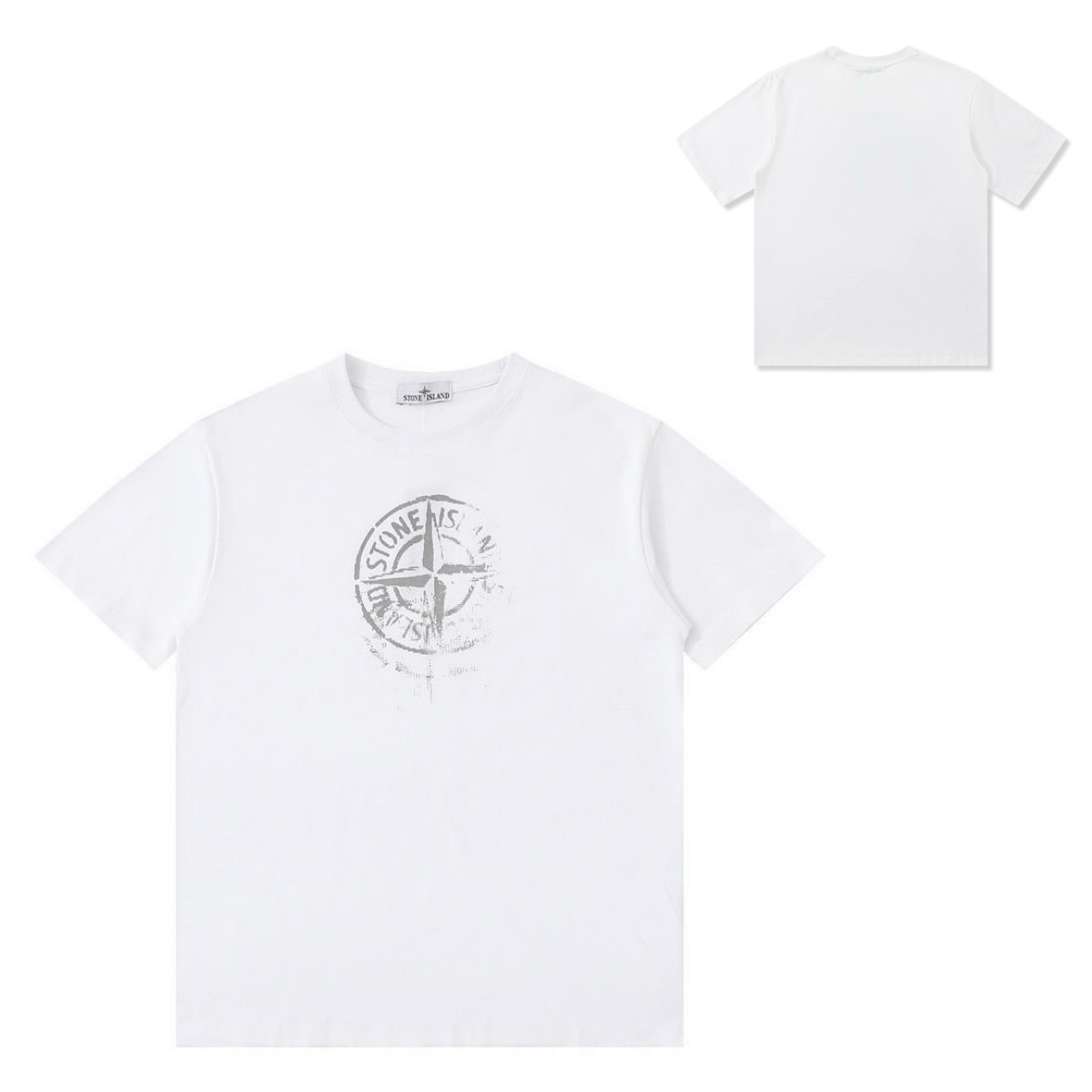 여름 스톤 퓨어 코튼 반팔 티셔츠 콜라보 로고 프린트 캐주얼 루즈 커플 남성과 여성의 크로스보더 올바른 버전스토어 가기