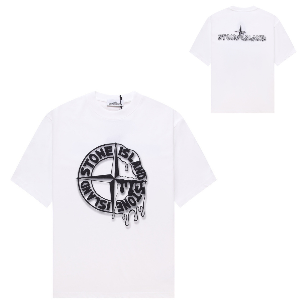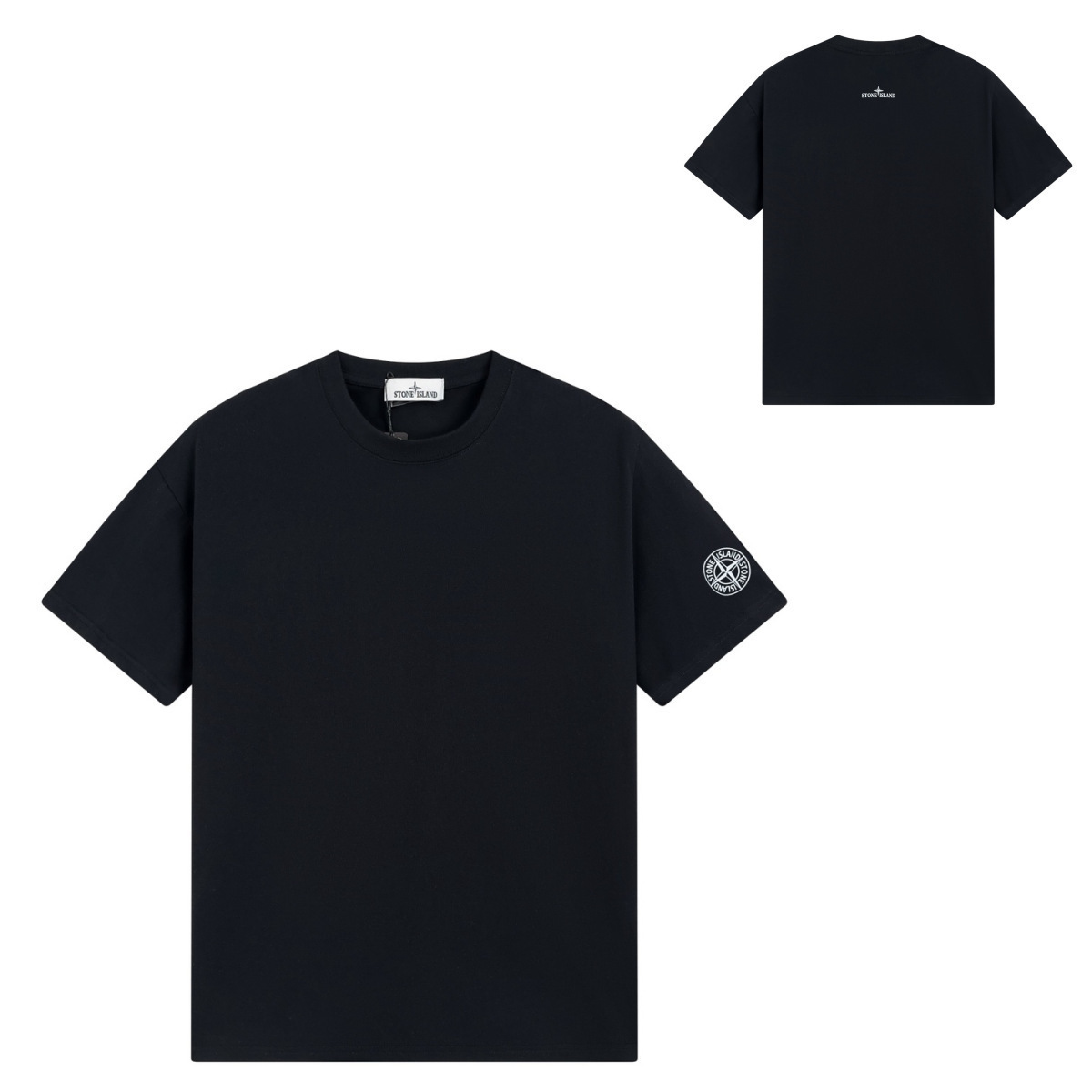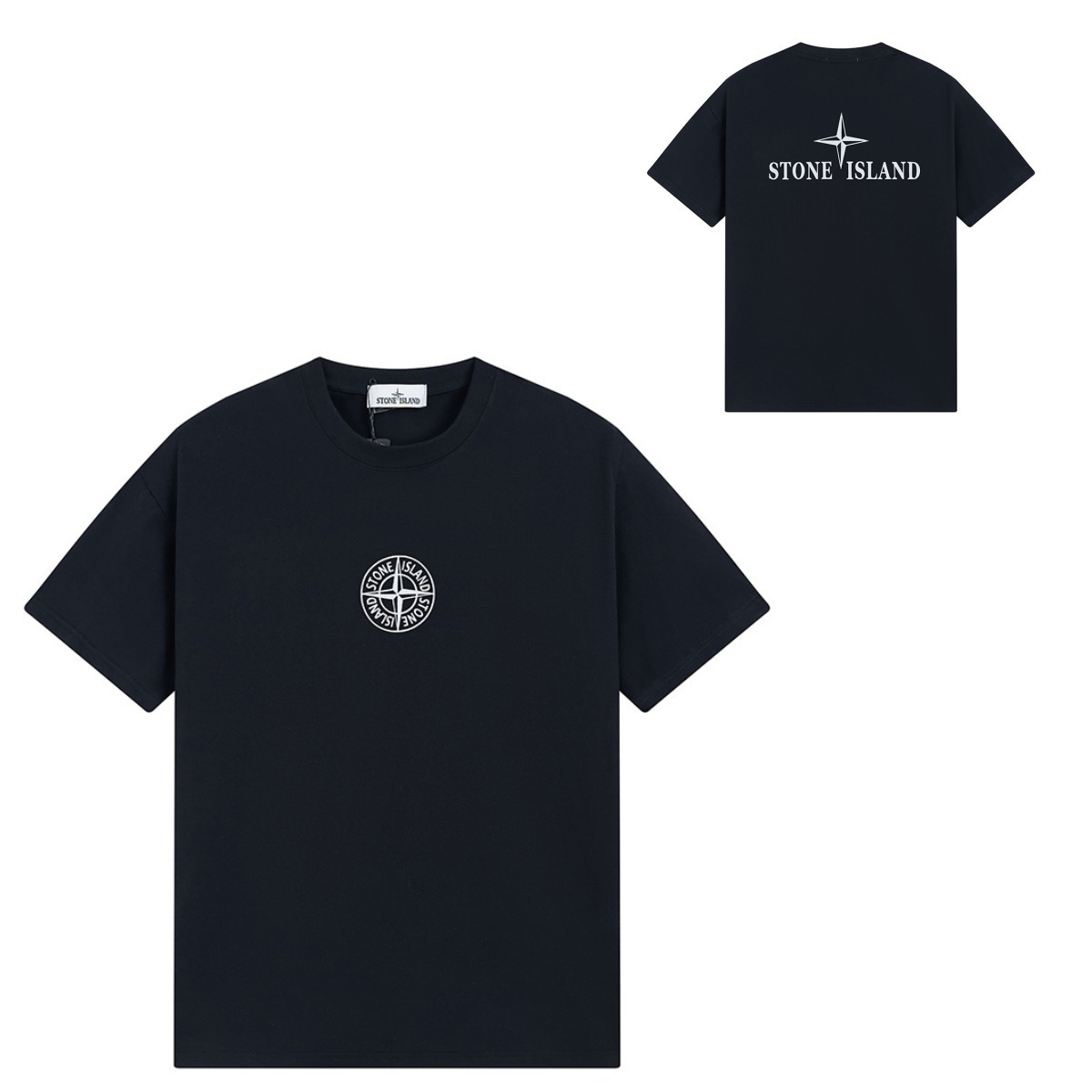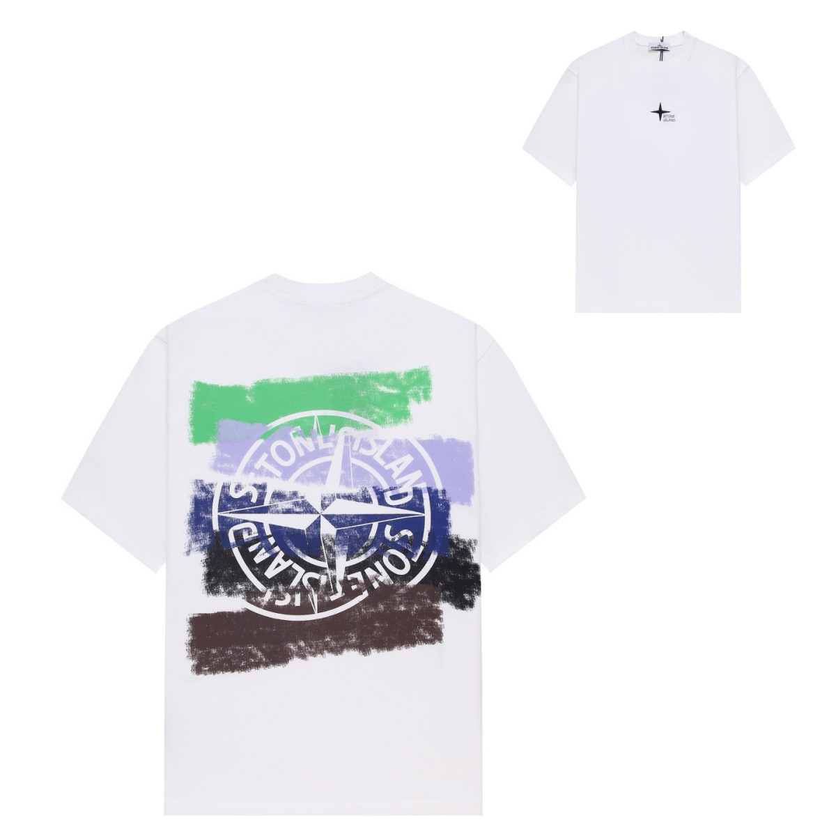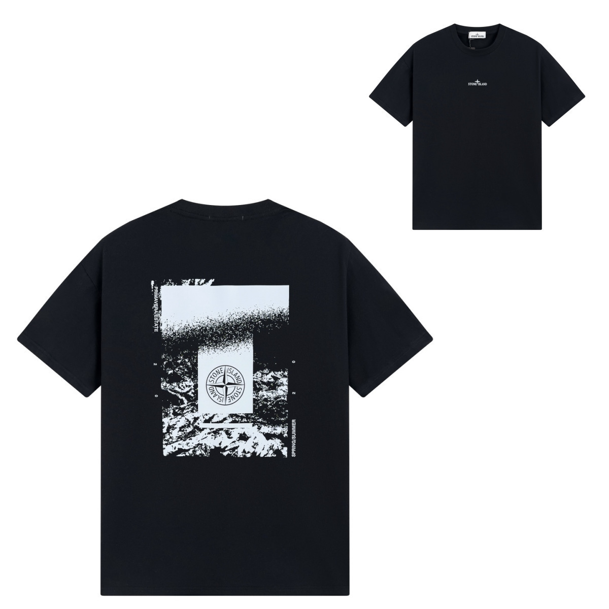 여름 스톤 퓨어 코튼 반팔 티셔츠 콜라보 로고 프린트 캐주얼 루즈 커플 남성과 여성의 크로스보더 올바른 버전스토어 가기