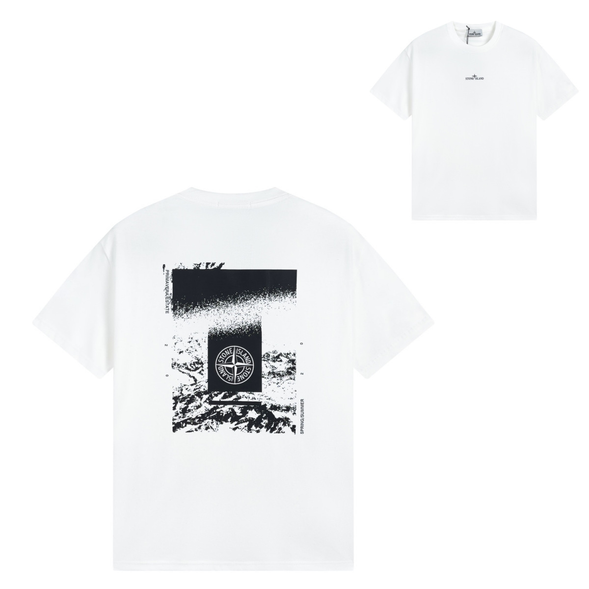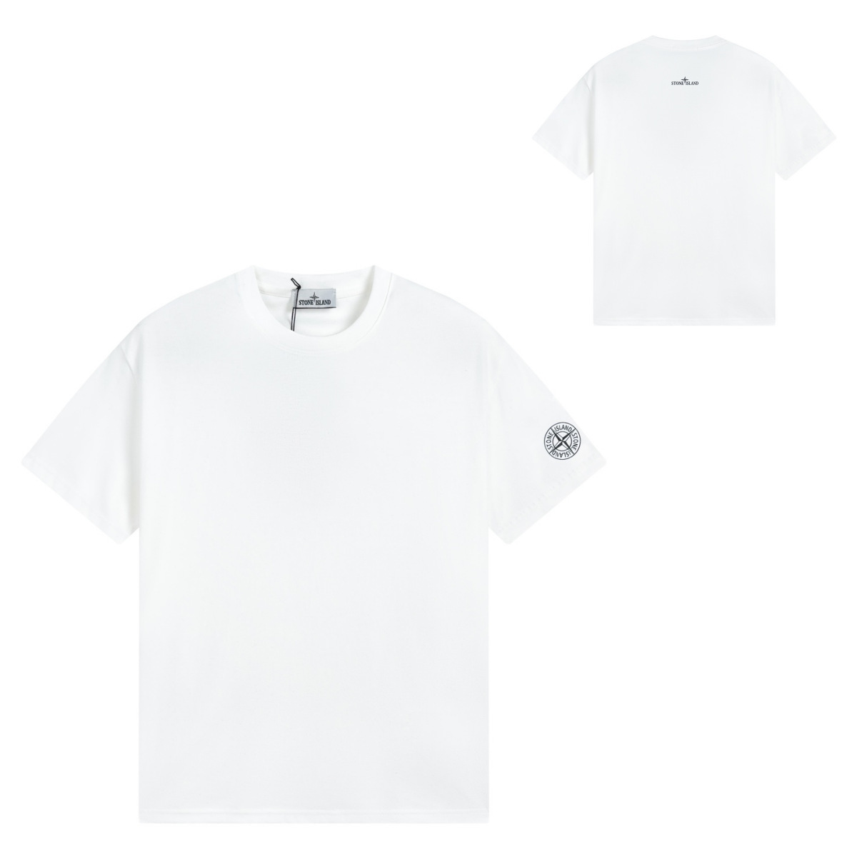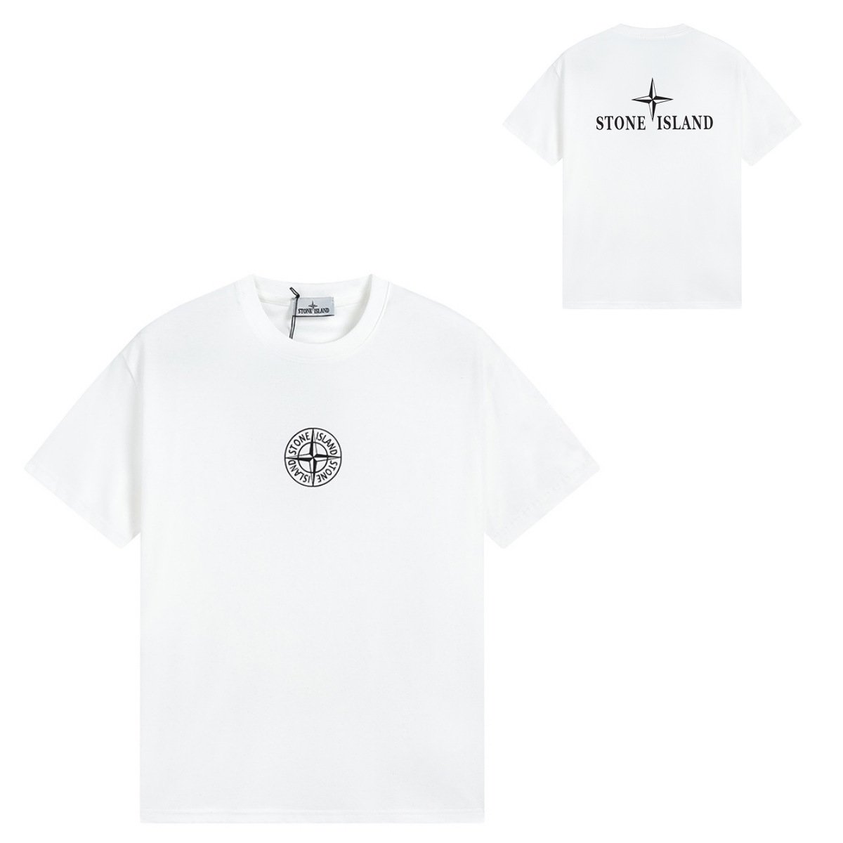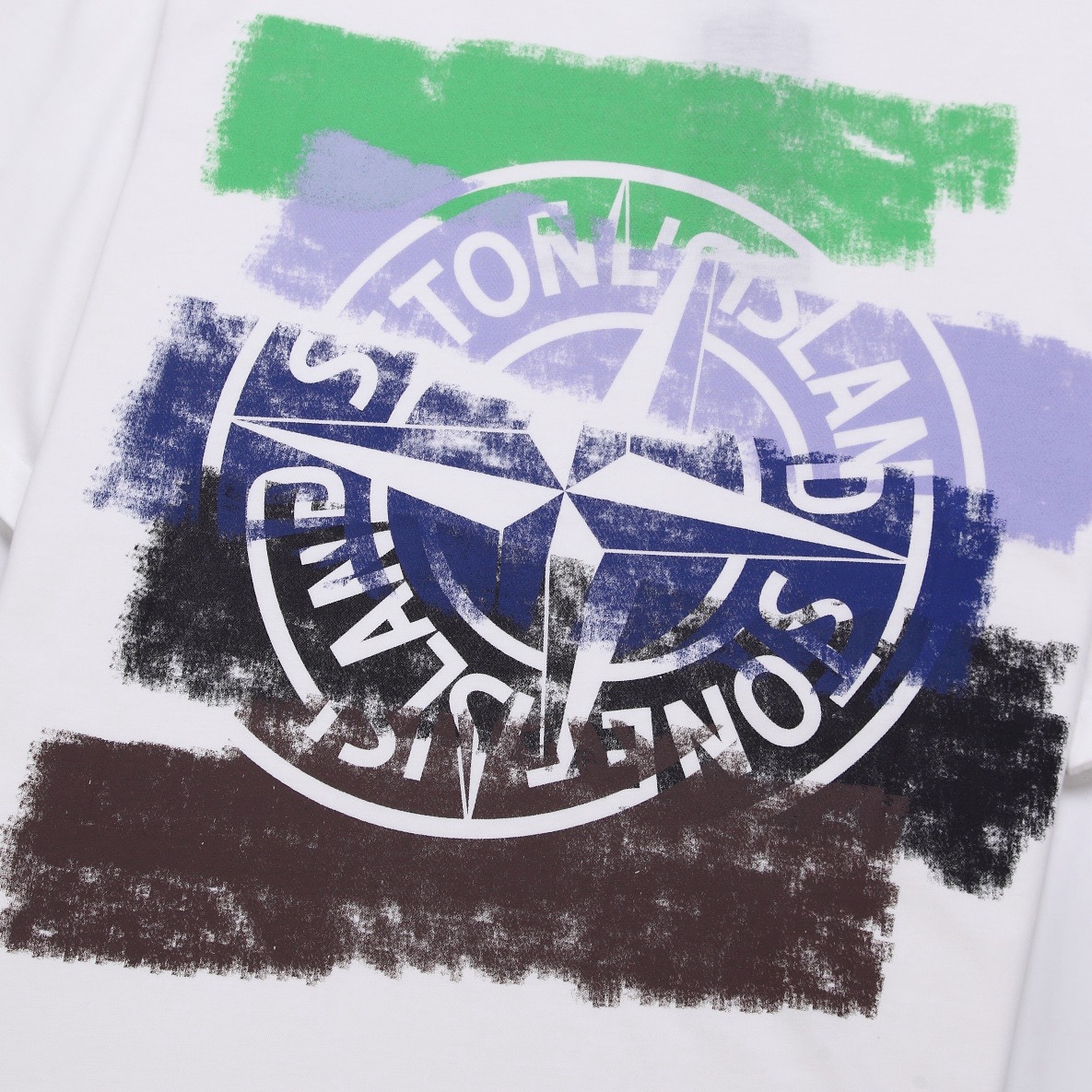 여름 스톤 퓨어 코튼 반팔 티셔츠 콜라보 로고 프린트 캐주얼 루즈 커플 남성과 여성의 크로스보더 올바른 버전스토어 가기
