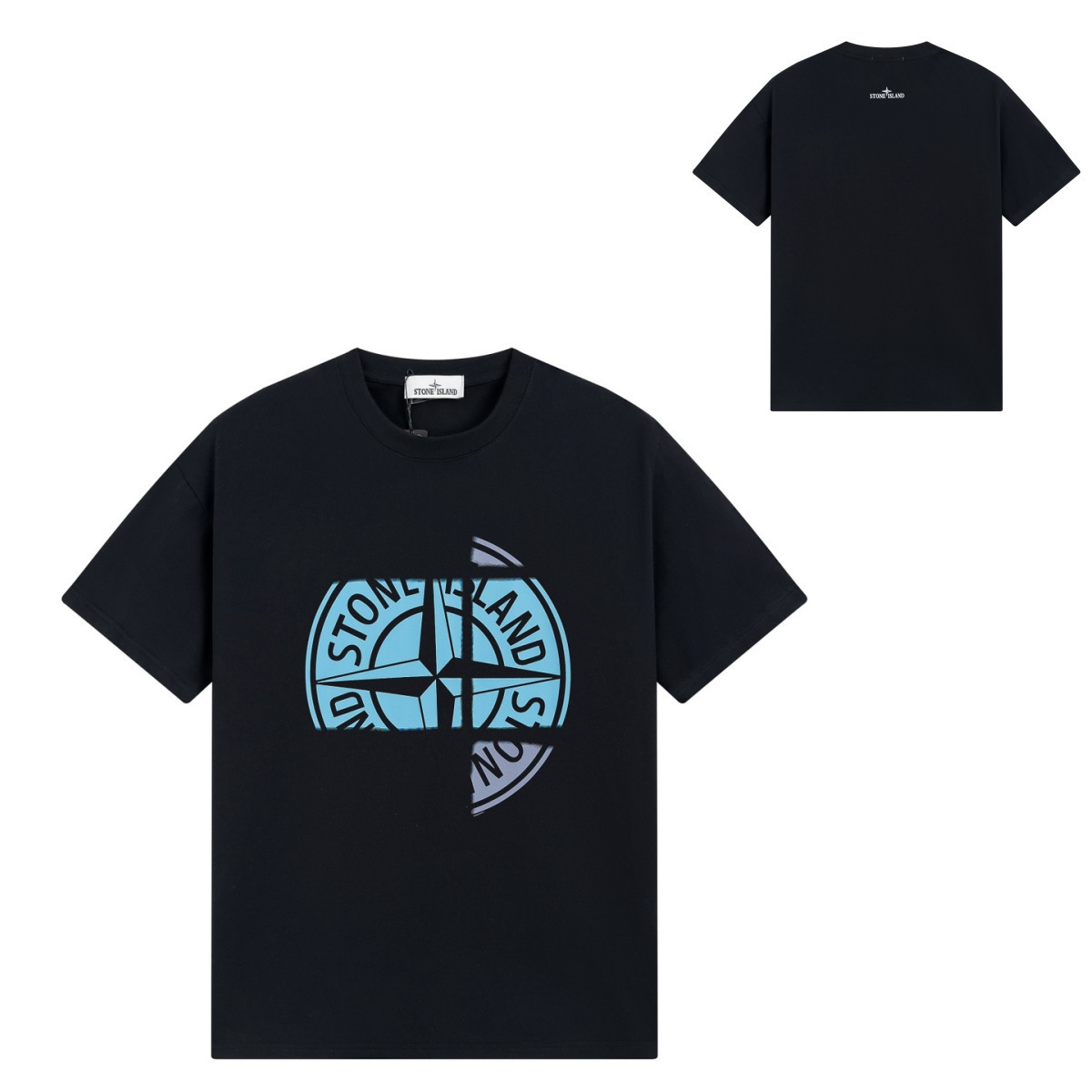 여름 스톤 퓨어 코튼 반팔 티셔츠 콜라보 로고 프린트 캐주얼 루즈 커플 남성과 여성의 크로스보더 올바른 버전