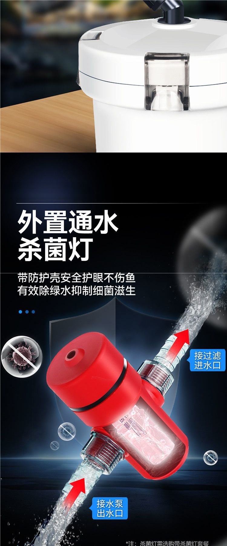 • Y80 필터 배럴 + 필터 재료 + 살균 램프 + 분무 + 공기 펌프 B