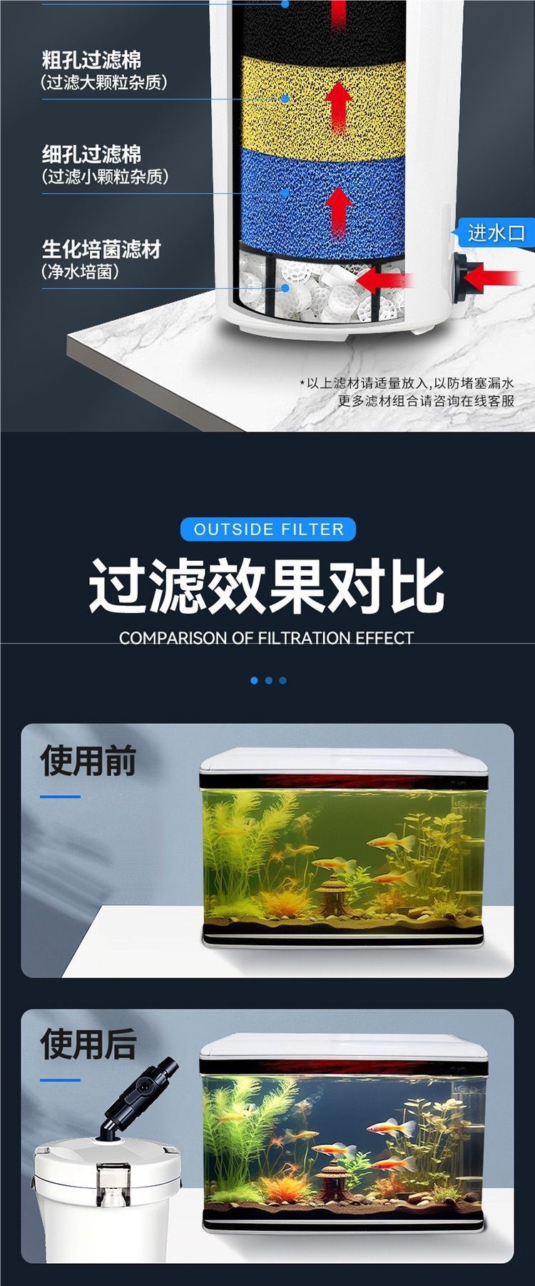 세라믹 수조 필터, 가정용 완전 자동 안뜰 잔디 탱크, 외부 필터 버킷, 자동 원형 탱크, 수중 프리 버킷