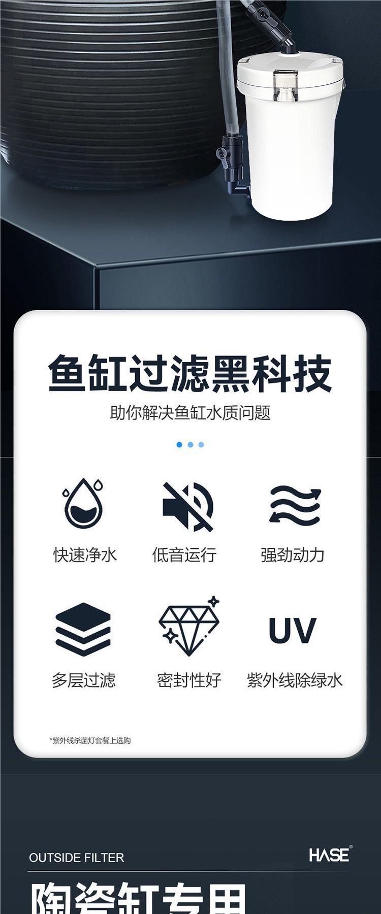 • Y80 세라믹 실린더 필터 배럴 + 필터 재료 + 살균 램프 B