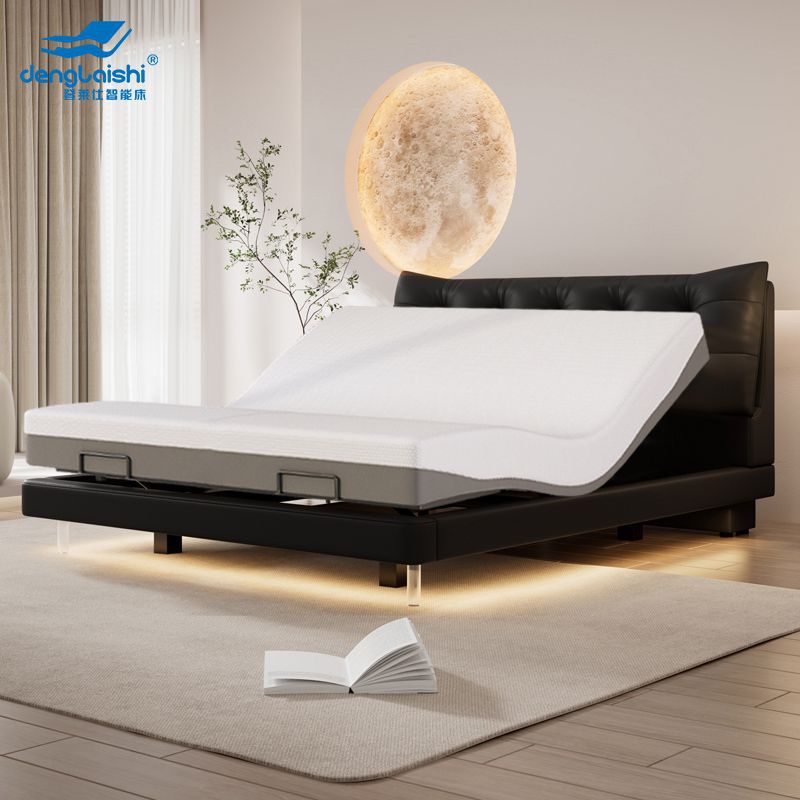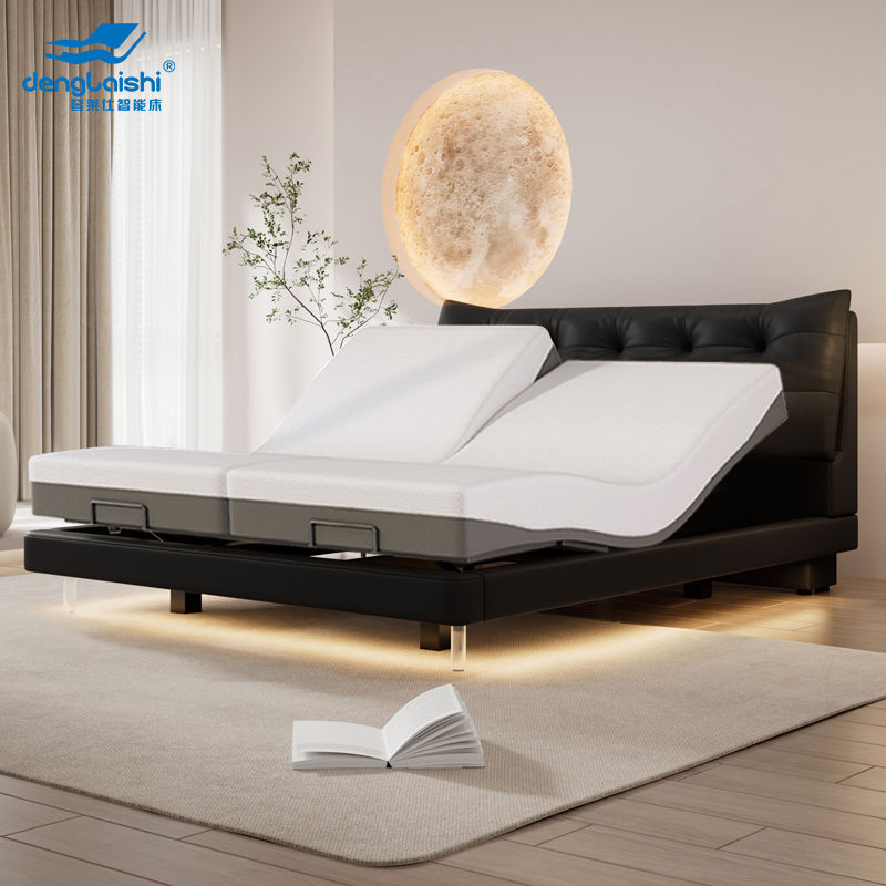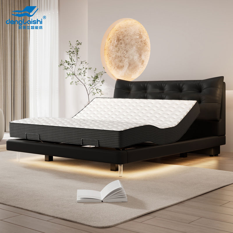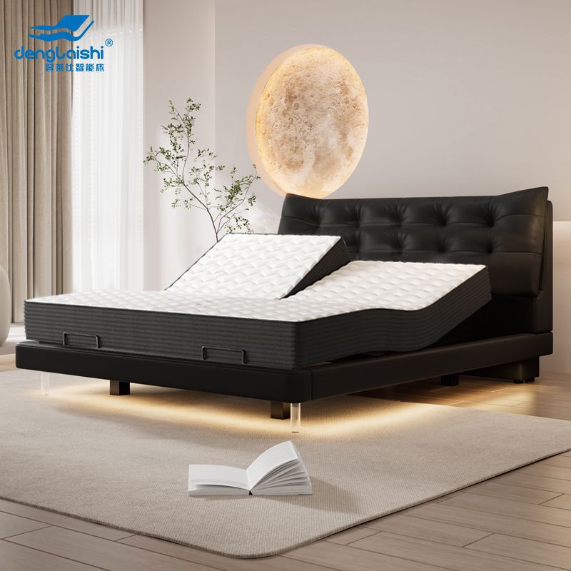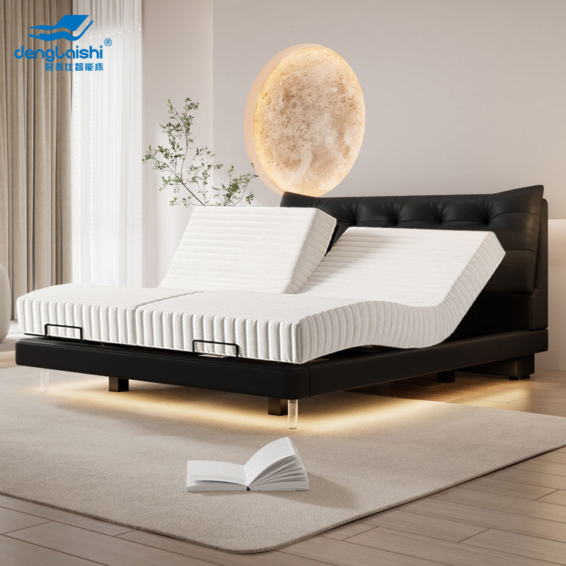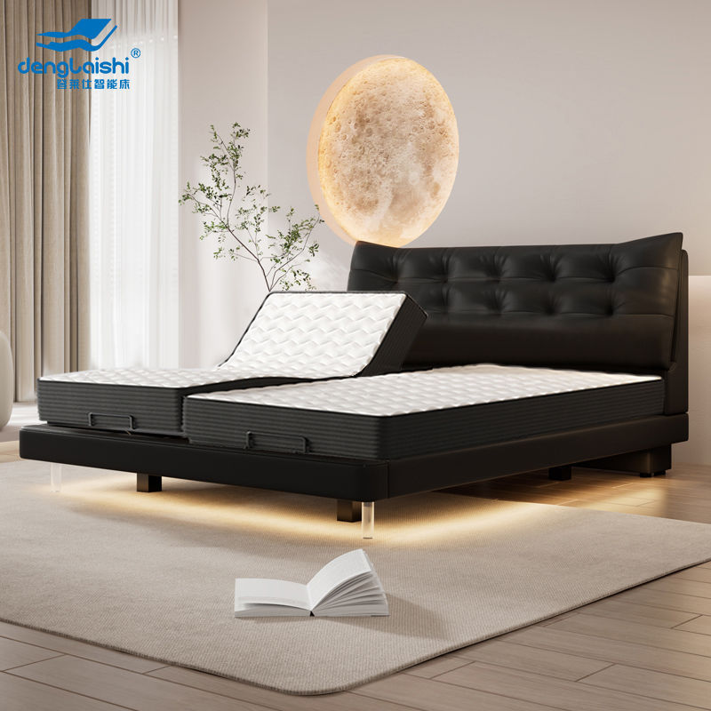 전동침대, 천연가죽 서스펜션 침대, 무중력 분할 리프트, 수면 모니터링/코골이 방지/음성 조절 가능, 럭셔리