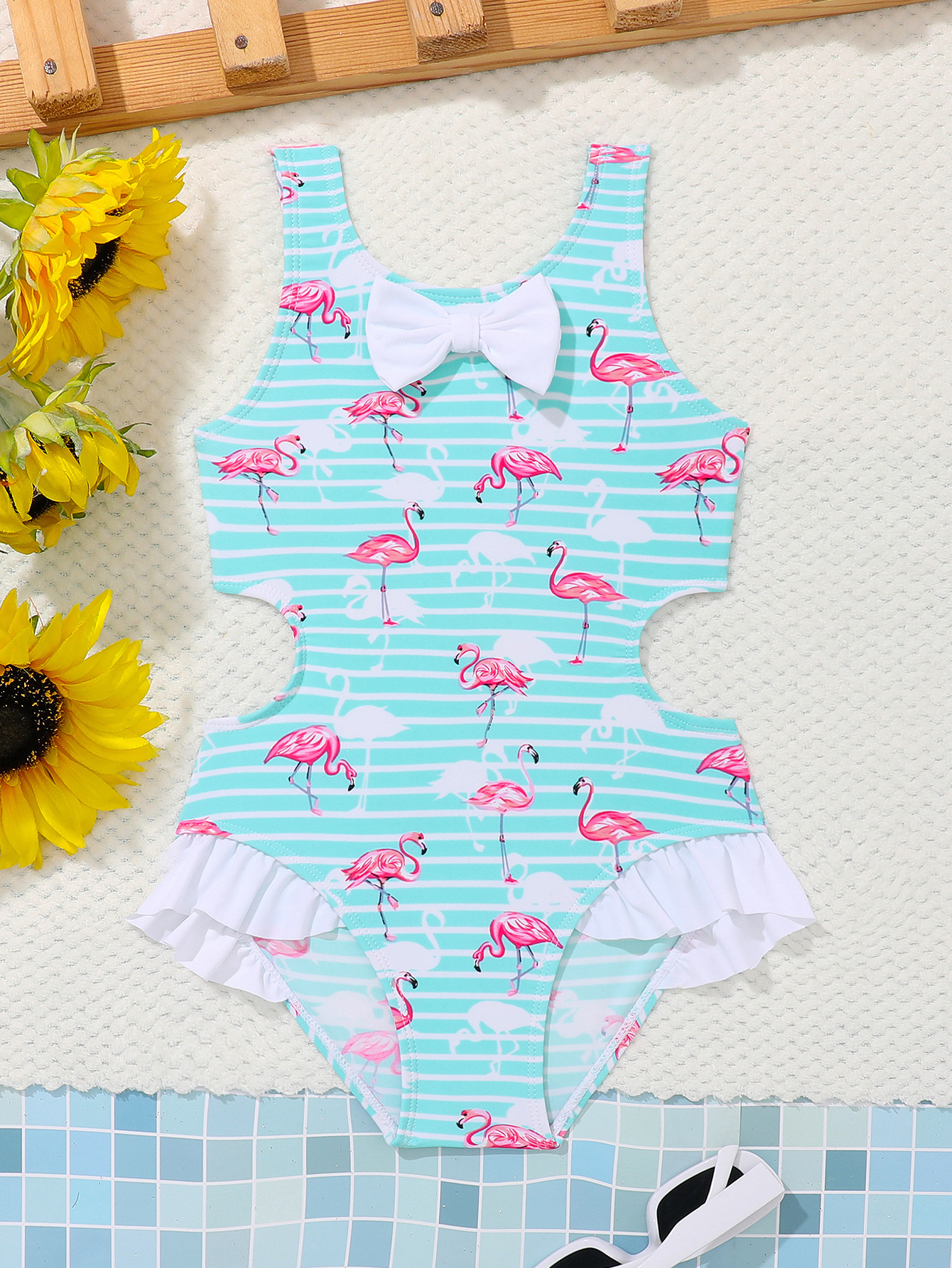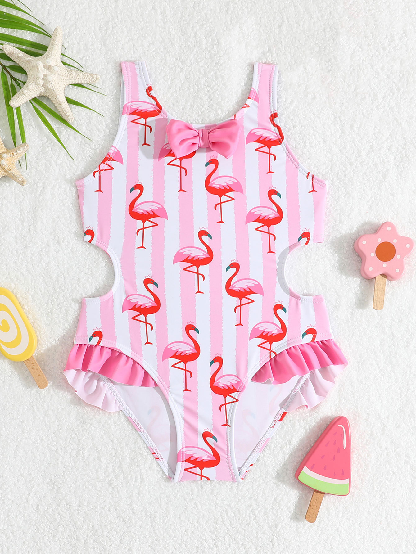 여자 한국 스타일 새로운 수영복 5-14 세 점프 슈트 패션 플라밍고 온천 수영복 통기성 속건성 휴가