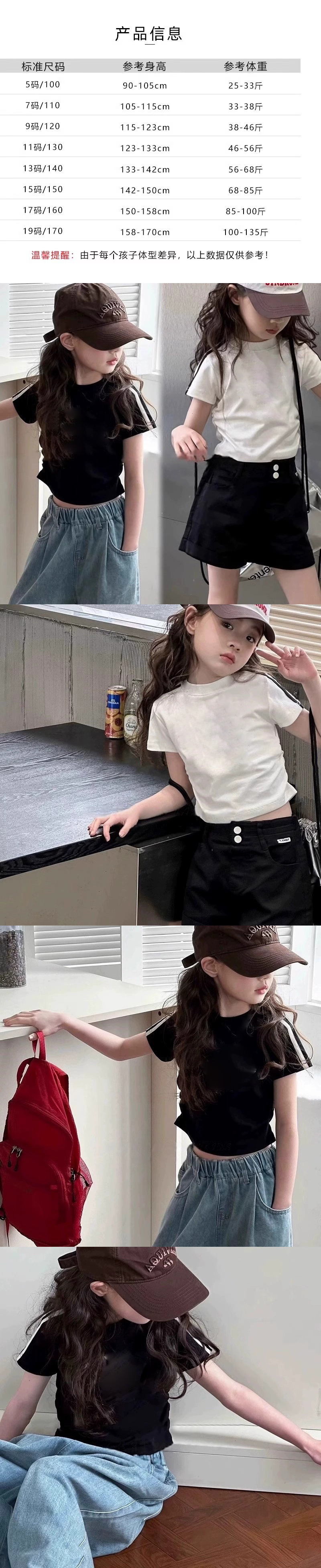 女童短款修身恤夏季童装女孩空白版短袖中大童上衣_黑色