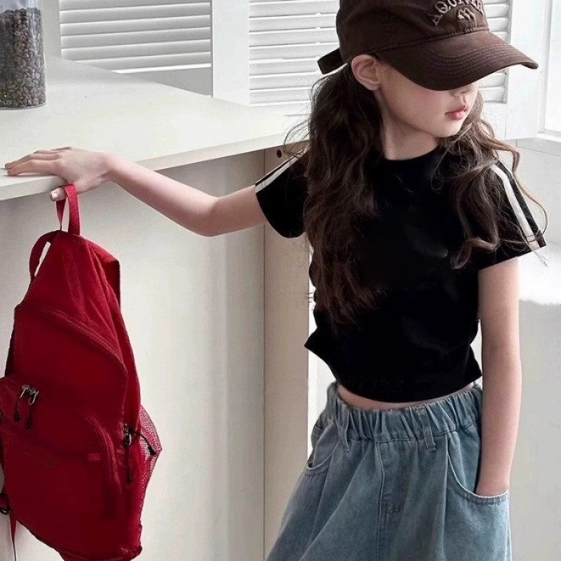 여아 반팔 티셔츠 2026 여름 슬림핏 순면 아동용 여성스러운 상의 중대형 아동용 양쪽 허리 부분이 잘록한 짧은 스타일스토어 가기