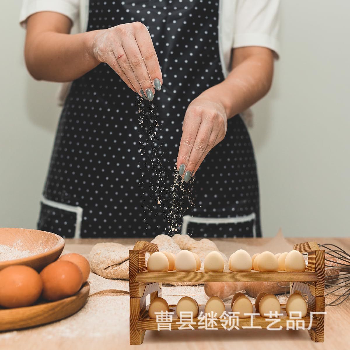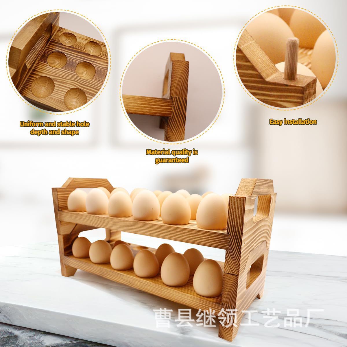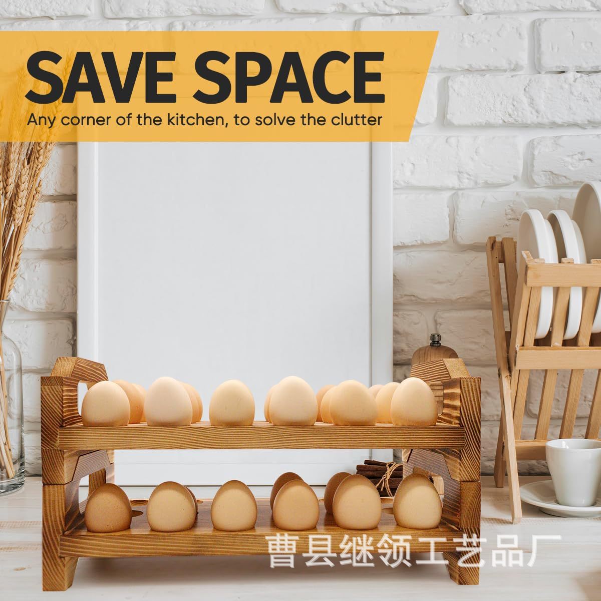 주방 정리 및 보관 랙 조리대는 이중층으로 내구성이 뛰어나고 공간 절약형 디자인입니다. 가정용 목재 계란 랙