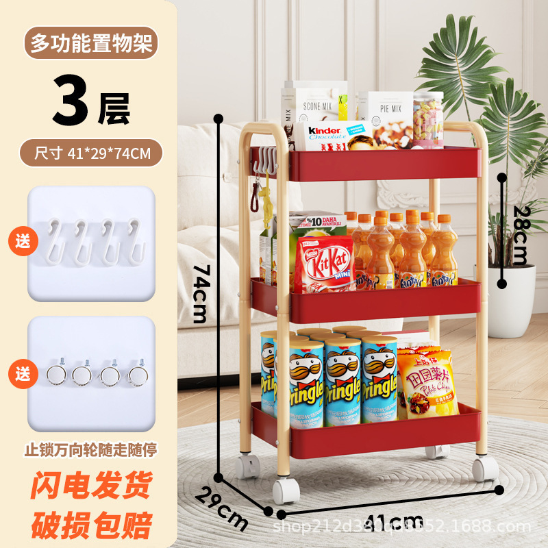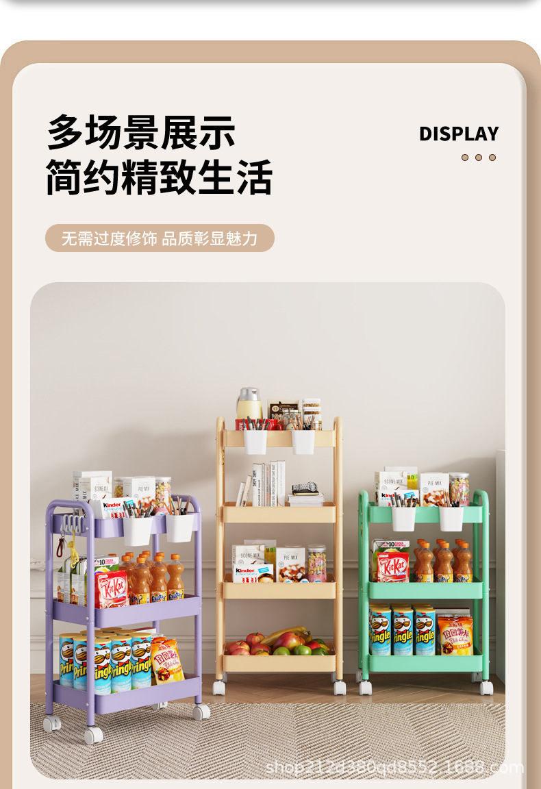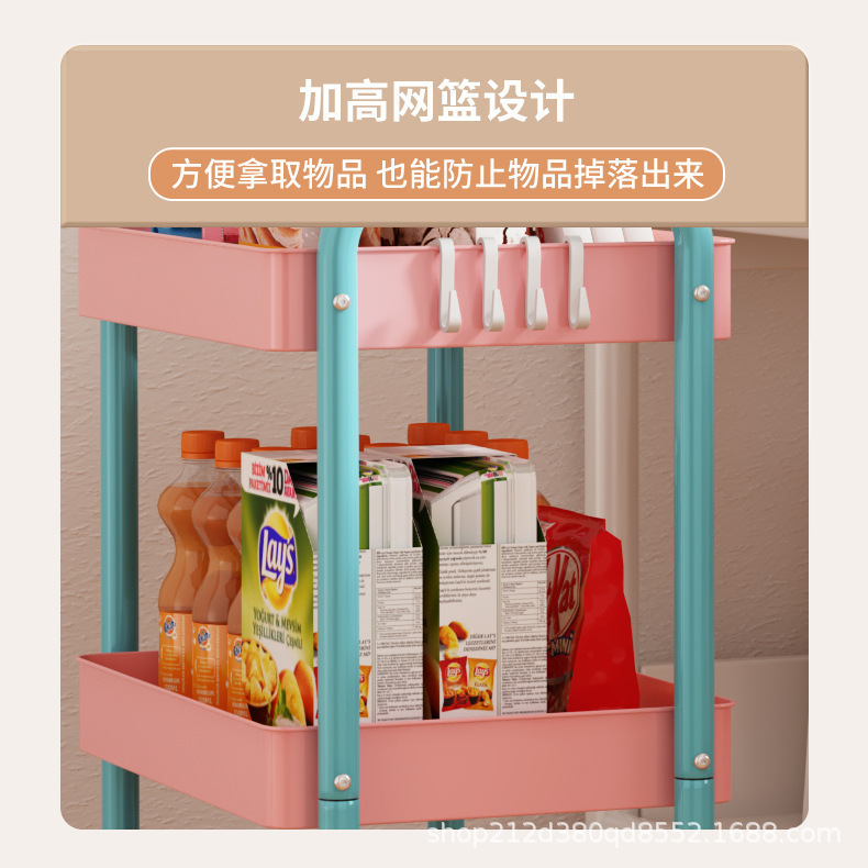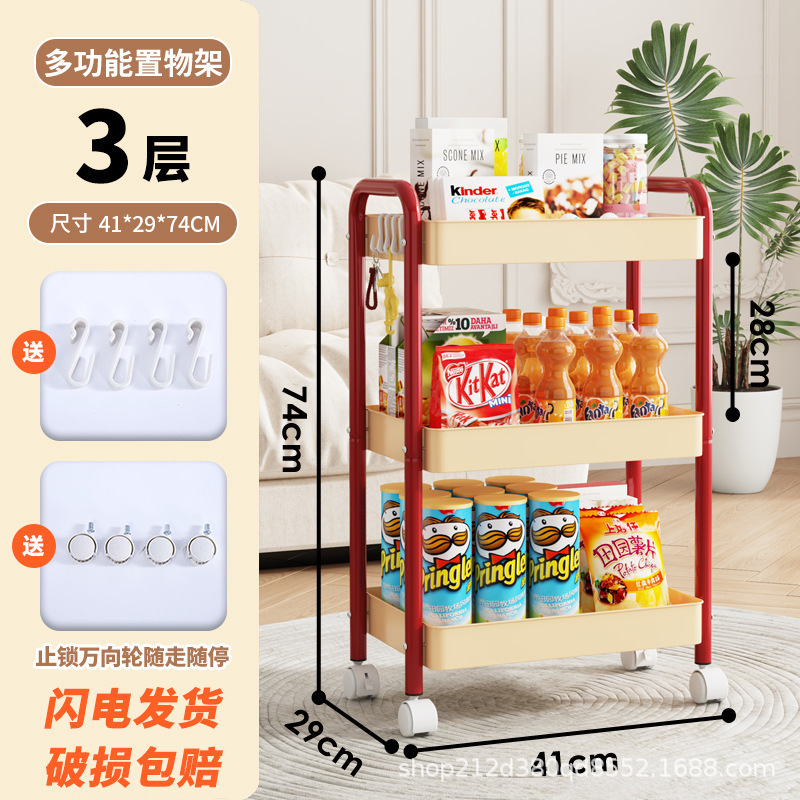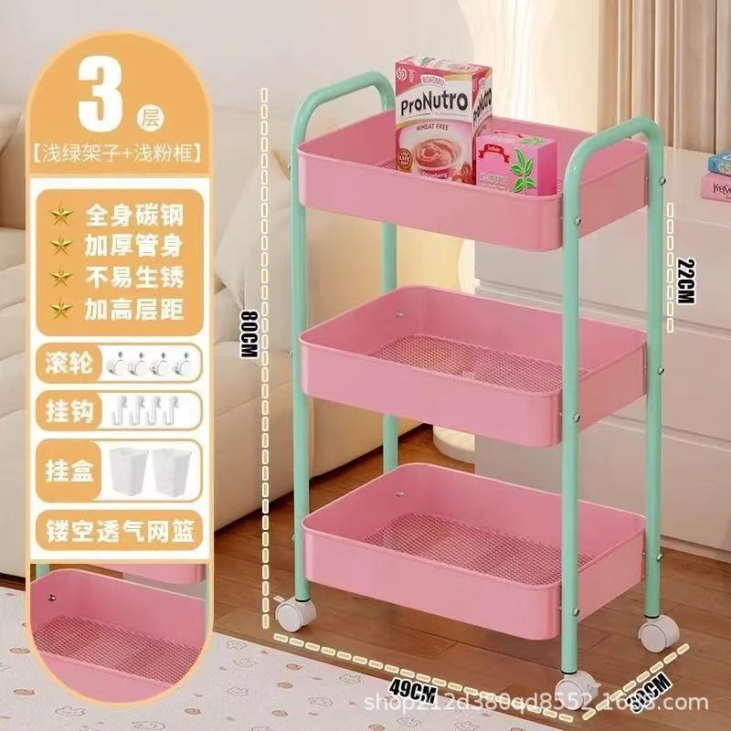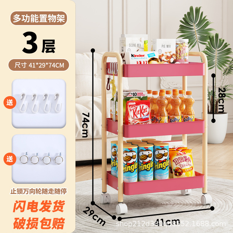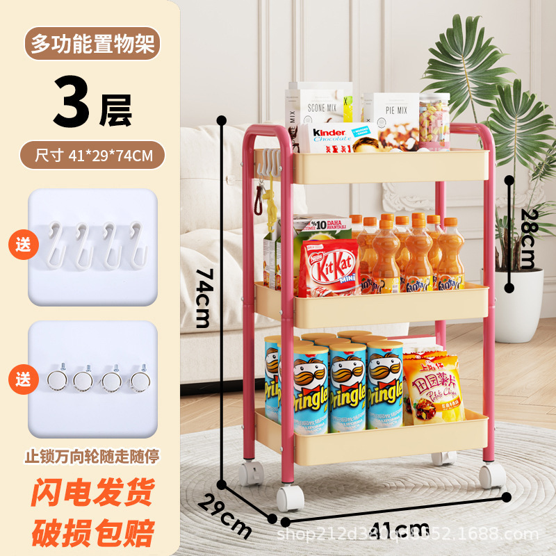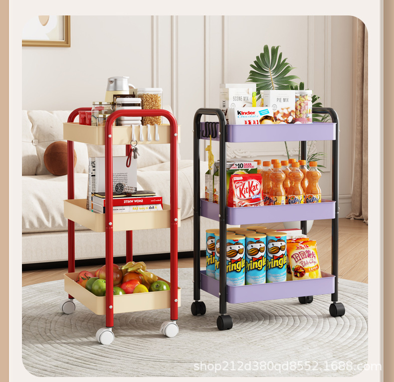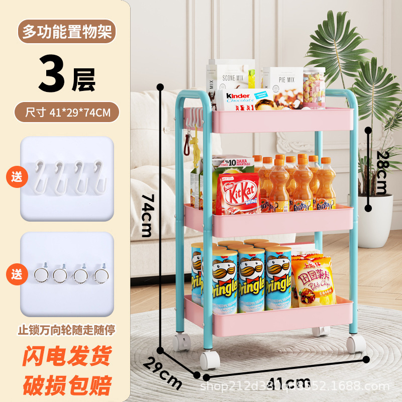 拼色小推车置物架可移动型多层落地简约家用置物蔬菜架客厅置物架