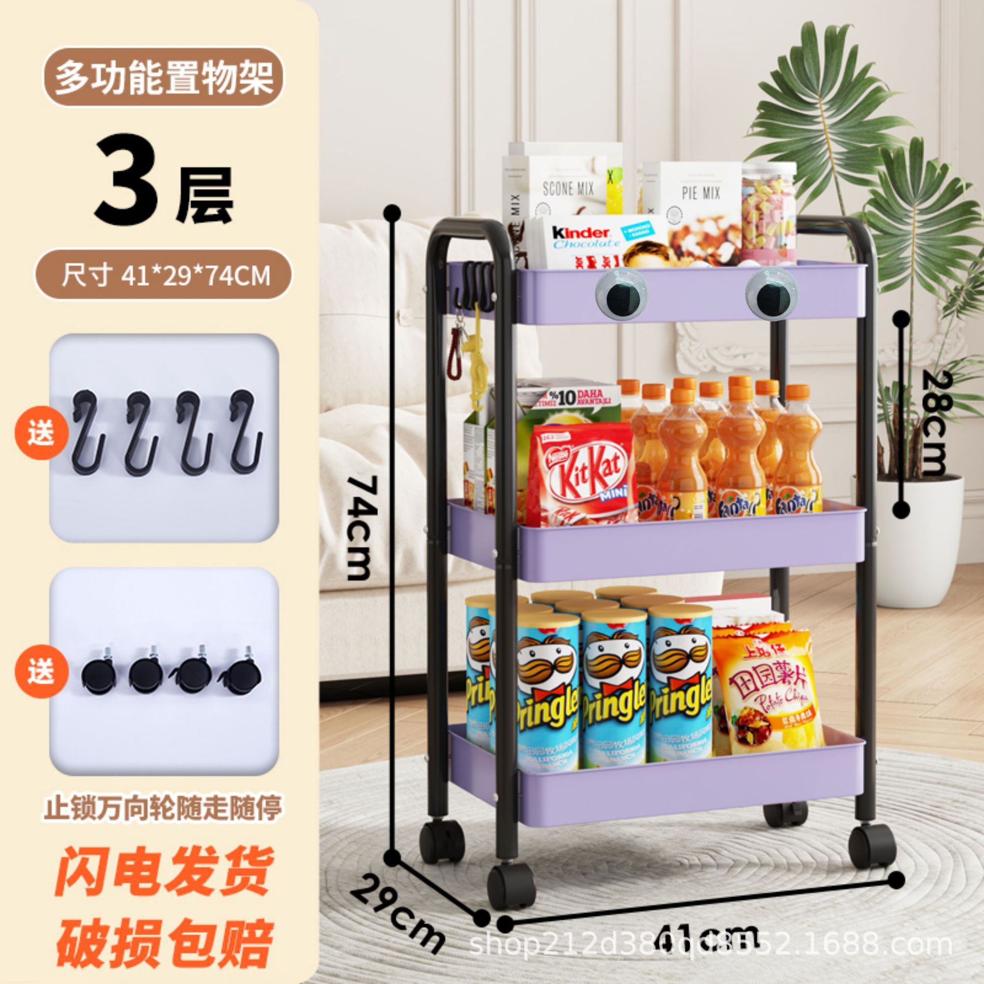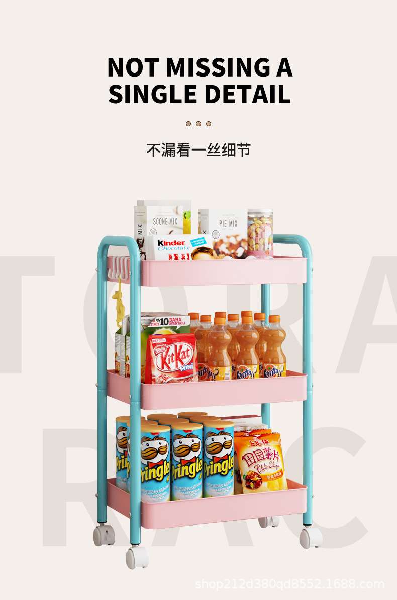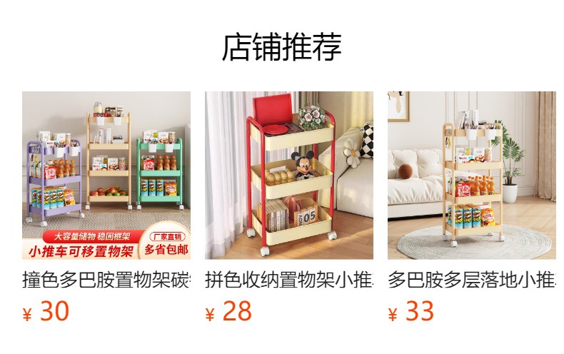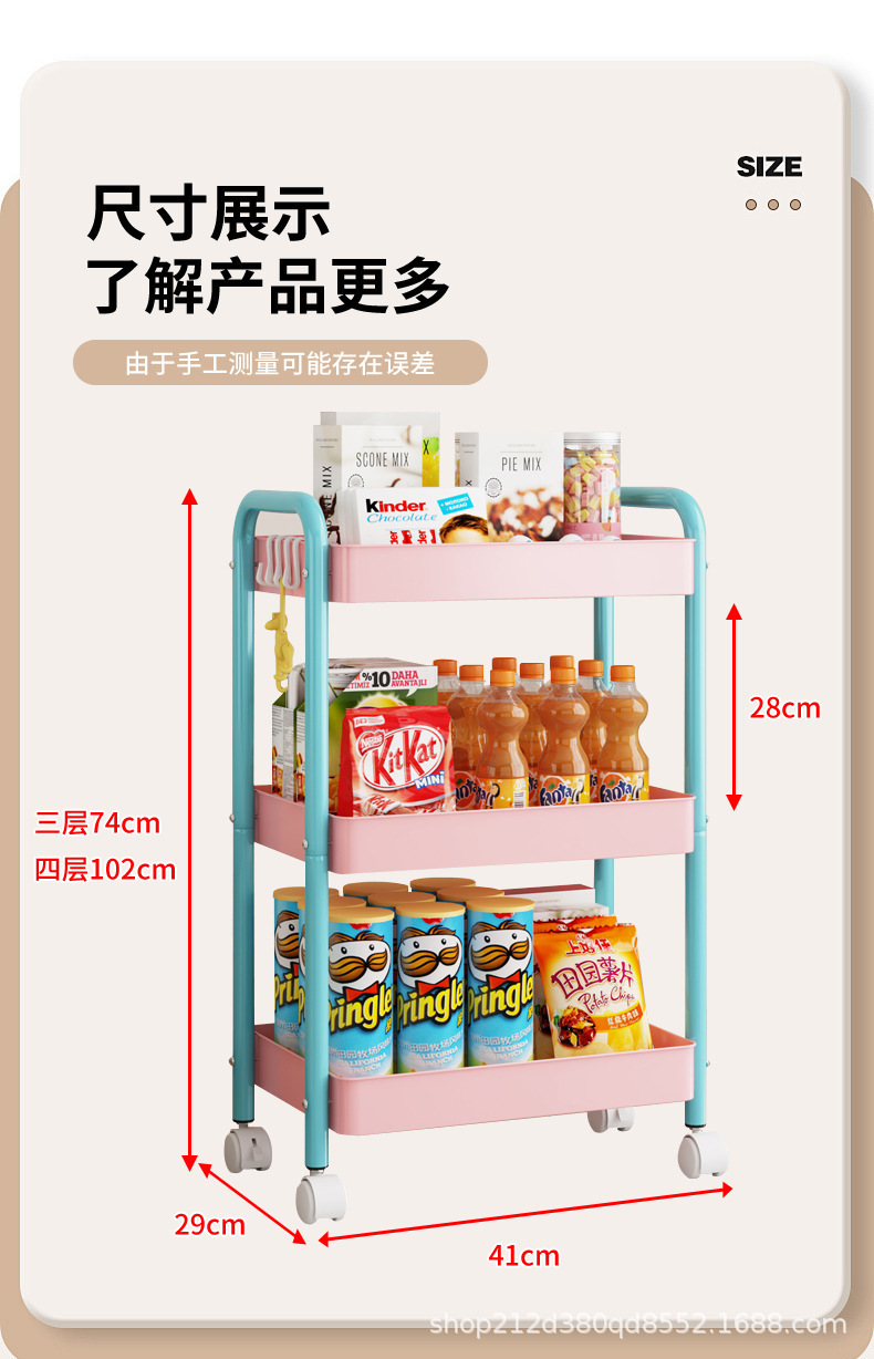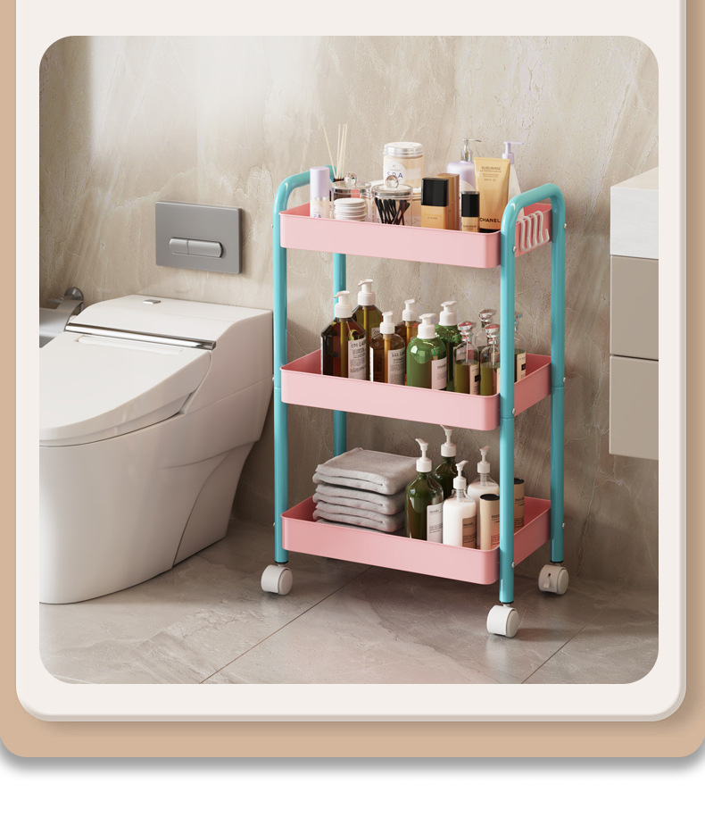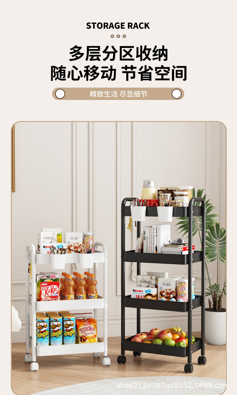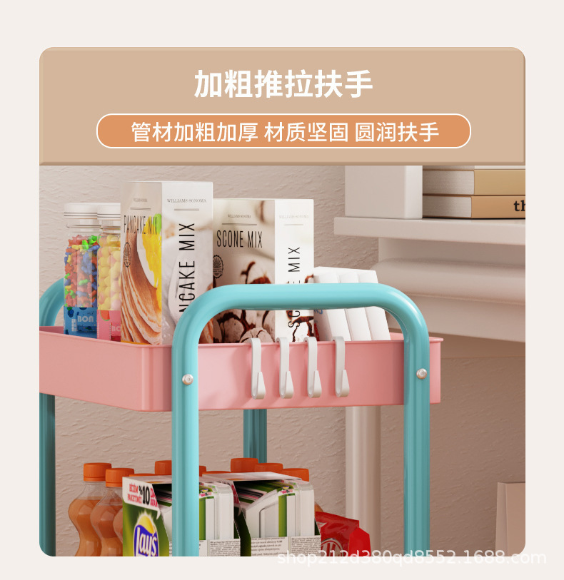 拼色小推车置物架可移动型多层落地简约家用置物蔬菜架客厅置物架