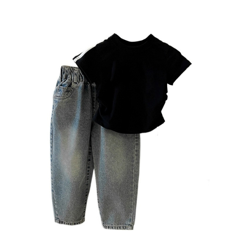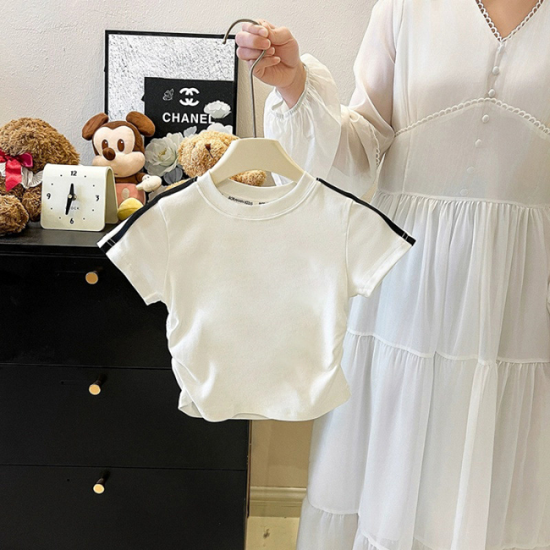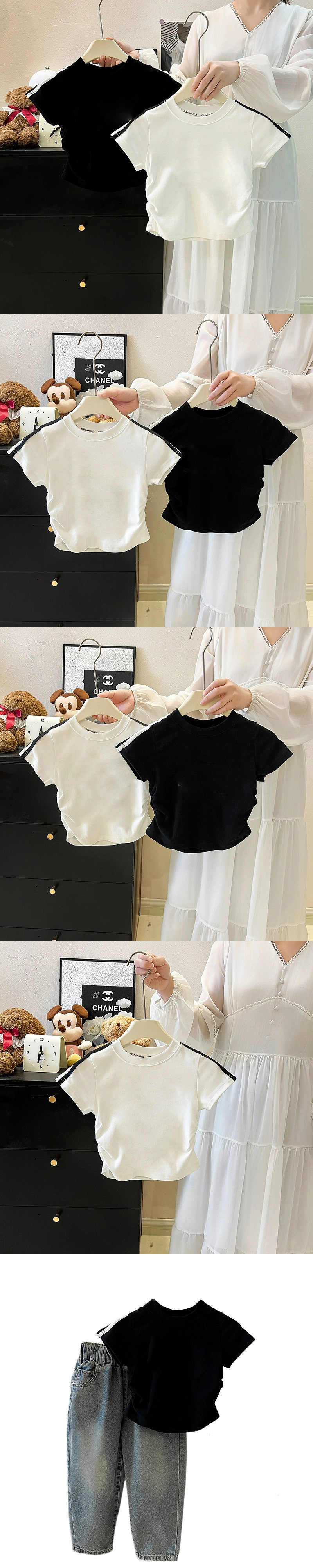 국경 간 대외 무역 소녀 면화 반팔 셔츠 줄무늬 어린이 짧은 라운드 넥 탑 소녀 스트리트 심플 티셔츠스토어 가기