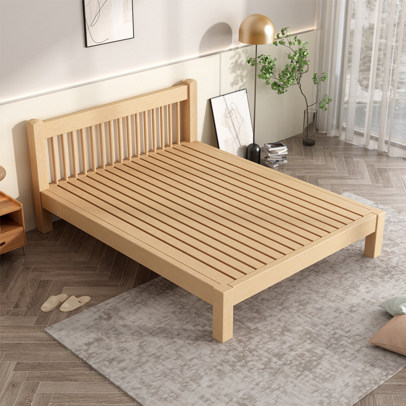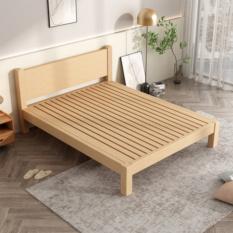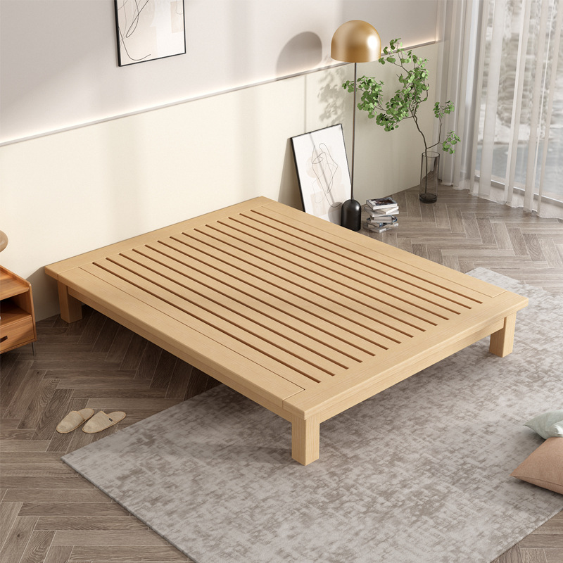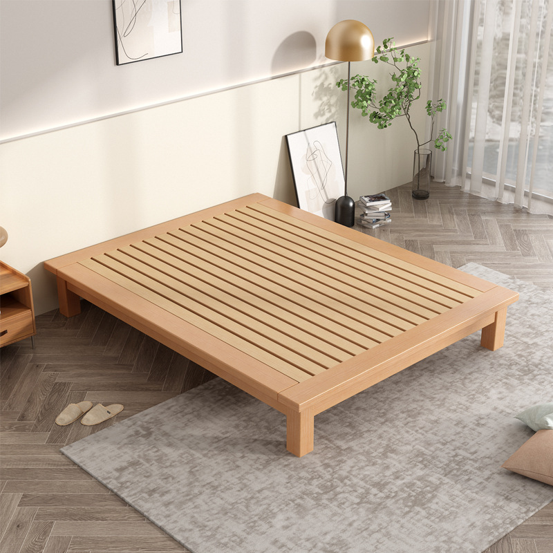 전체 너도밤나무 원목 침대 다다미 침대 심플 모던 침대 옆이 없는 침대 프레임 1.8m 더블 등받이 없는 낮은 침대