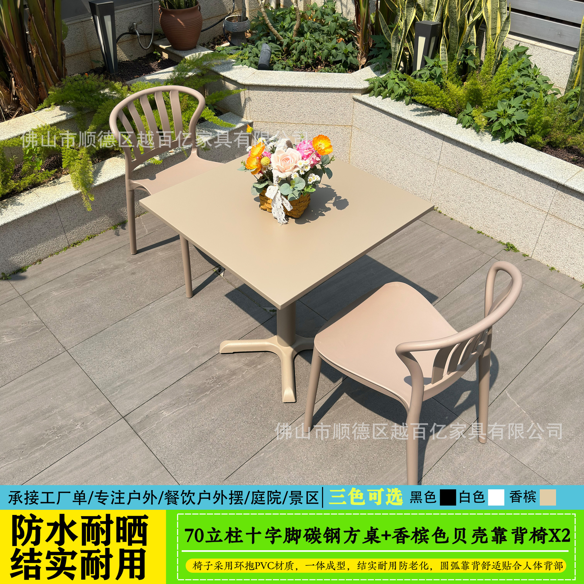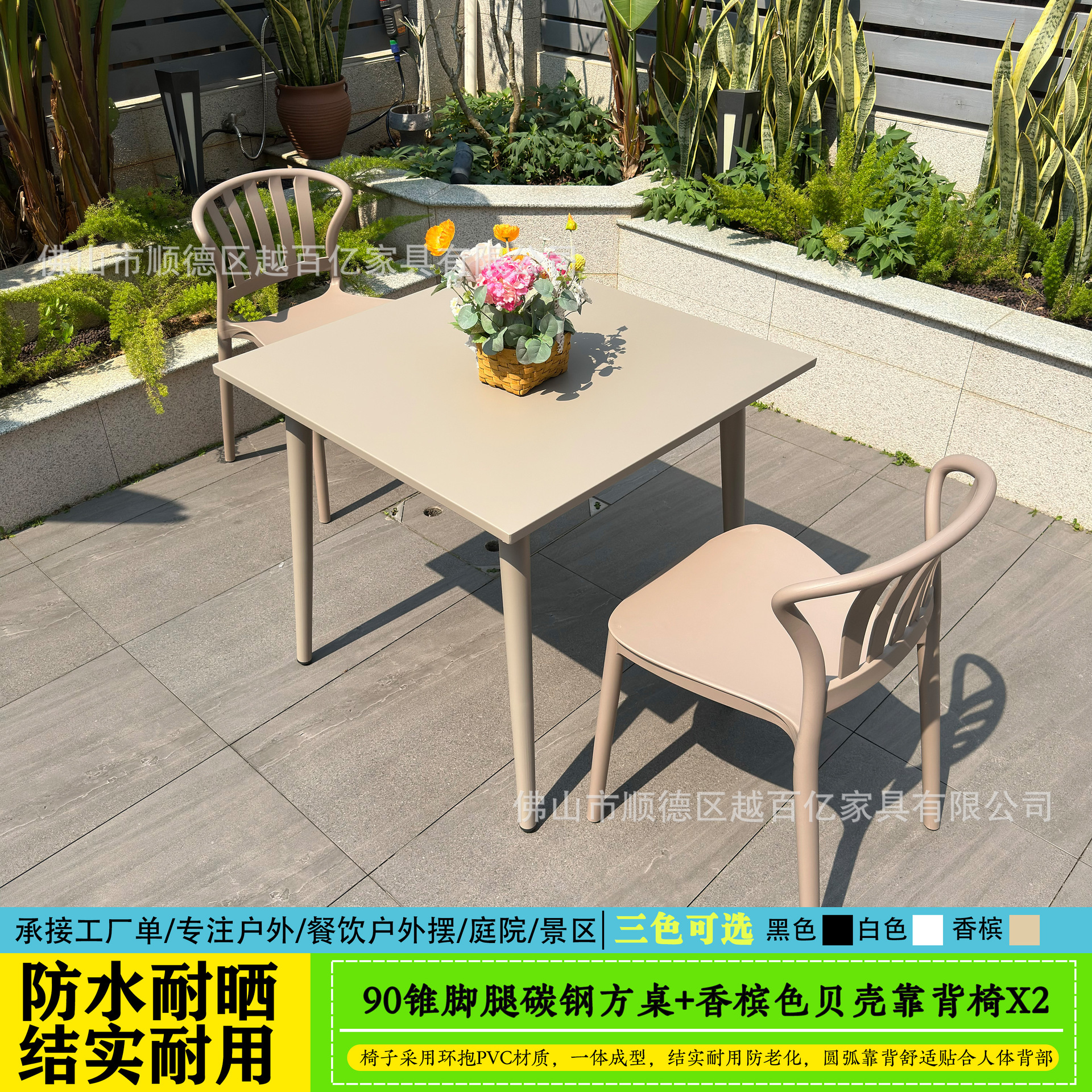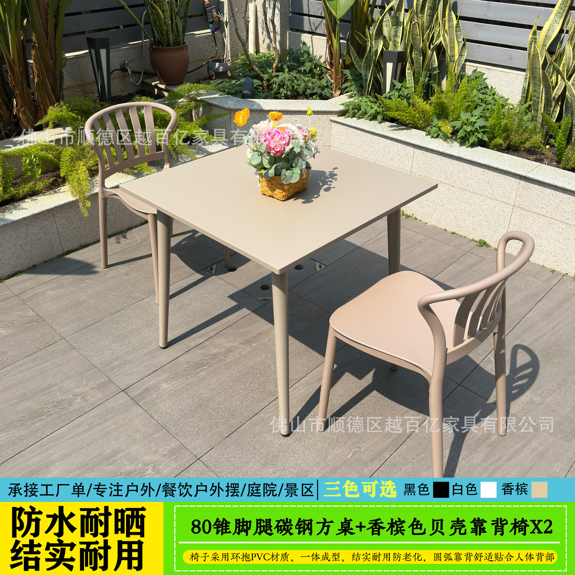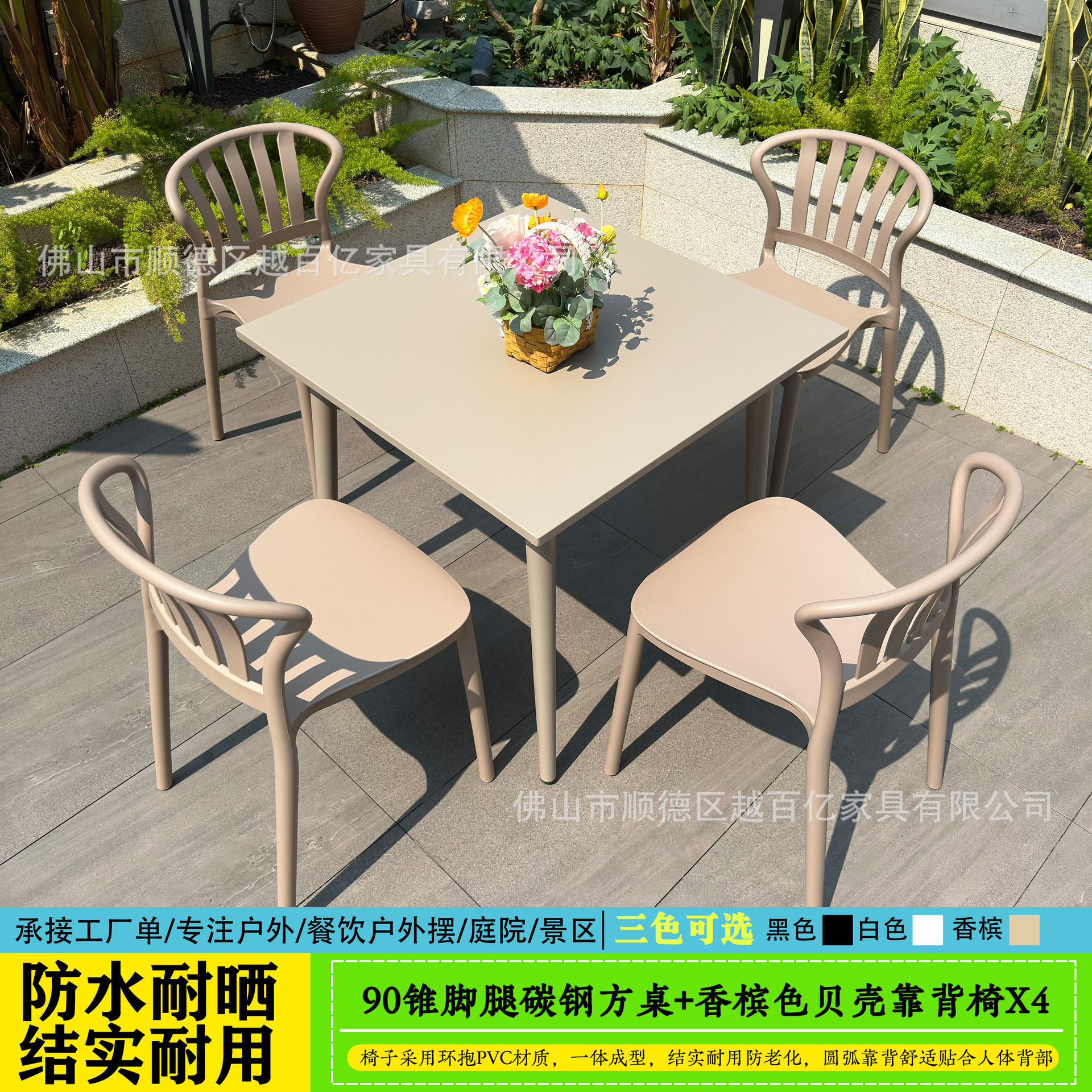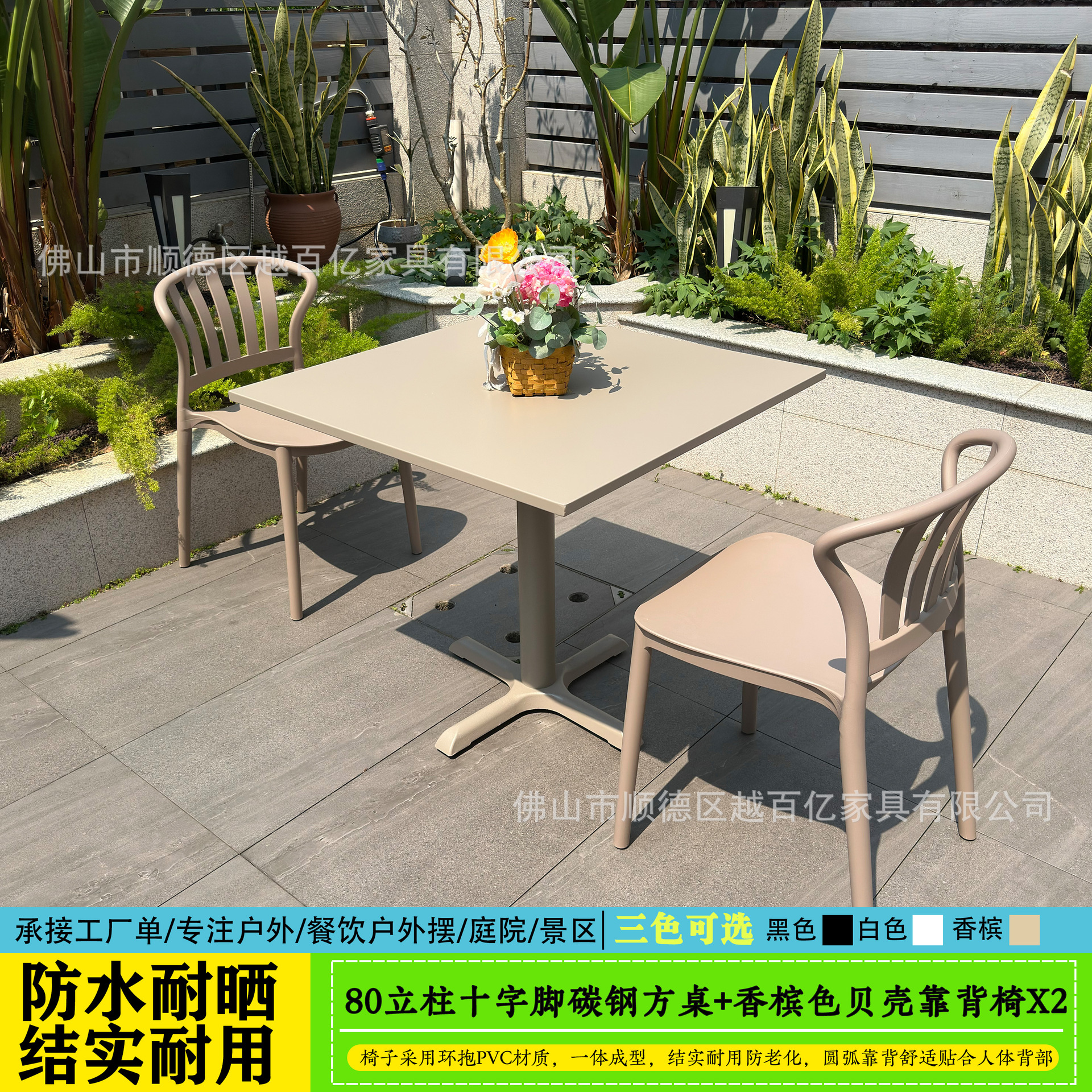 야외 테이블과 의자, 야외 야외 휴식 공간, 탄소강 두꺼운 안뜰 발코니, 밀크티 가게, 야외 레저 플라스틱 테이블과 의자