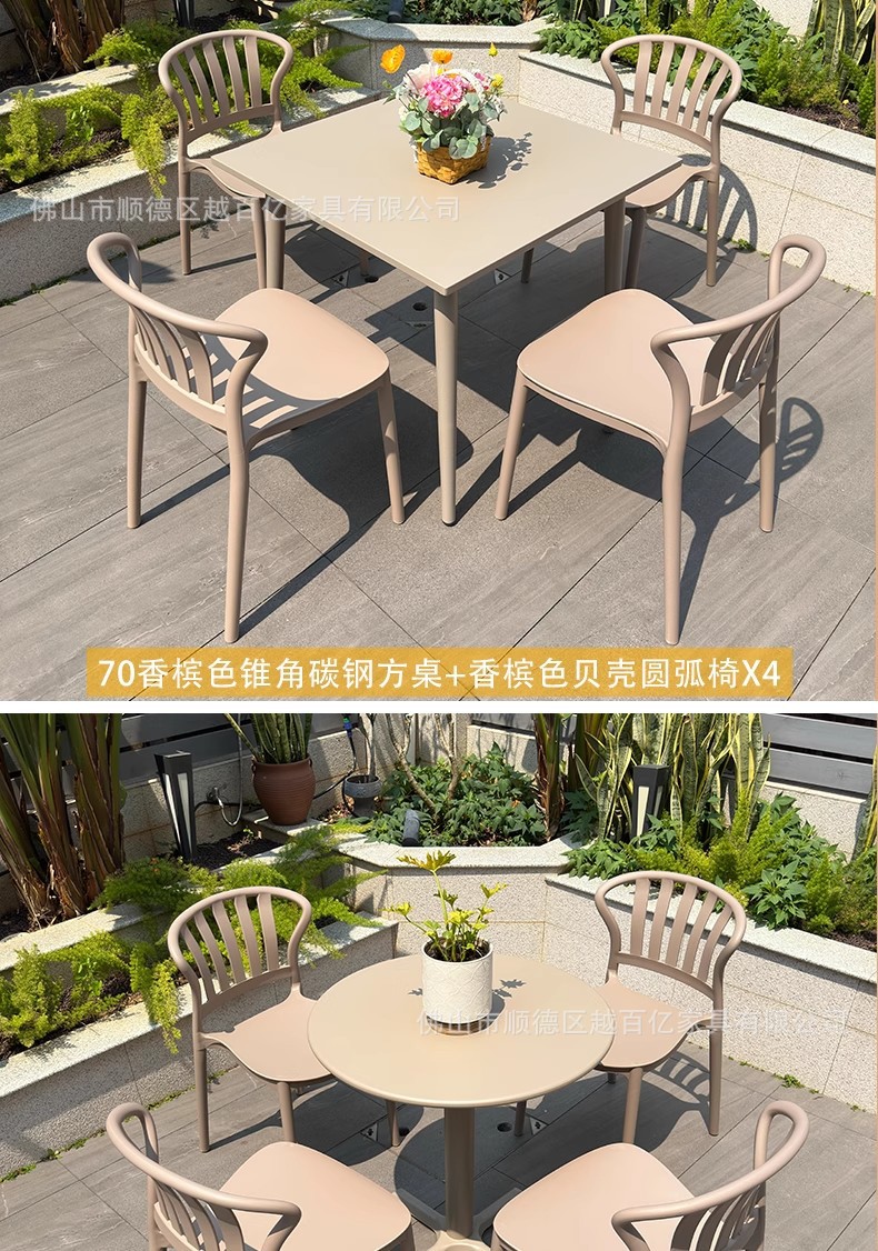 야외 테이블과 의자, 야외 야외 휴식 공간, 탄소강 두꺼운 안뜰 발코니, 밀크티 가게, 야외 레저 플라스틱 테이블과 의자스토어 가기
