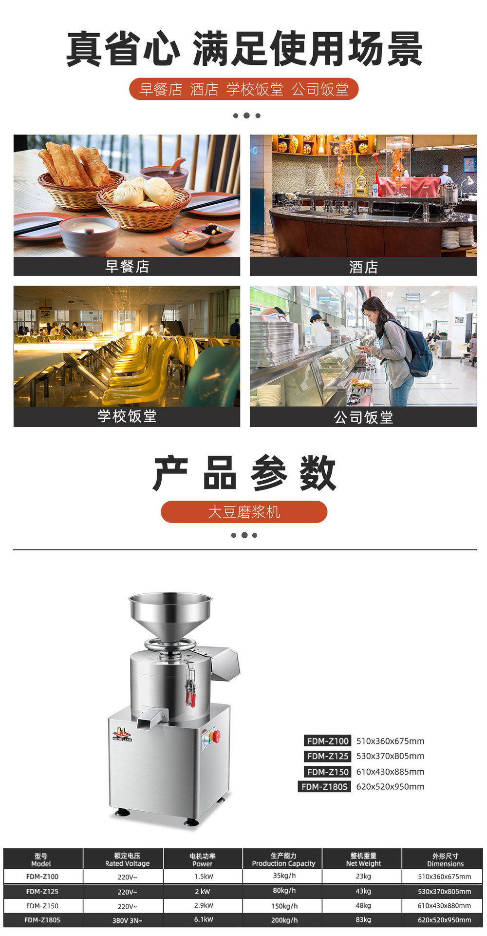 Henglian FDM100 상업용 분쇄기 두유 기계 주방 통합 장비 펄프 및 찌꺼기 분리 두유 분쇄기스토어 가기