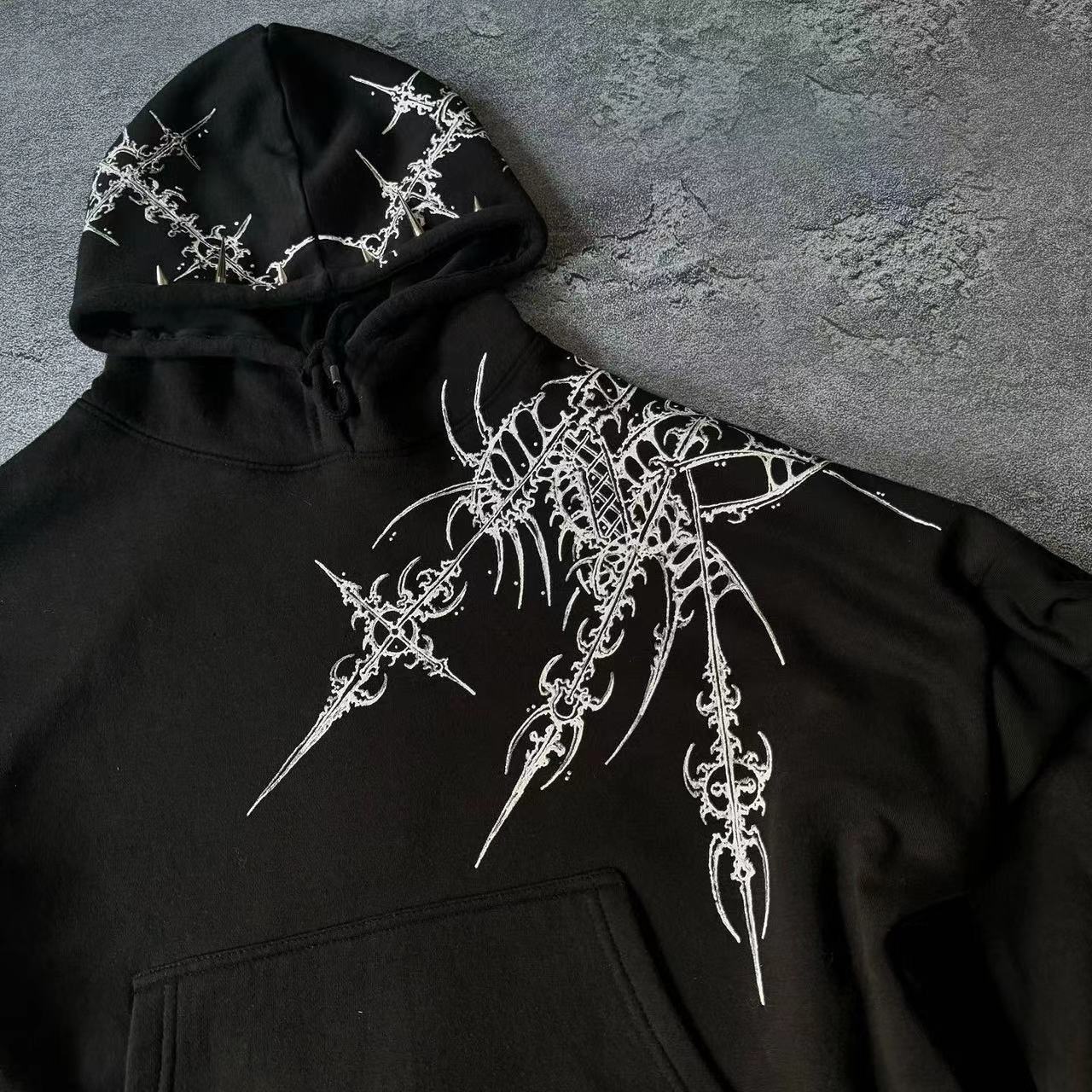 2025 뉴 아메리칸 레트로 힙합 해골 프론트와 백 프린트 후드 티셔츠 남성 하이 스트리트 가을, 겨울 코트 후드