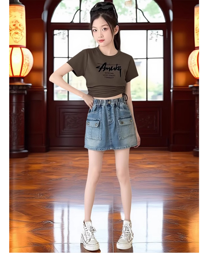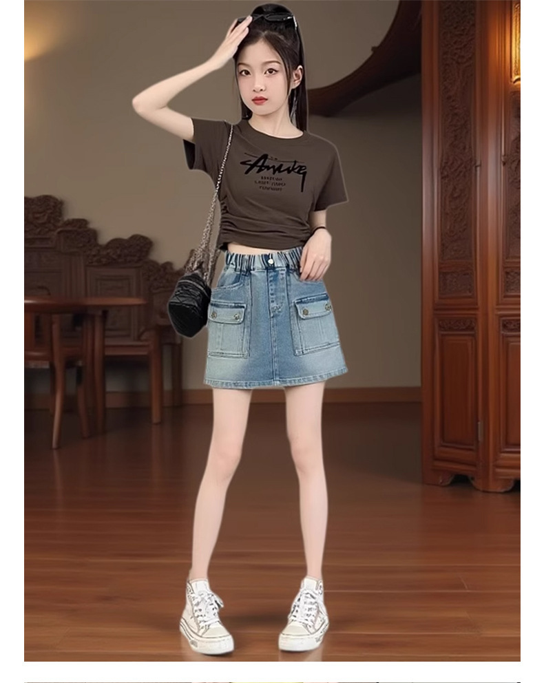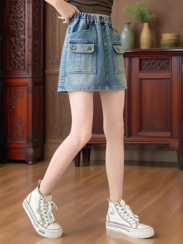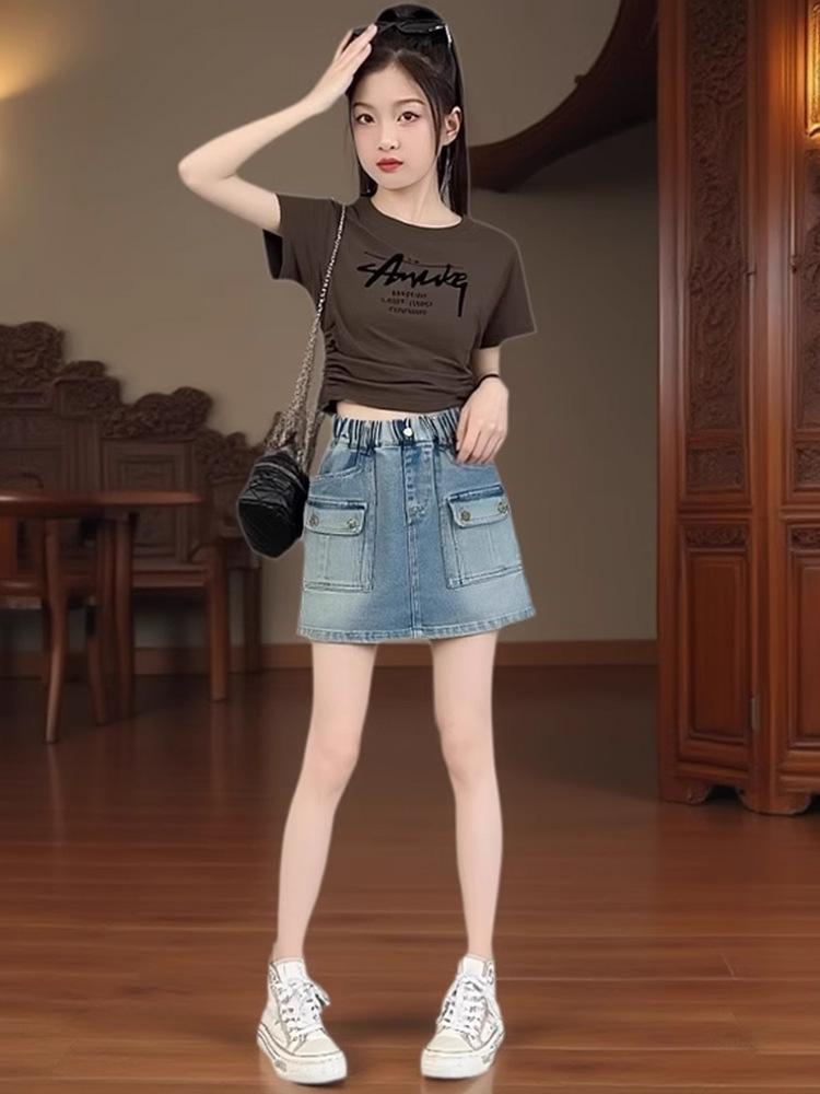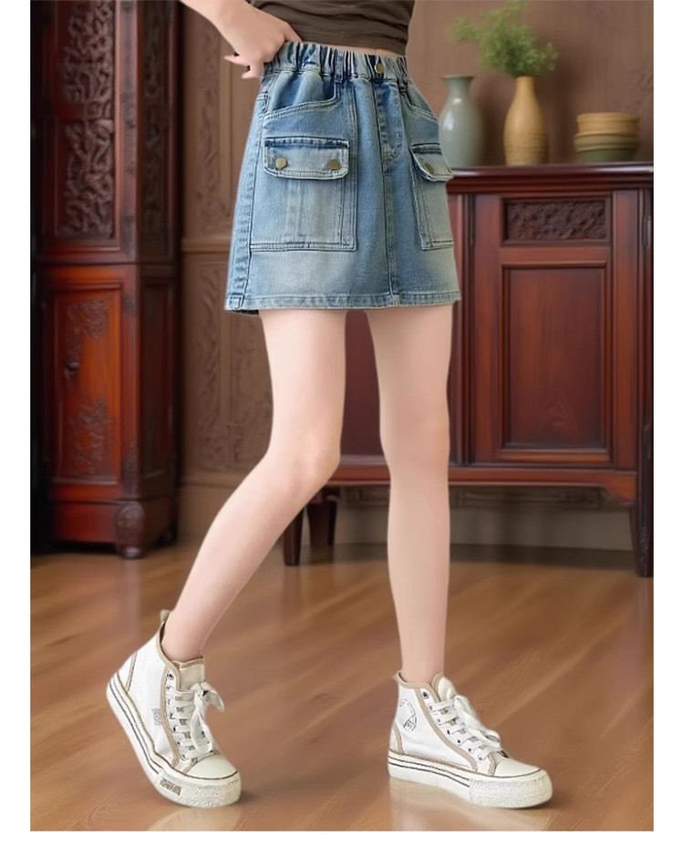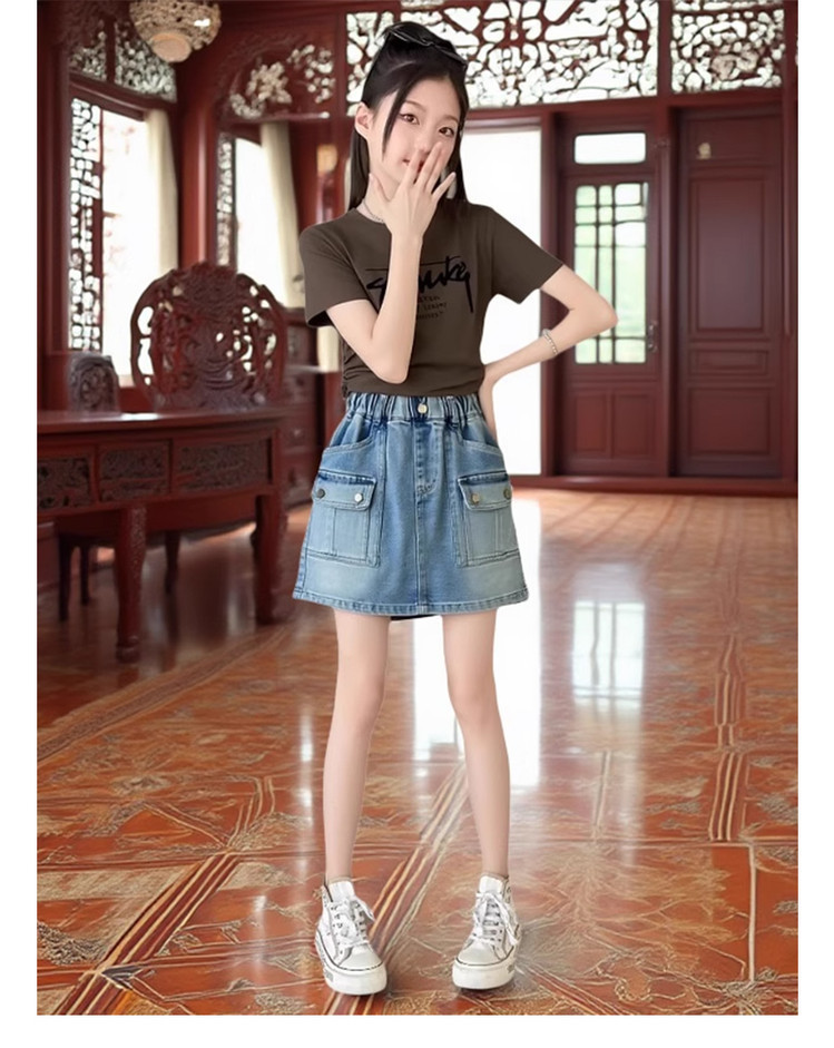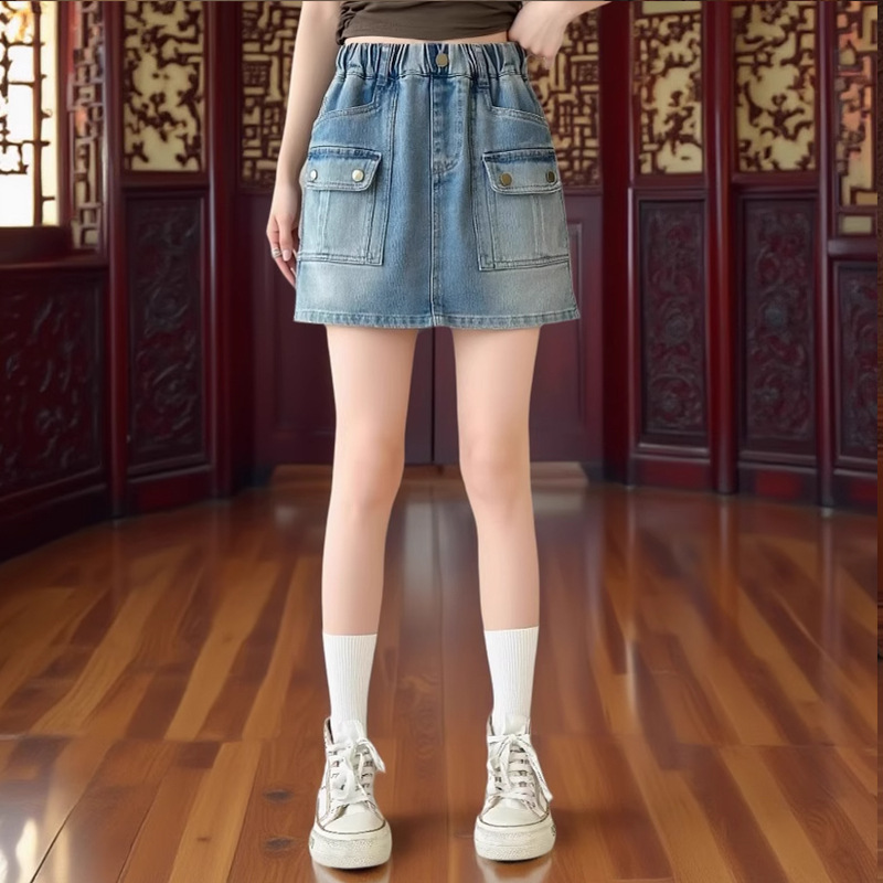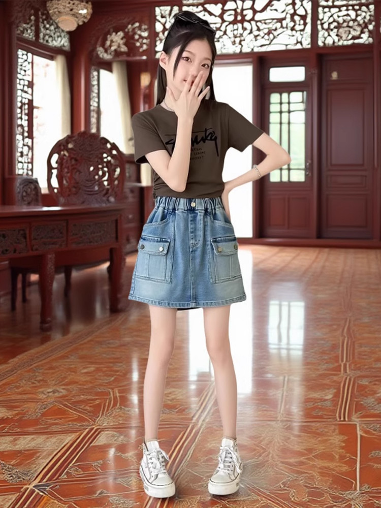 아마존 소녀 데님 스커트 여름 스타일 소녀 스타일 작업복 스커트 얇은 중대형 어린이 유행 멋진 스커트 도매스토어 가기