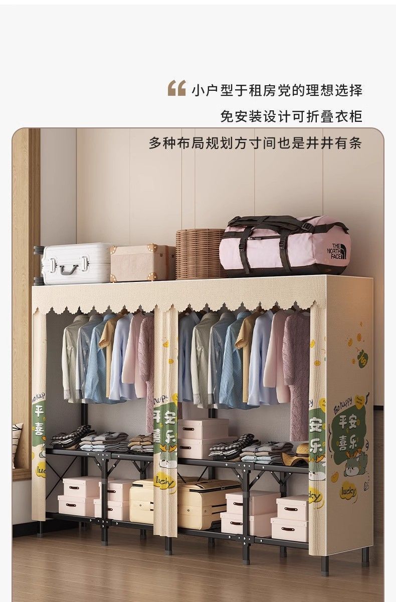 가정용 침실용 접이식 간이 옷장, 설치가 필요 없는 천 옷장, 소형 아파트, 전체 강철 프레임, 견고하고 내구성이 뛰어난 임대 주택스토어 가기