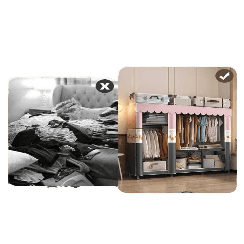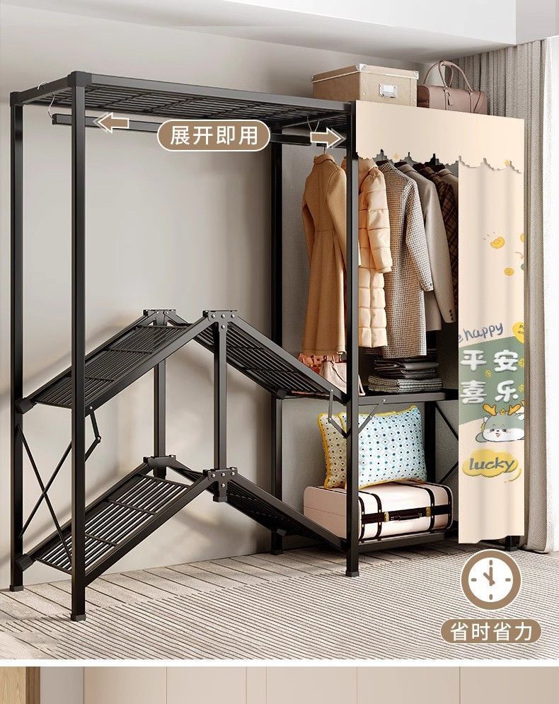 가정용 침실용 접이식 간이 옷장, 설치가 필요 없는 천 옷장, 소형 아파트, 전체 강철 프레임, 견고하고 내구성이 뛰어난 임대 주택