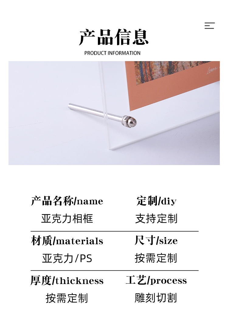 맞춤형 투명 아크릴 액자 ins 북유럽 스타일 장식 카드 벽걸이 침실 엽서 액자 그림 액자 장식품
