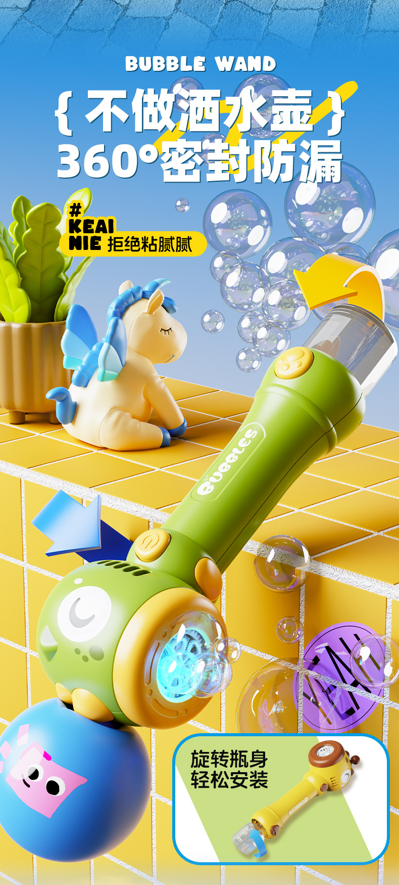 어린이 라이트 버블 스틱 휴대용 완전 자동 누출 방지 버블 팬 버블 머신 야외 국경 간 어린이 장난감스토어 가기