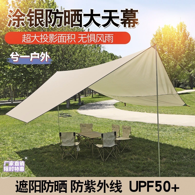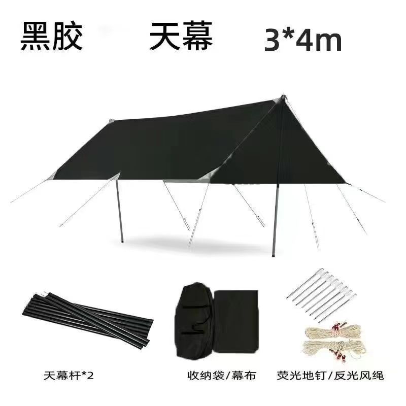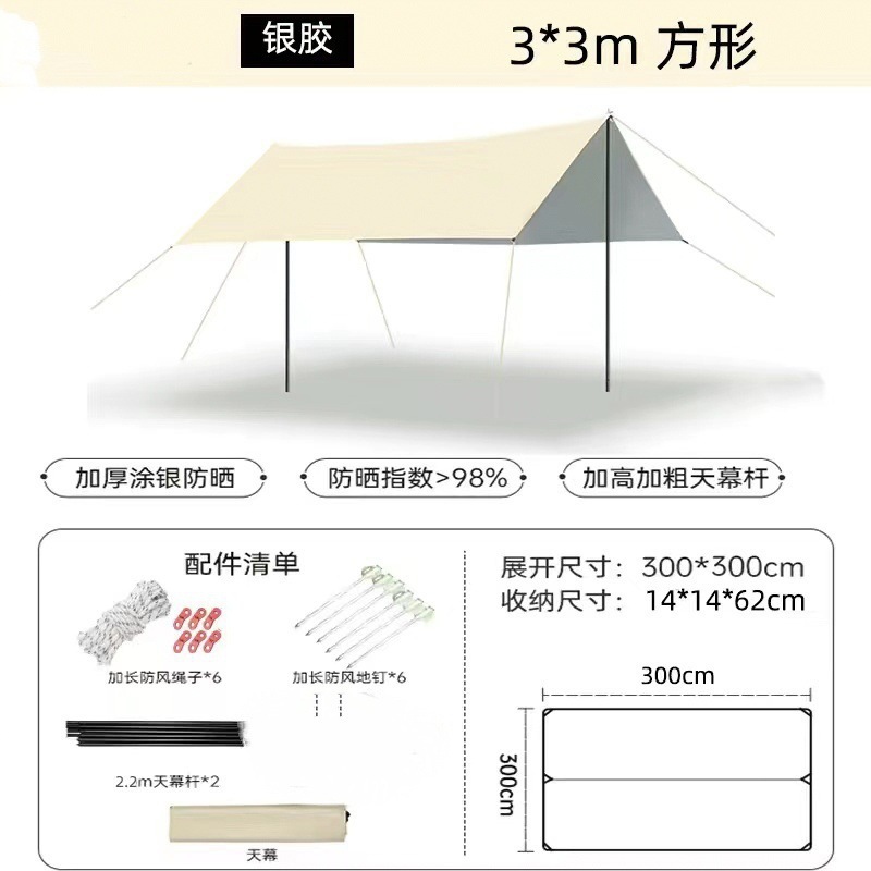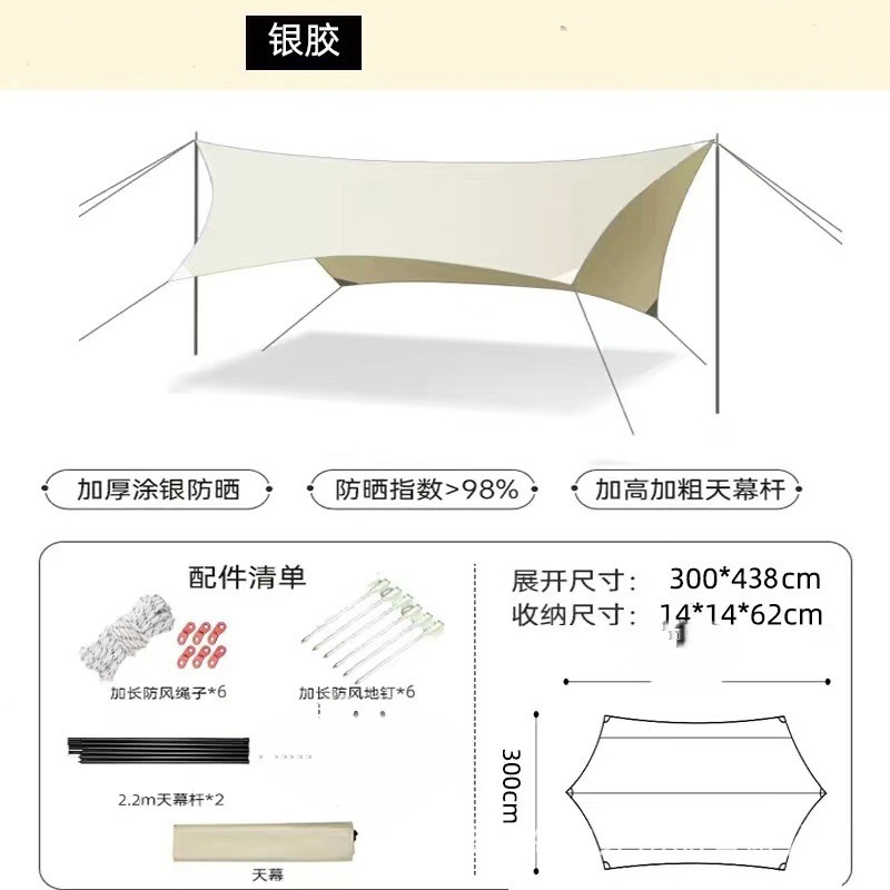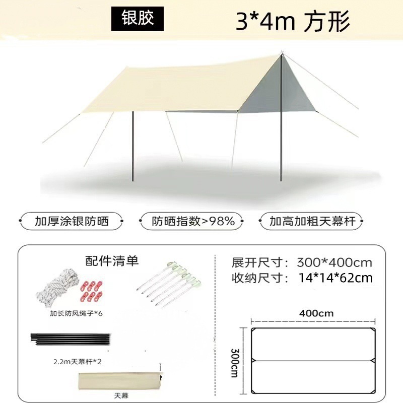 실버 코팅 야외 검정색 방수 및 자외선 차단 천막 캠핑 휴대용 캠핑 피크닉 해변 캐노피 텐트