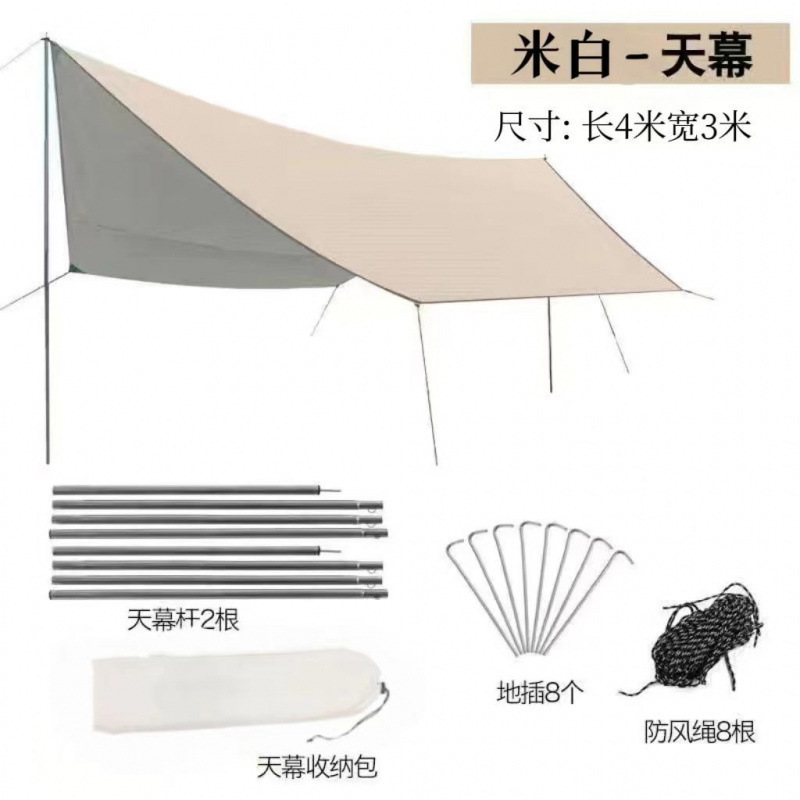 • 사랑의 집 캐노피 베이지 화이트 실버 코팅 3.4m 평방미터 4~8명