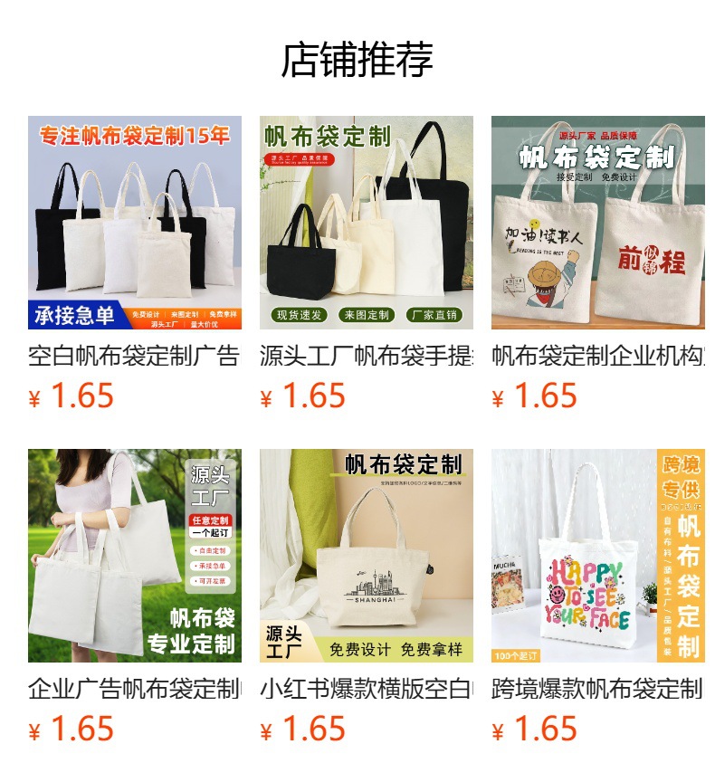 맞춤형 광고 로고가 있는 빈 캔버스 가방, 홍보용 캔버스 백, 해외 배송용 BSCI 인증 핸드백, 맞춤형 캔버스 가방스토어 가기