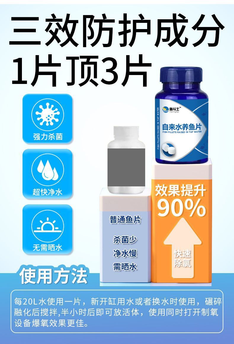 관상어를 위한 수돗물 어류 피쉬 타블렛, 어류 질병 예방을 위한 필수 물 정화 어항 수질 안정화 타블렛, 어류 사육용 특수스토어 가기