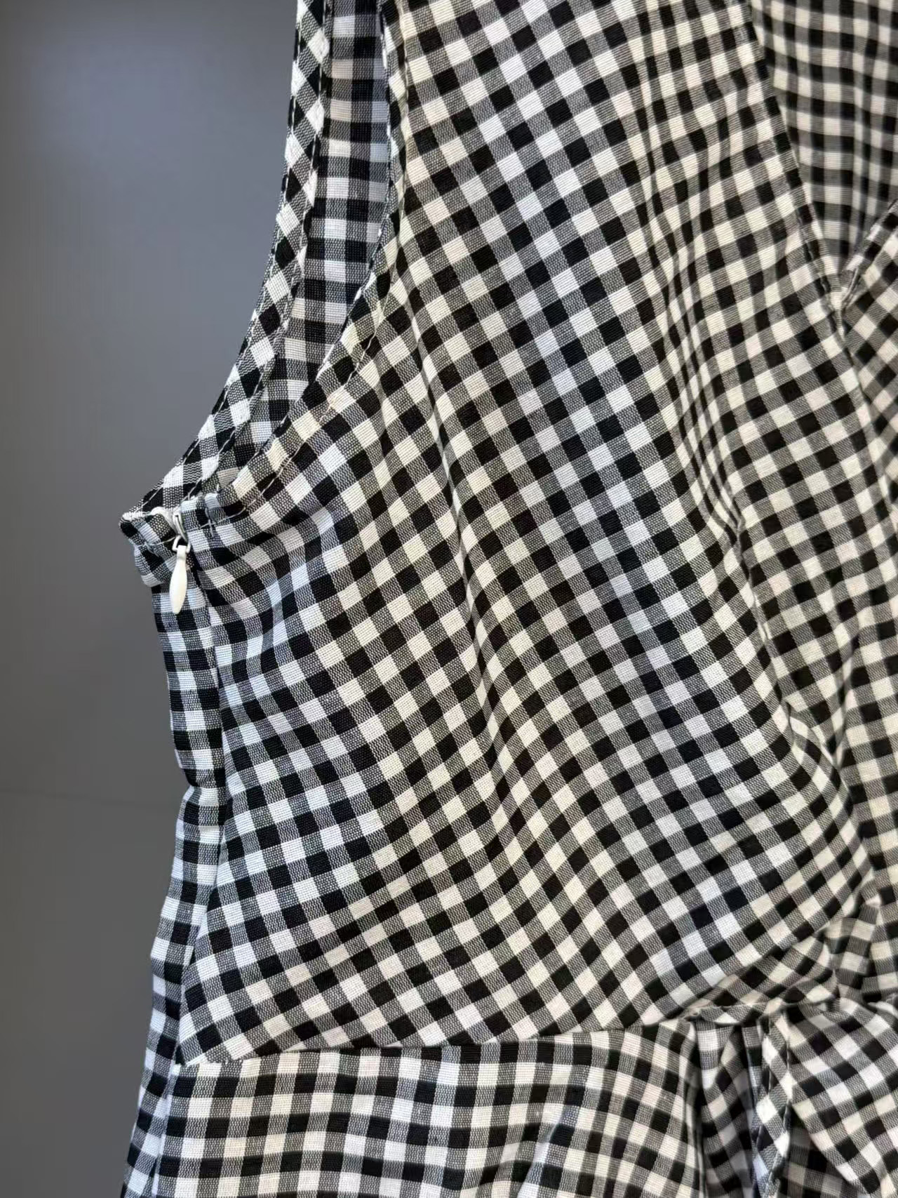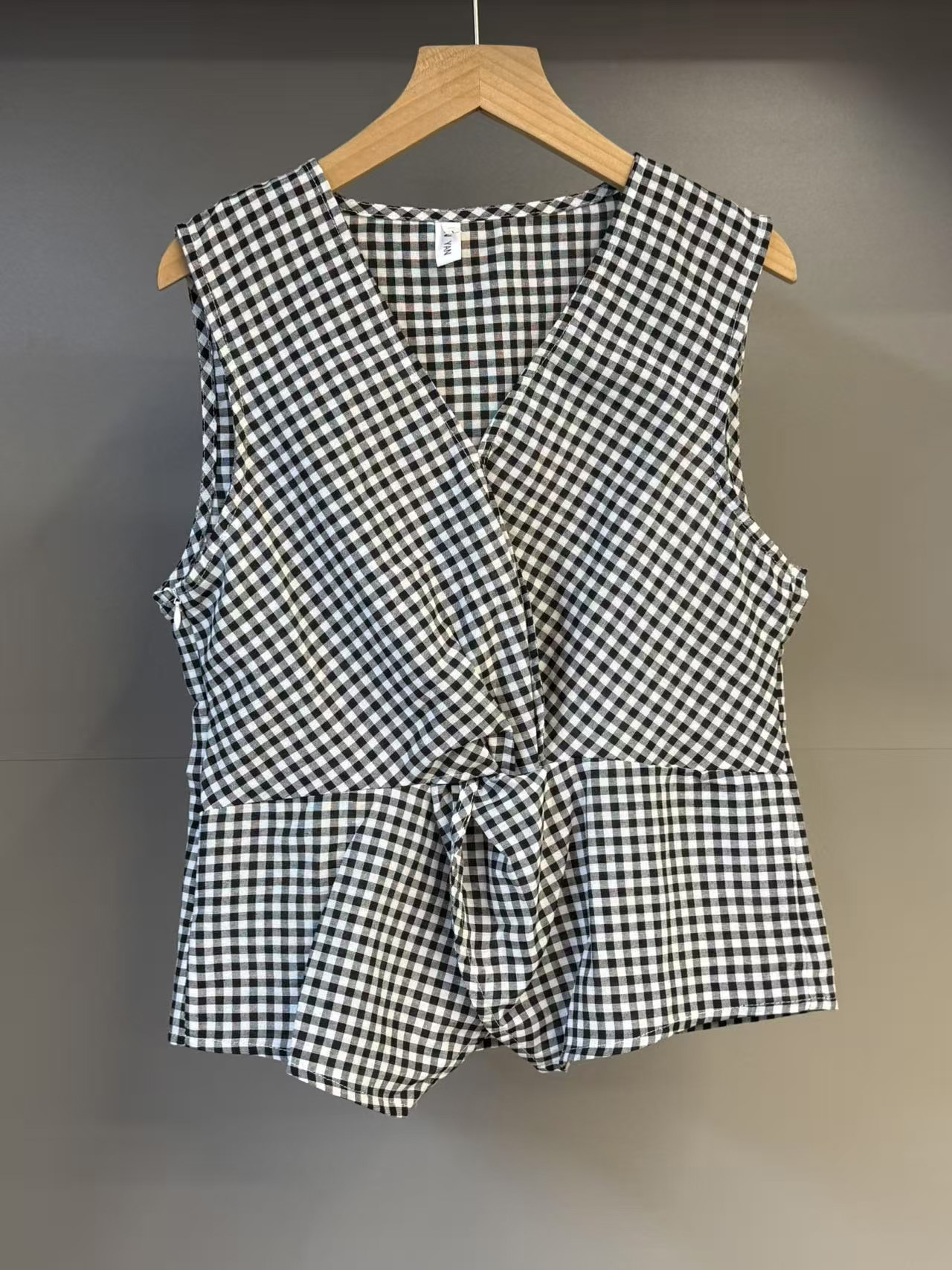 여름 여성을 위한 얇은 올드 머니 스타일 피부 친화적인 흑백 격자 무늬 조끼, 고급스럽고 세련된 트위스트 디자인 조끼스토어 가기