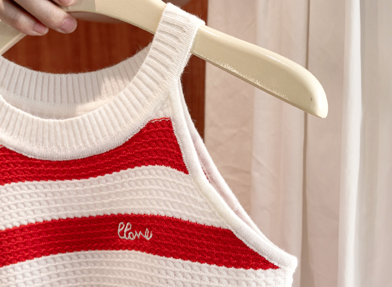 여자 니트 조끼 아기 소녀 새로운 한국 스타일 캐주얼 스트라이프 여름 얇은 민소매 홀터넥 레터 탑스토어 가기