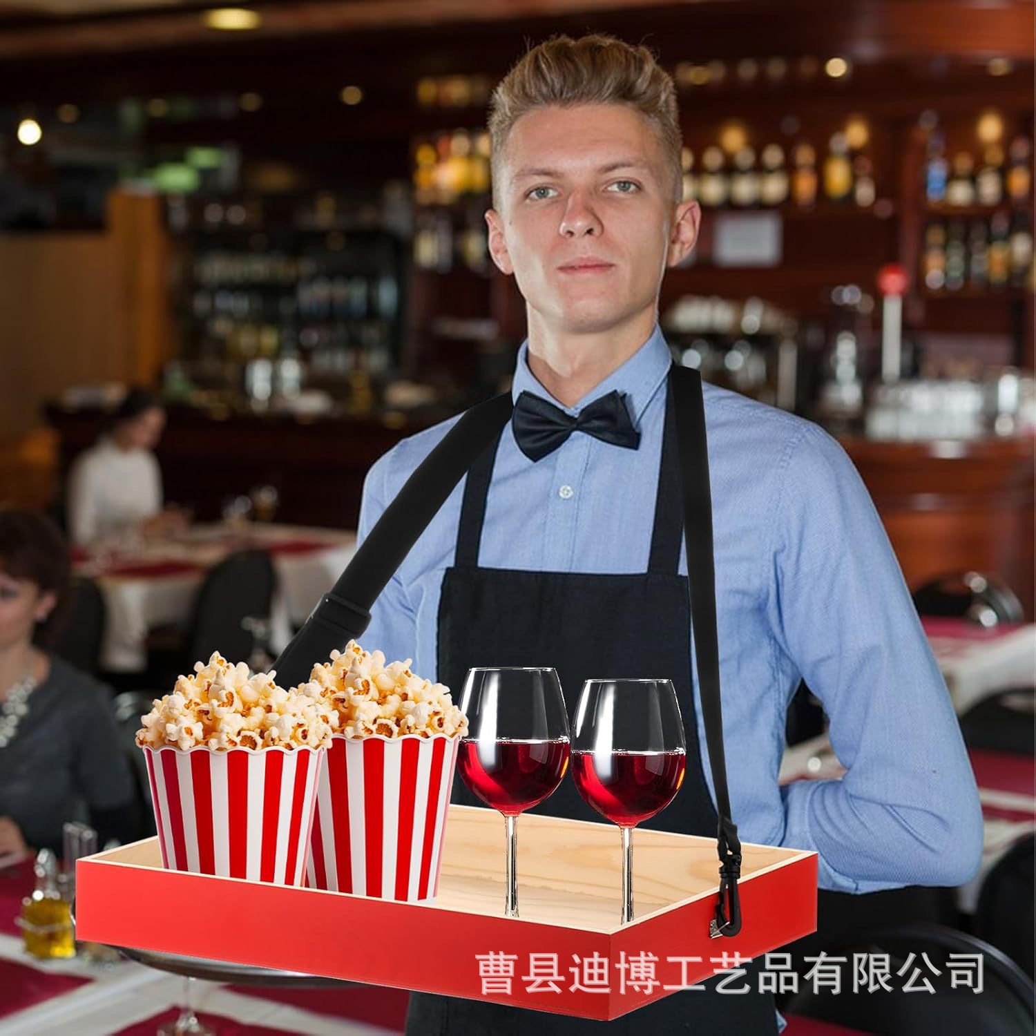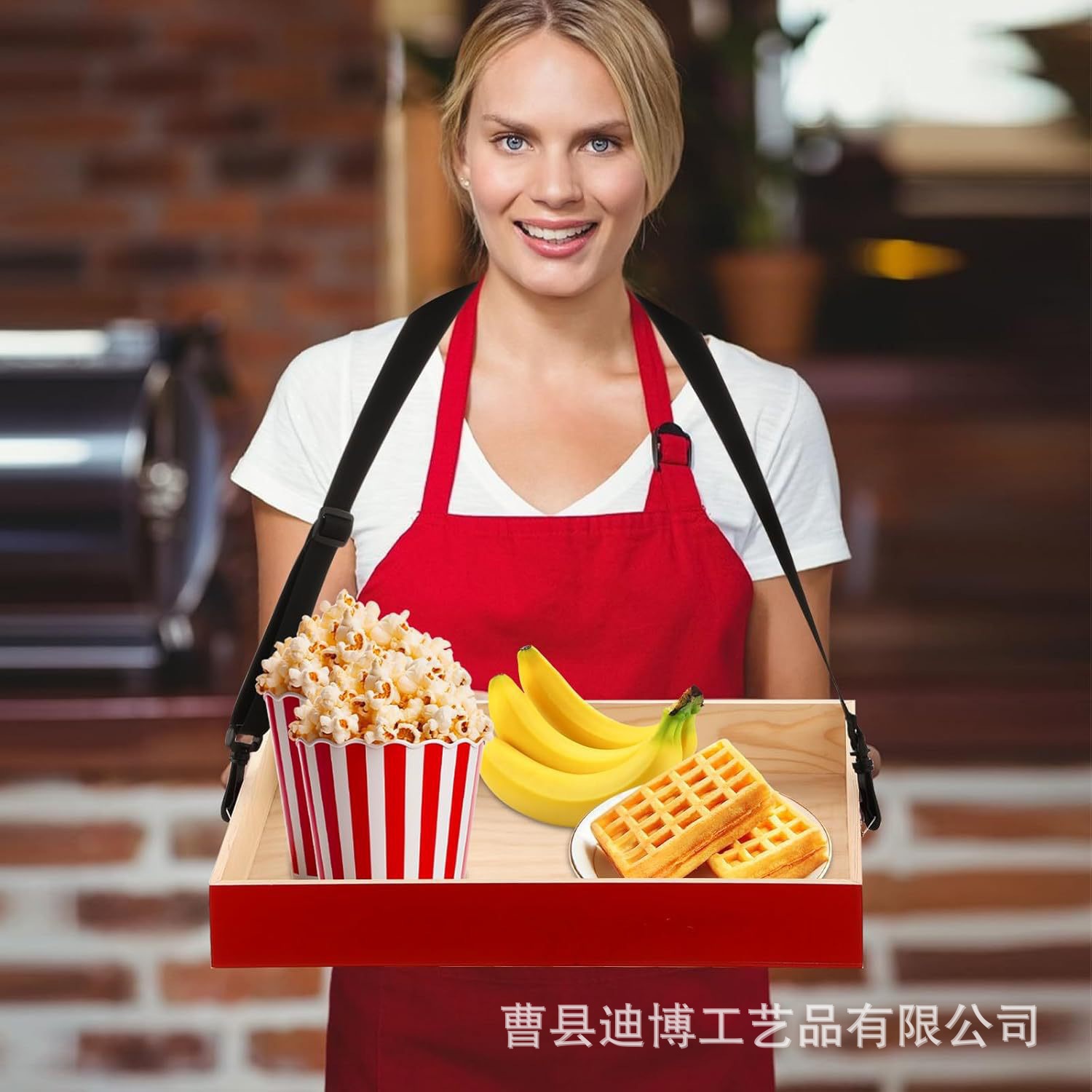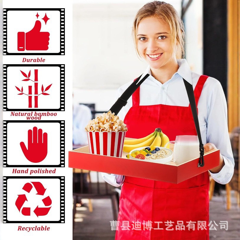 국경 간 목재 사각 팝콘 서빙 트레이 가정용 단단한 나무 스트랩과 교수형 목 스낵 서빙 나무 트레이스토어 가기