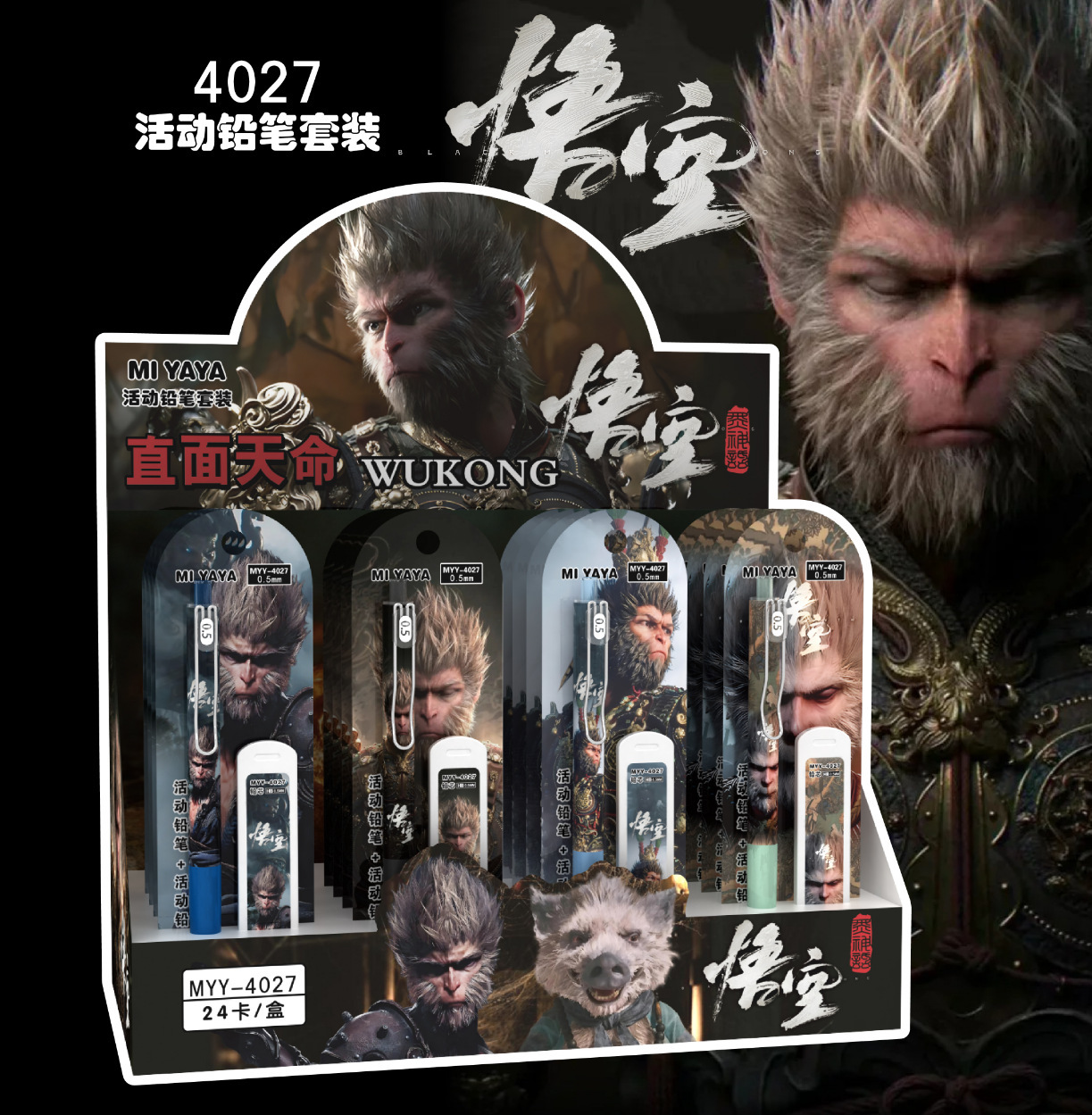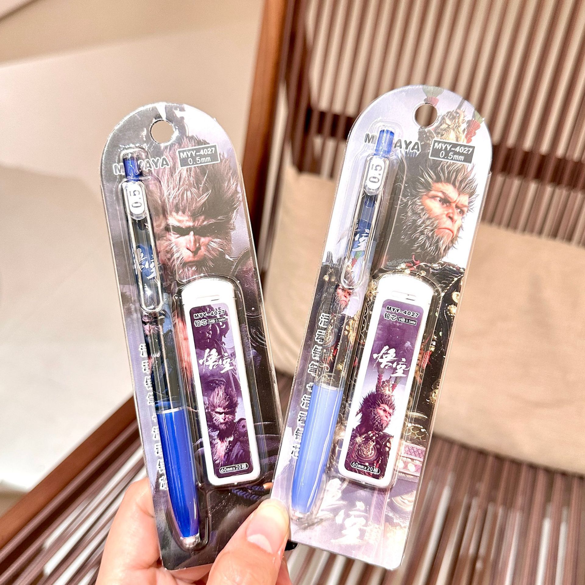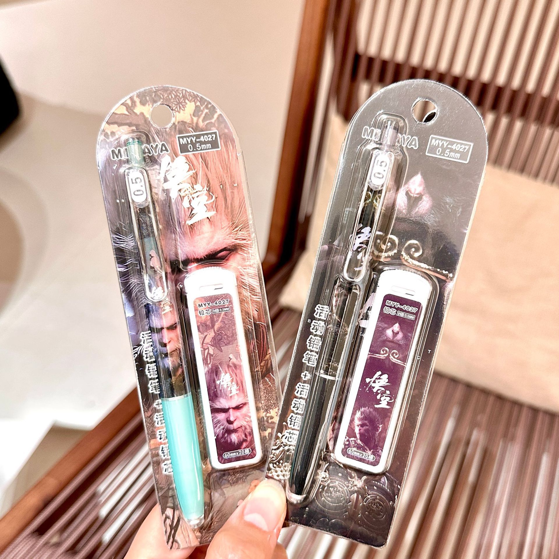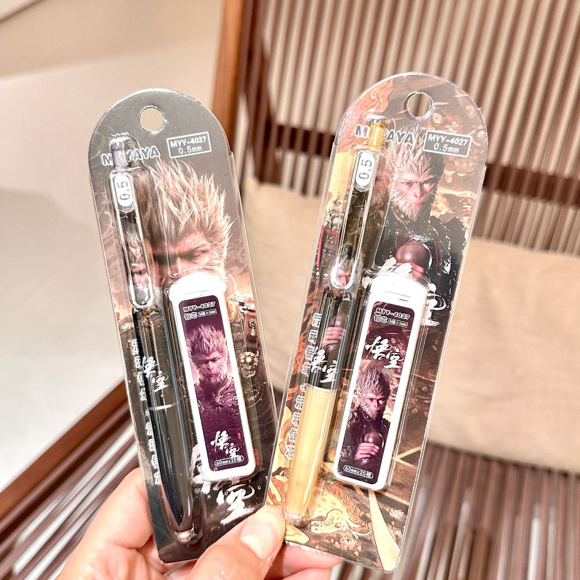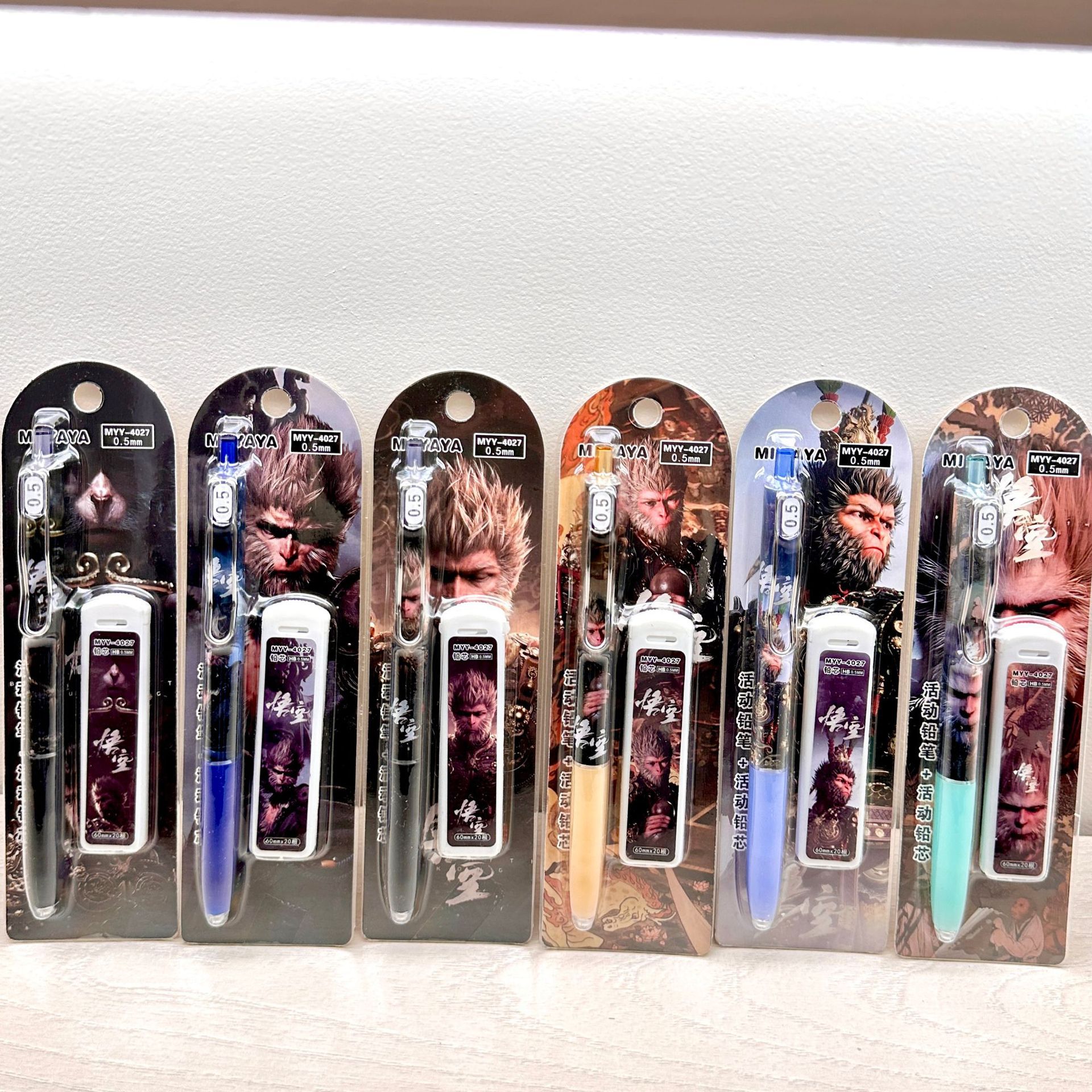 MYY-4027 Wukong 샤프 펜슬 세트 0.5 운명 만화 자동 연필 학생은 연속적으로 연필을 사용하여 쓰기 쉽습니다.