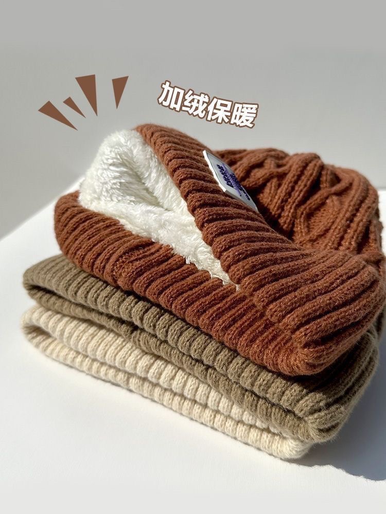 겨울용 여성용 플러시 니트 모자, 따뜻하고 귀를 보호하는 메일라드 브라운, 얼굴을 작아 보이게 하는 트렌디한 니트 모자, 남성용 방한 모자