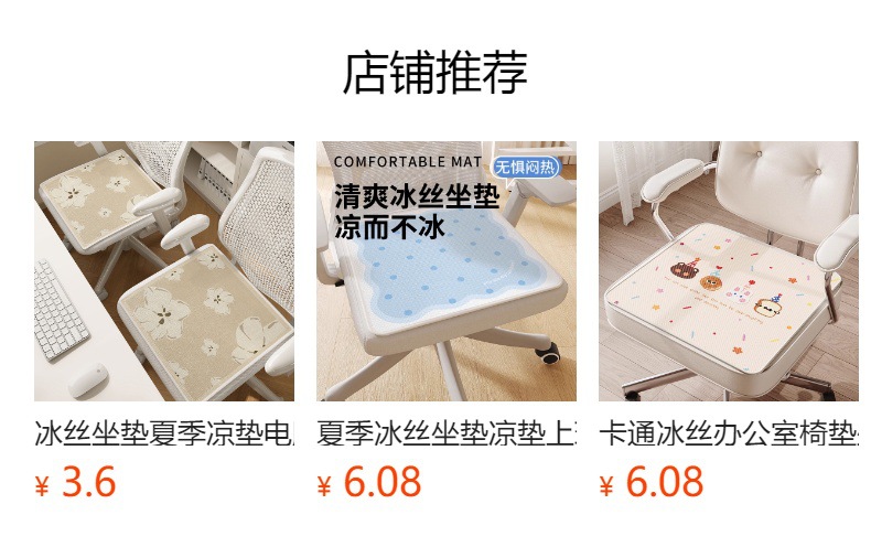 얼음 실크 쿠션 의자 쿠션 여름 매트 사무실 앉아있는 통기성 미끄럼 방지 쿠션 학생 부드러운 엉덩이 쿠션 의자 쿠션 도매스토어 가기