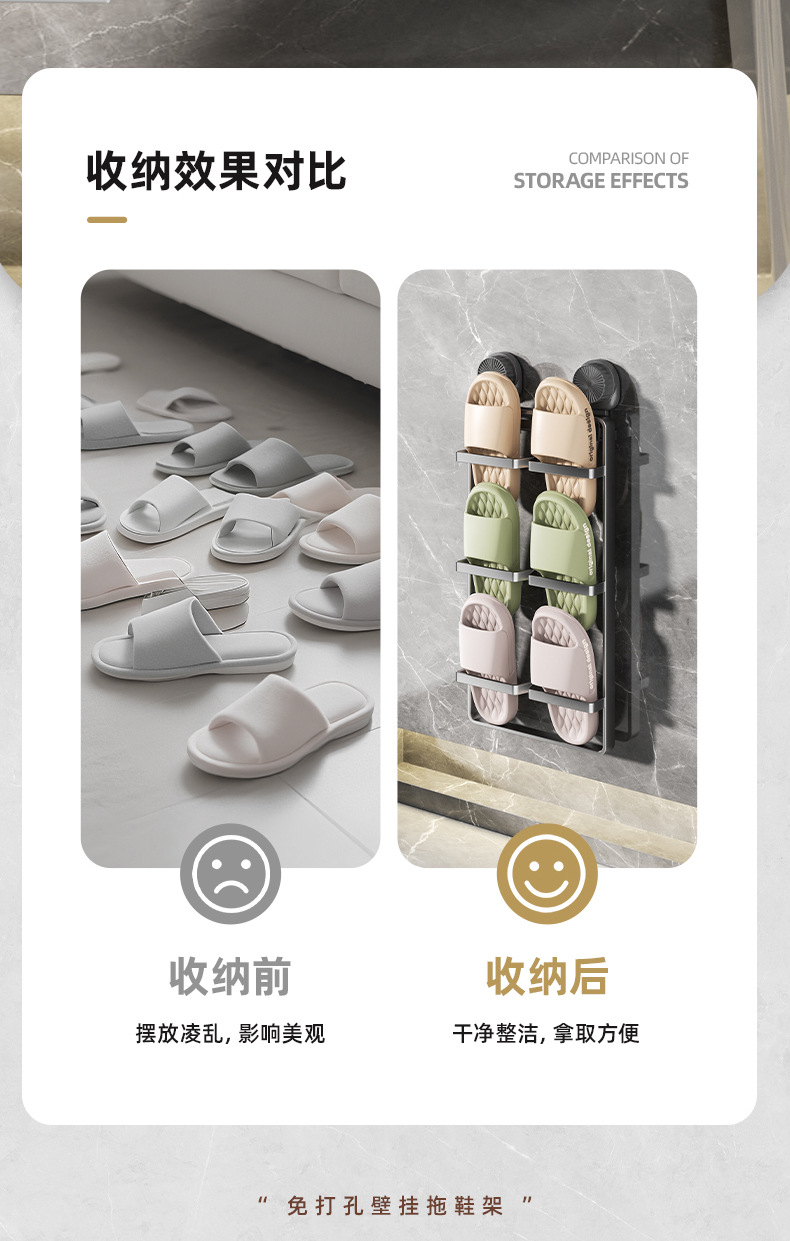 욕실 슬리퍼 랙, 구멍이 없는 욕실 수납 랙, 신발 수납, 간단한 벽걸이형 문 뒤쪽 화장실 배수 걸이스토어 가기