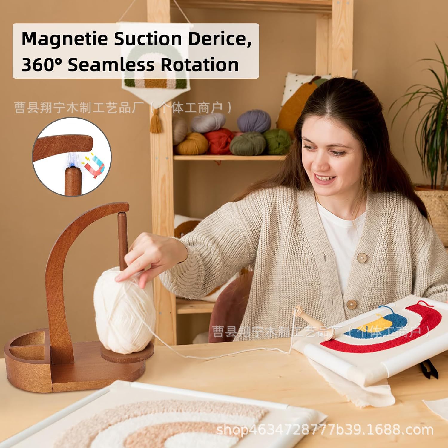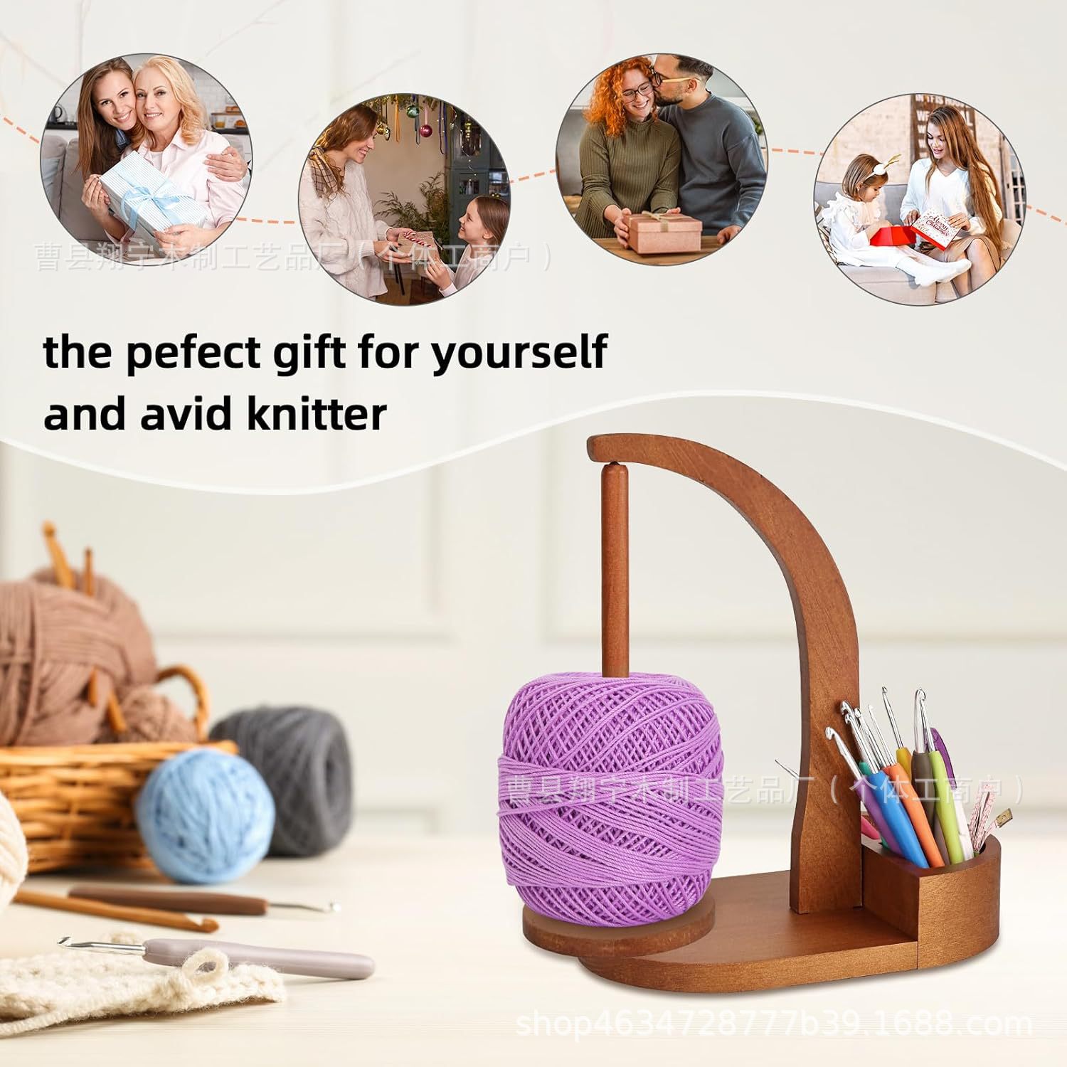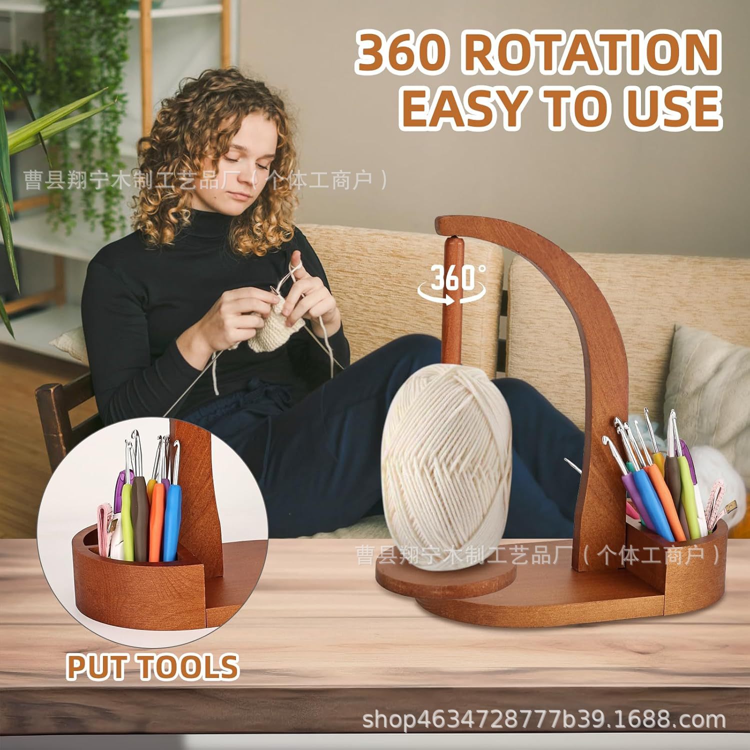국경 간 목재 회전 스풀 랙 가정용 원사 보관 랙 손으로 짠 양모 랙 크로 셰 뜨개질 보관 랙