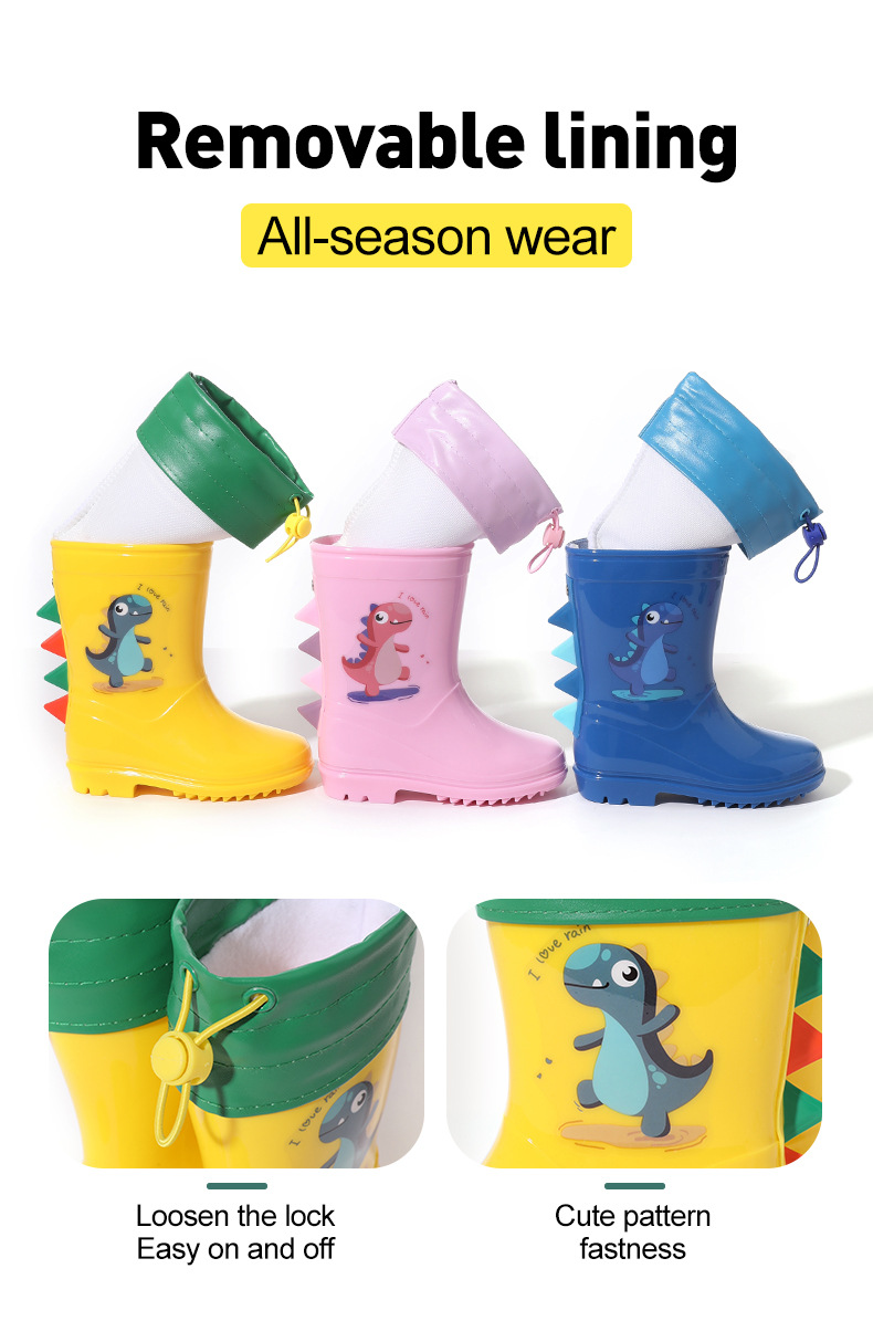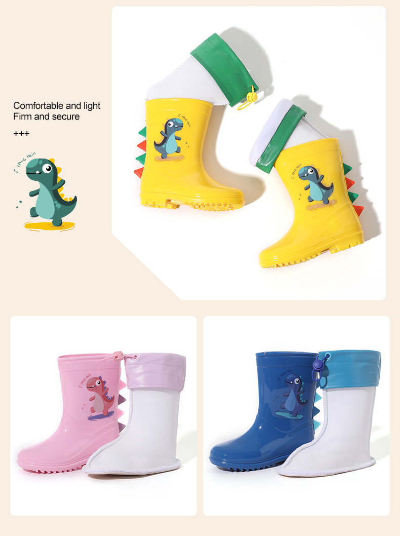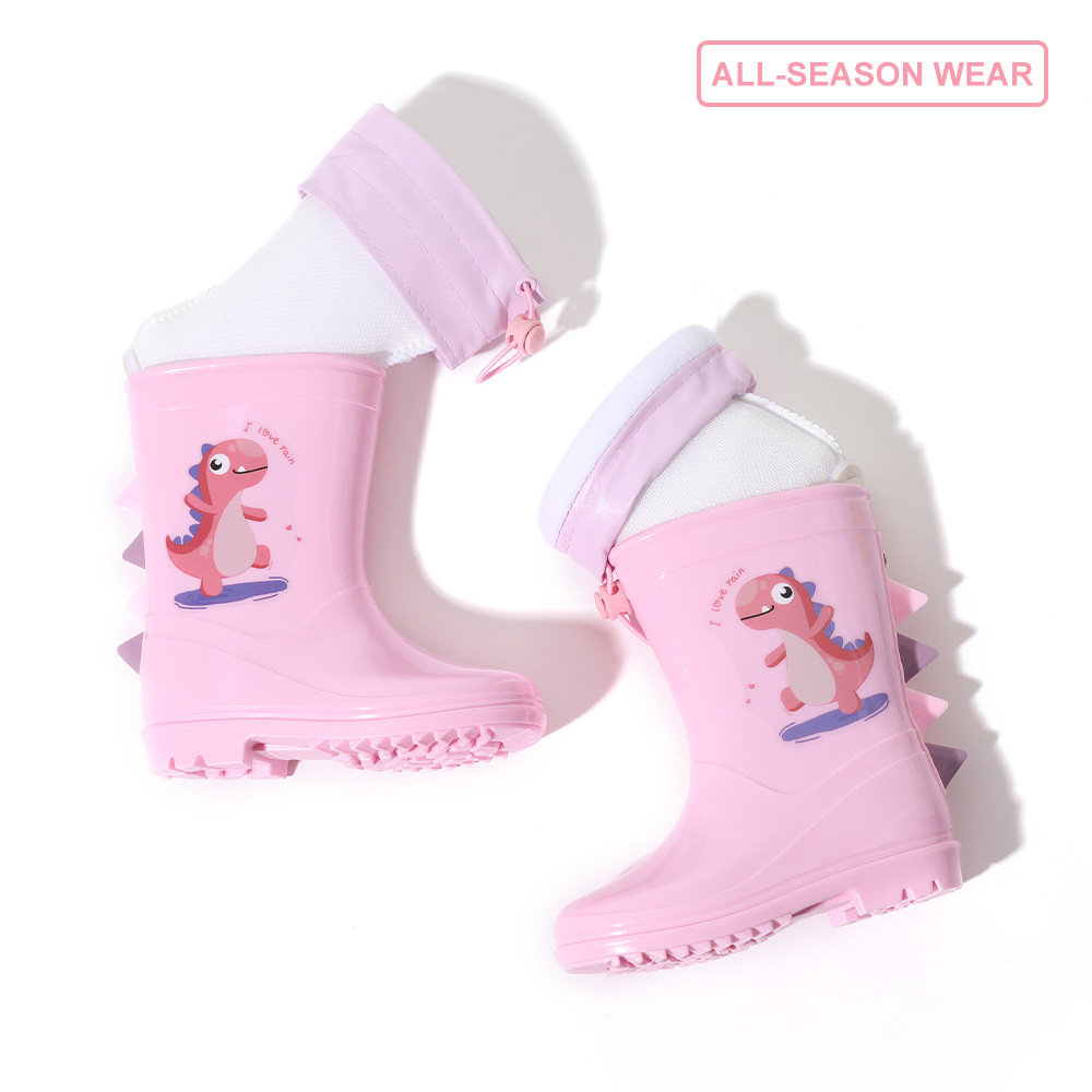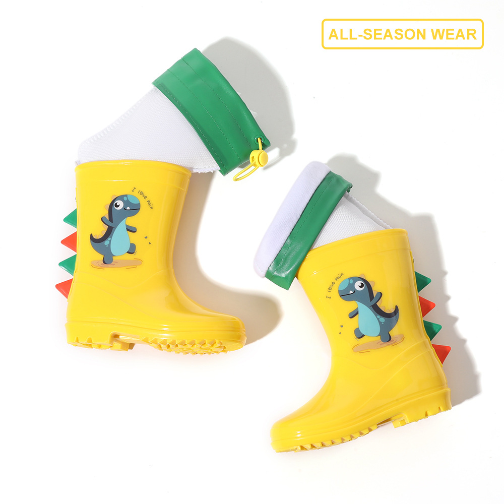 Bangdada 어린이 재고 있음 도매 2-8 만화 공룡 귀여운 소년과 소녀 미끄럼 방지 높은 탈착식 라이너 장화