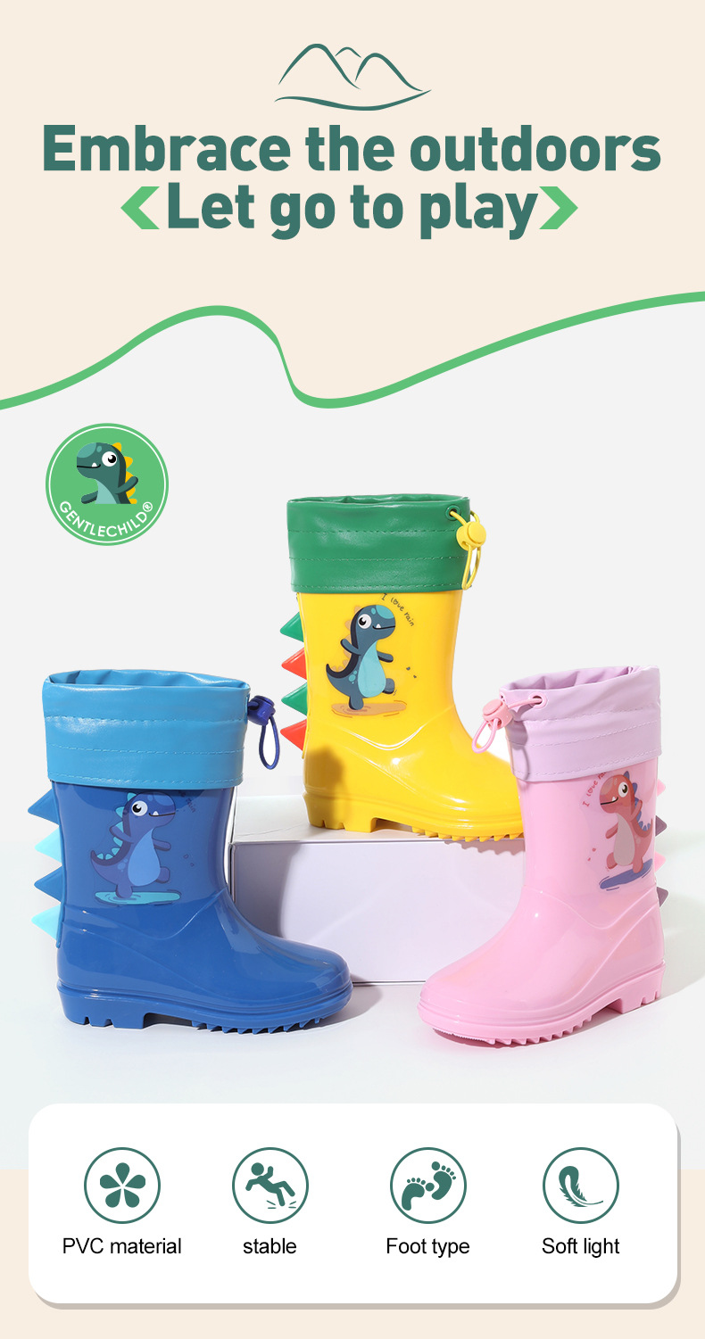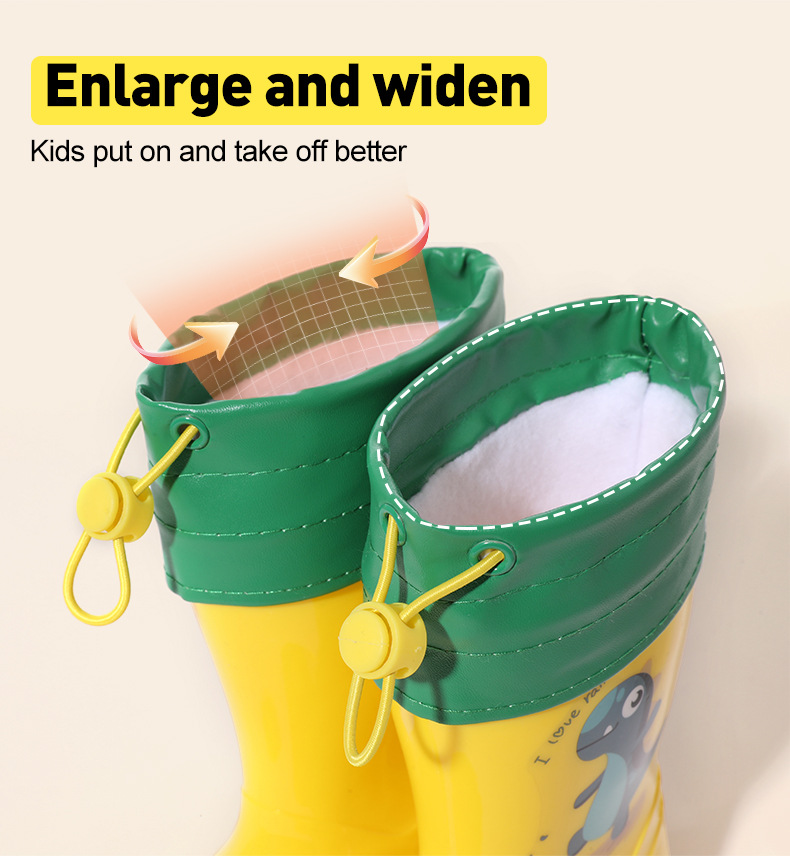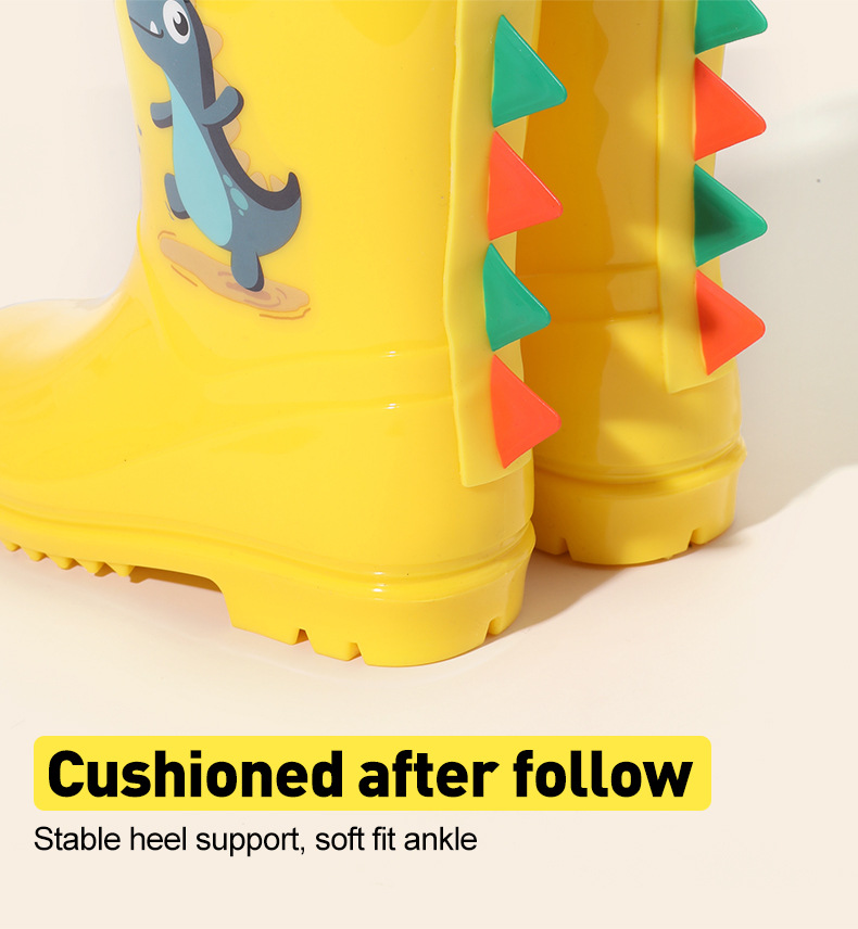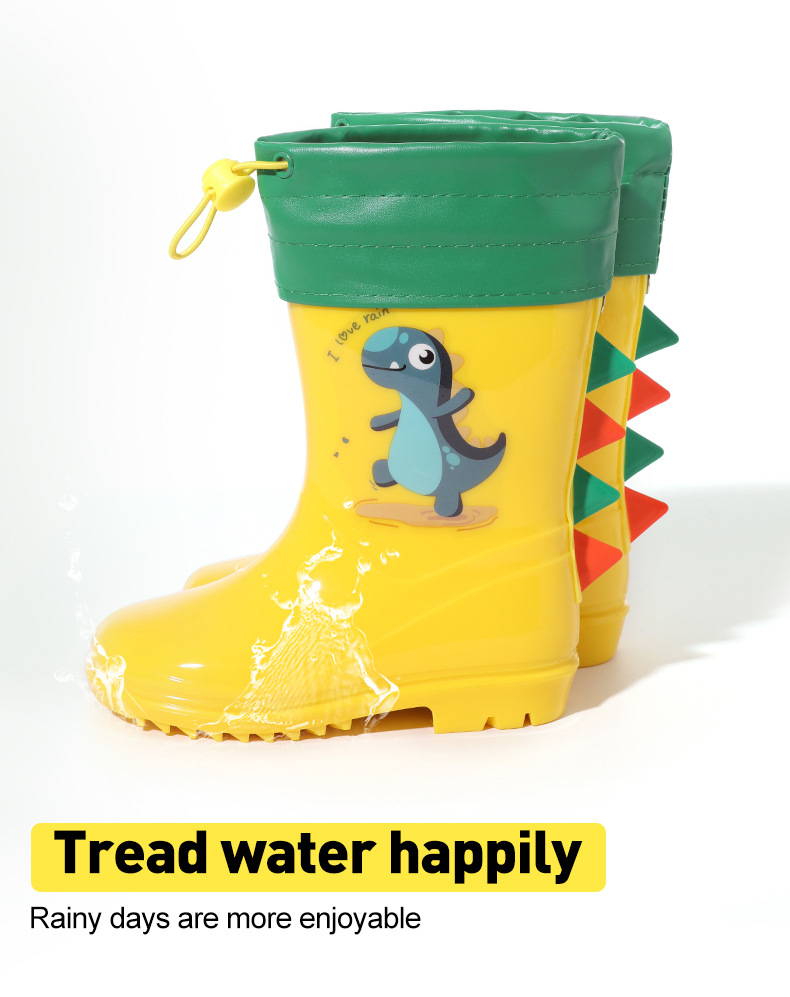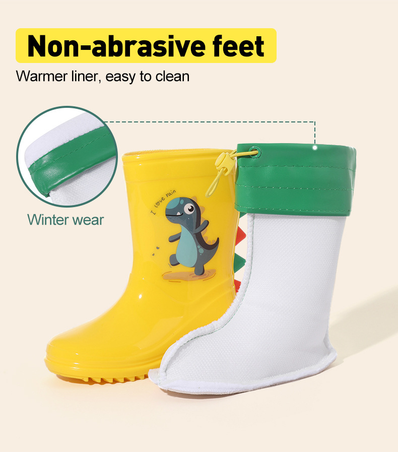 Bangdada 어린이 재고 있음 도매 2-8 만화 공룡 귀여운 소년과 소녀 미끄럼 방지 높은 탈착식 라이너 장화