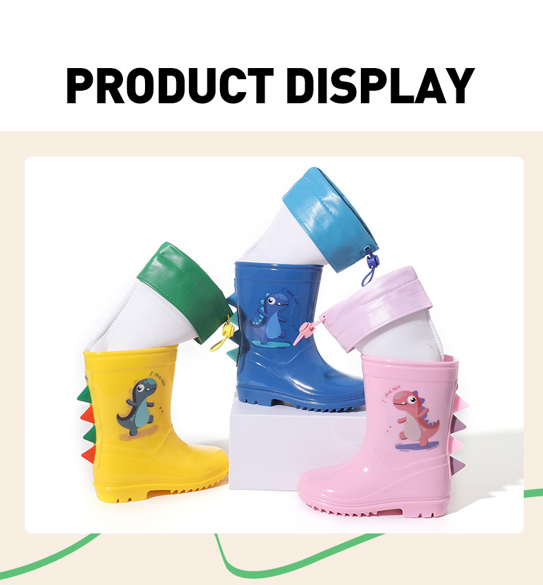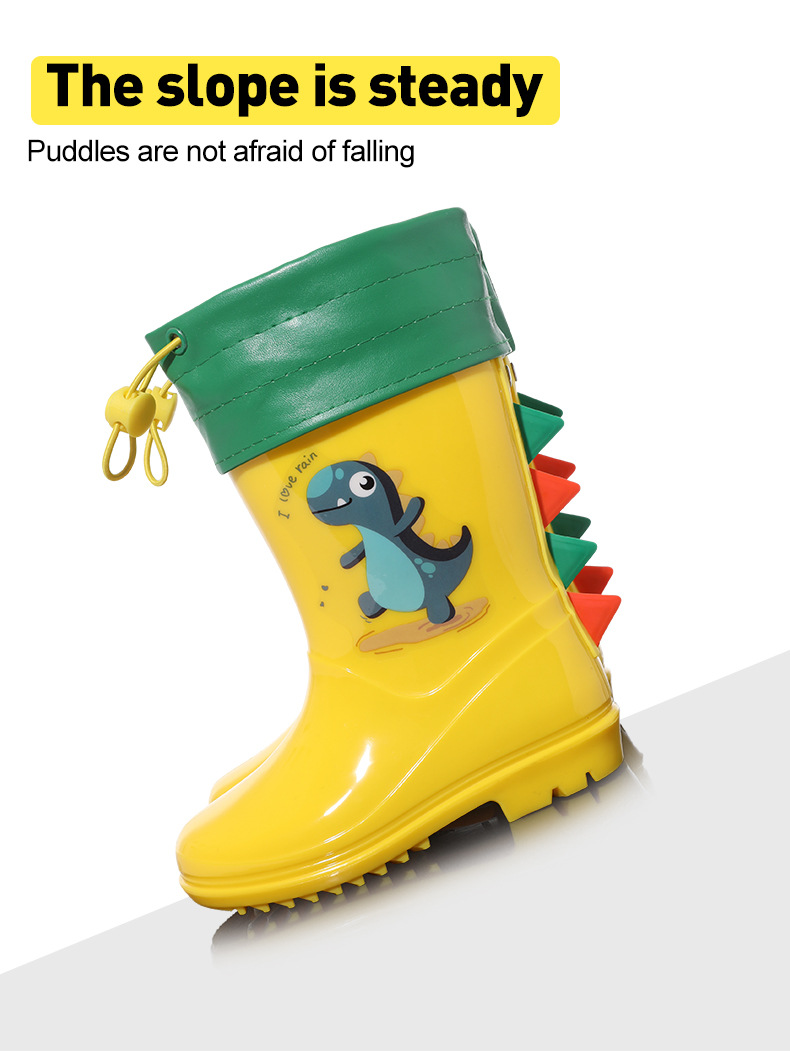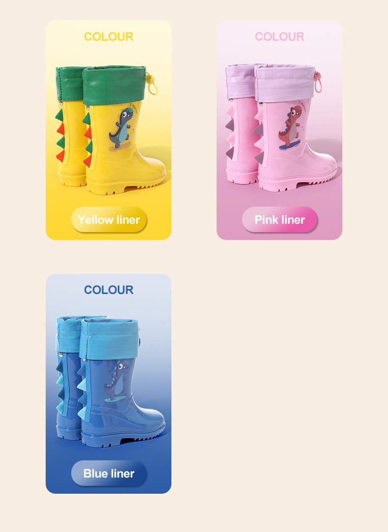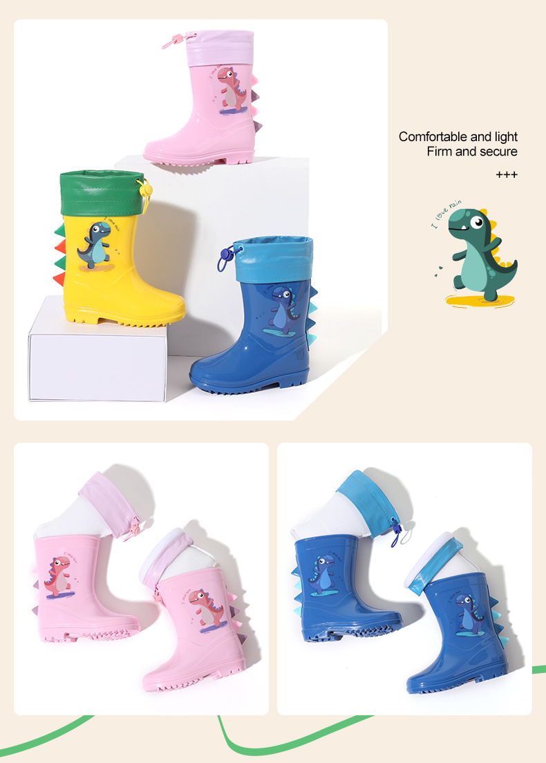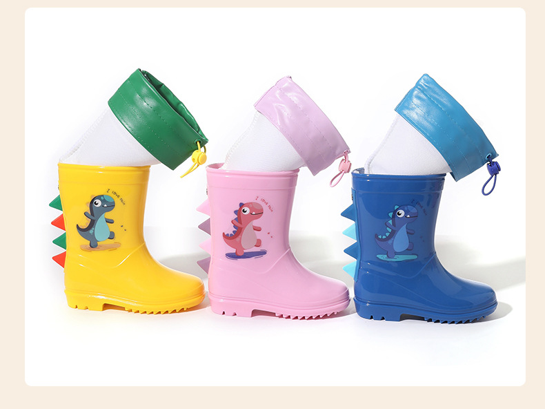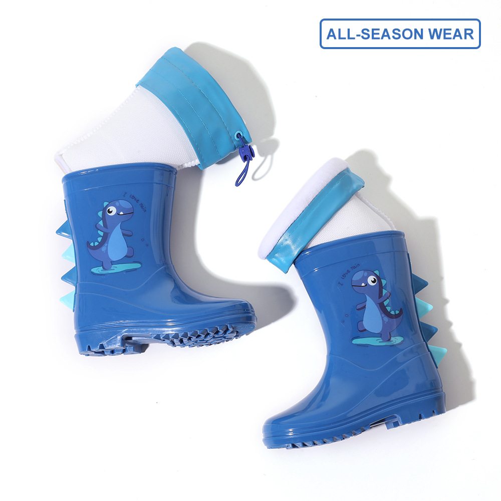 Bangdada 어린이 재고 있음 도매 2-8 만화 공룡 귀여운 소년과 소녀 미끄럼 방지 높은 탈착식 라이너 장화스토어 가기