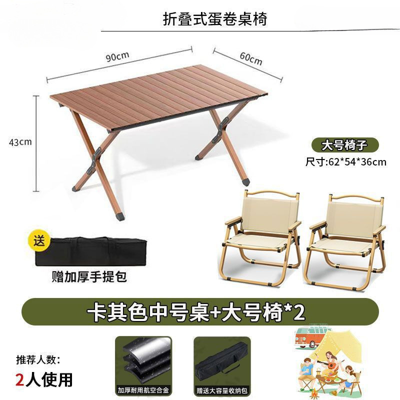 • 60cm 에그롤 테이블 + 대형 의자 2개 [기본 카키색상/