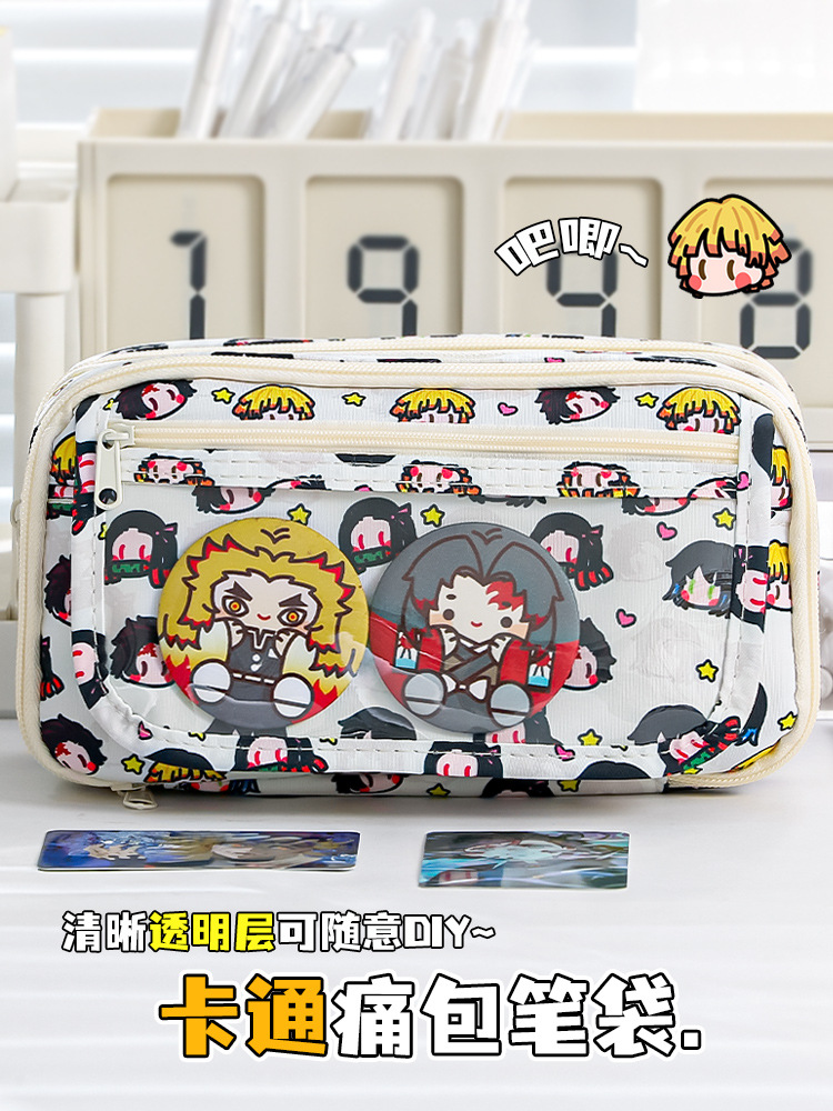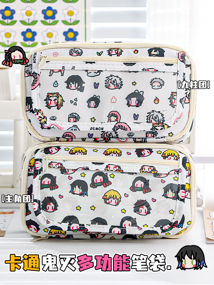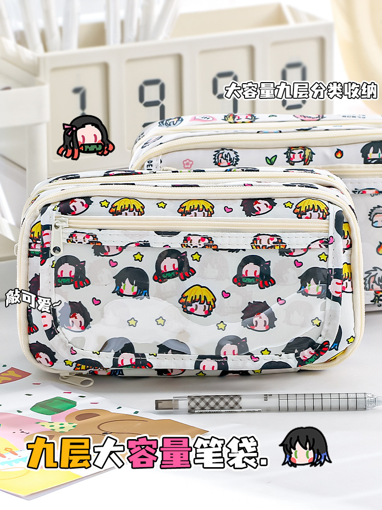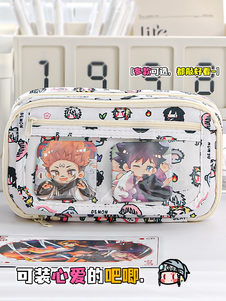 귀멸의 칼날 문구함 새해 신상 투명 플립형 필통 초중등학생용 문구함