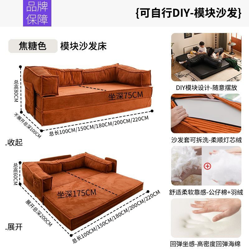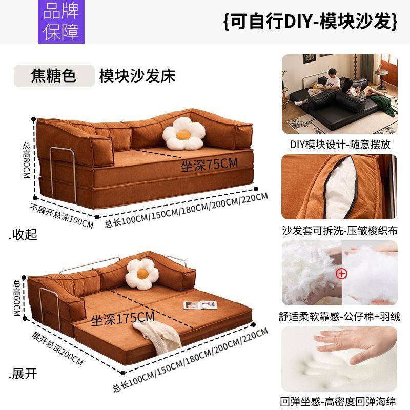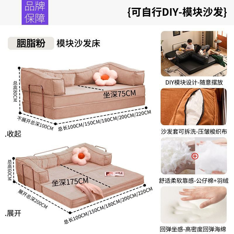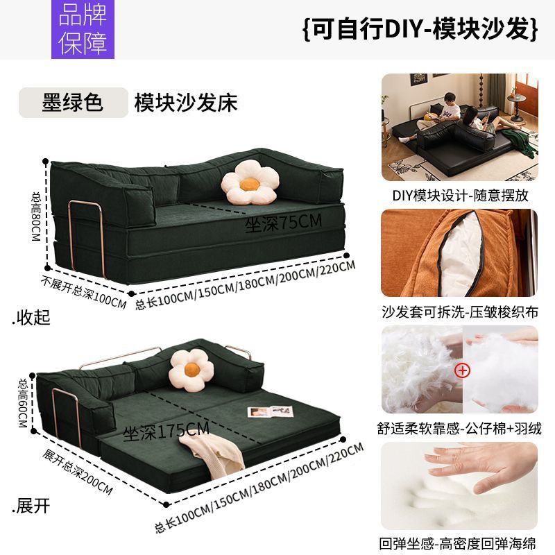 접이식 소파 베드, 소형 거실, 2인용 또는 3인용 패브릭 중세 스타일 모듈 소파스토어 가기