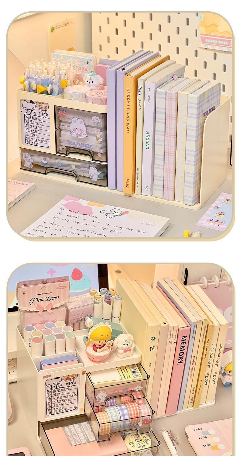 초등학생을 위한 다기능 데스크탑 북엔드 수납함, 자기수양 체크인기, 어린이 책상 서랍형 문구류 수납함스토어 가기