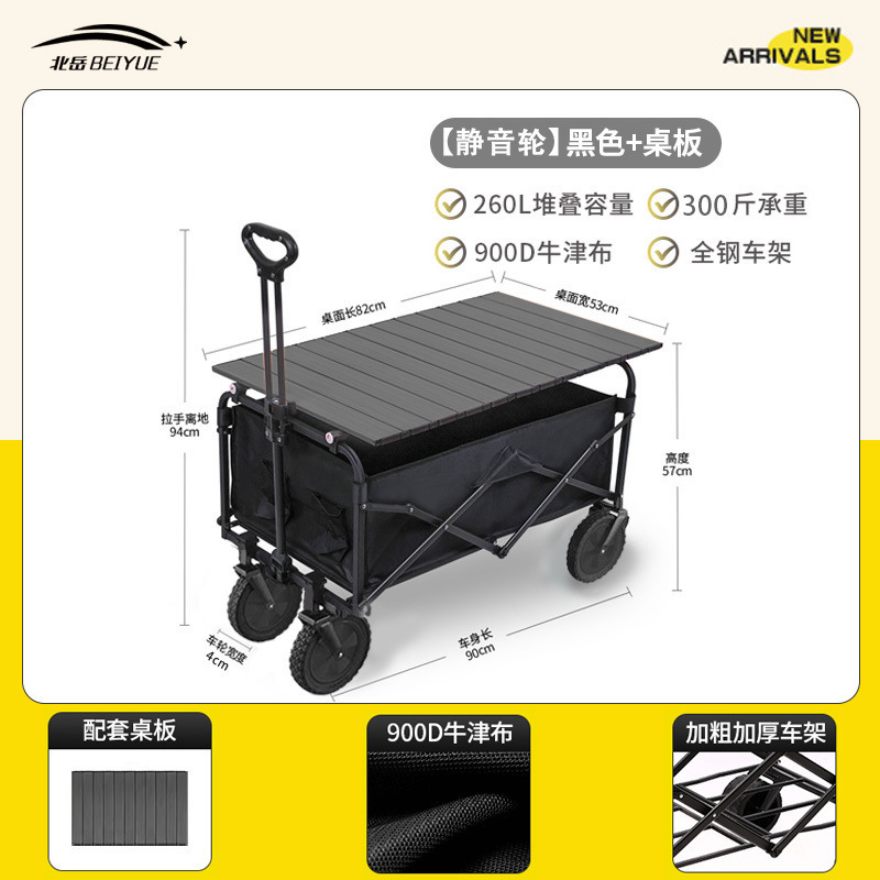 • 블랙 [이중 두꺼운 옥스포드 천] - 대형 / 8inch 고무 바퀴 + 스톨 확장 테이블
